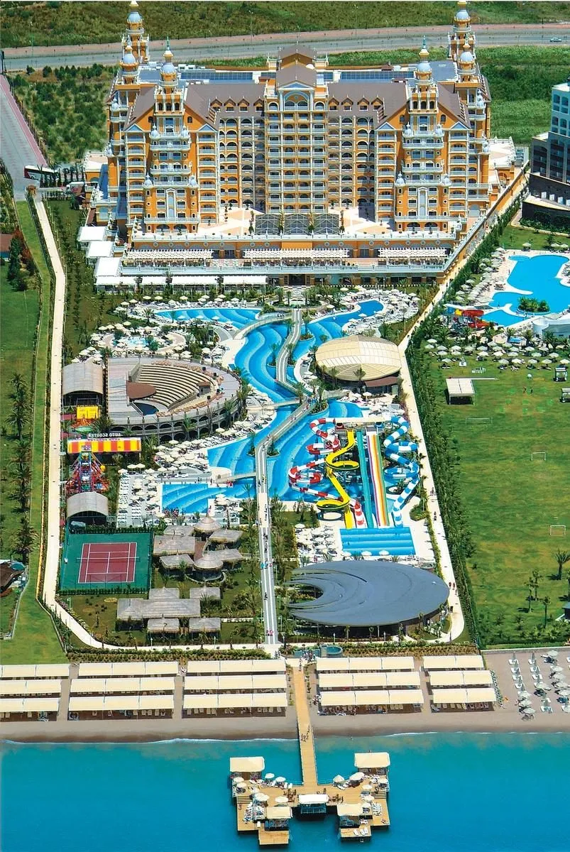 Descriere generală Hotelul Royal Holiday Palace este situat direct pe o plajă privată cu nisip. Pe plajă sunt disponibile gratuit șezlonguri și umbrele de soare. Centrul turistic al stațiunii se află la aprox. 5 km. Orașul Antalya este la aprox. 16 km. Diverse magazine se află la aprox. 13 km de hotel. Cele mai apropiate baruri și restaurante sunt la cca. 5 km distanță. O discotecă aflată la aprox. 5 km vă invită la dans. Locul de cazare are la dispoziție mașini de închiriat. De asemenea, aveți în apropiere o stație de taxi (cca. 50 m) cea ce vă garantează mobilitatea în timpul vacanțelor. Aeroportul (AYT) se află la aprox. 17 km. Un alt aeroport (GZP) este la cca. 0 m. Facilități Încântătorul hotel dispune de 10 etaje și peste 604 camere. Hotelul are recepție deschisă 24h (check-in de la 14:00, check out până la 12:00), lobby cu bar, un total de 6 lifturi, aer condiționat, magazin, discotecă, parcare (gratuită) și sistem securizat de intrare. Pentru a satisface apetitul aveți la dispoziție în hotel 3 restaurante cu aer condiționat și un snackbar. Accesul la internet WiFi este disponibil gratuit pentru oaspeții hotelului. În plus, hotelul oferă o zonă de conferințe. Serviciul de menaj este gratuit. Room service, spălătorie, călcat și serviciul medical (între orele 09:00 - 00:00) sunt disponibile la un cost suplimentar. Piscină În grădinile acestui hotelul cu parc acvatic și tobogan de apă există o piscină precum și o piscină pentru copii. La piscină sunt disponibile gratuit șezlonguri și umbrele de soare. La barul piscinei va puteți bucura de o băutura răcoritoare. Catering Mic dejun (între orele 07:00 - 10:00) bufet suedez. All Inclusive Plus: micul dejun, prânzul și cina. Micul dejun, prânzul și cina pot fi servite numai în anumite restaurante. În plus Mic dejun târziu, aperitive, apă, băuturi răcoritoare, bere, vin, băuturi alcoolice naționale și internaționale, cafea și ceai, prăjituri și produse de patiserie și gustări la miezul nopții. Internet gratuit, utilizarea gratuită a seifului (în baza unei garanții) și minibar gratuit (limitat). Sport/Leisure Oferte pentru sport și divertisment: Tenis (gratuit), aerobic, volei pe plajă, biliard (contra cost), darts (gratuit), tenis de masă (gratuit) și fitness. Oferte de wellness: Saună, jacuzzi, baie turcească și hamam gratuite. Zonă de spa și masaje contra cost. Divertisment pentru adulți: spectacole de seară și muzică live. Copiii vor găsi un loc de joacă în exteriorul hotelului. Îngrijirea copiilor: program de animație pentru copii (de la 4 - 12 ani), mini club pentru copii (de la 4 - 12 ani) și babysitting (contra cost). Sală de jocuri. Informații suplimentare Pentru anumite facilități sau activități se pot aplica taxe suplimentare. Unele servicii depind de anotimp și de condițiile climatice locale. Limbi de serviciu: engleză, germană și turcă. Carduri de credit: Visa și Euro/MasterCard. Familienzimmer (Landschaftsblick): Dotate cu pat suplimentar, pat pentru bebeluși (gratuit), mochetă, încălzire controlată centralizat, ceainic (gratuit), minibar (posibil contra cost), acces la internet (gratuit), seif (gratuit) și TV cu ecran plat prin satelit precum și aer condiționat controlat central. Familienzimmer (Meerblick): Dotate cu pat suplimentar, pat pentru bebeluși (gratuit), mochetă, încălzire controlată centralizat, ceainic (gratuit), minibar (posibil contra cost), acces la internet (gratuit), seif (gratuit) și TV cu ecran plat prin satelit precum și aer condiționat controlat central. Duplex Standard Familienzimmer: Dotate cu pat suplimentar, pat pentru bebeluși (gratuit), mochetă, încălzire controlată centralizat, ceainic (gratuit), minibar (posibil contra cost), acces la internet (gratuit), seif (gratuit) și TV cu ecran plat prin satelit precum și aer condiționat controlat central. Duplex Standard Familienzimmer (Meerblick): Dotate cu pat suplimentar, pat pentru bebeluși (gratuit), mochetă, încălzire controlată centralizat, ceainic (gratuit), minibar (posibil contra cost), acces la internet (gratuit), seif (gratuit) și TV cu ecran plat prin satelit precum și aer condiționat controlat central. JuniorSuite: Cameră cu pat suplimentar, pat pentru bebeluși (gratuit), mochetă, încălzire controlată centralizat, ceainic (gratuit), minibar (posibil contra cost), acces la internet (gratuit), seif (gratuit) și TV cu ecran plat prin satelit precum și aer condiționat controlat central. Standard JuniorSuite: Dotate cu pat suplimentar, pat pentru bebeluși (gratuit), mochetă, încălzire controlată centralizat, ceainic (gratuit), minibar (posibil contra cost), acces la internet (gratuit), seif (gratuit) și TV cu ecran plat prin satelit precum și aer condiționat controlat central. Superior Zimmer (Landschaftsblick): Cameră cu pat suplimentar, pat pentru bebeluși (gratuit), mochetă, încălzire controlată centralizat, ceainic (gratuit), minibar (posibil contra cost), acces la internet (gratuit), seif (gratuit) și TV cu ecran plat prin satelit precum și aer condiționat controlat central. Doppel Superior Zimmer: Cameră cu pat suplimentar, pat pentru bebeluși (gratuit), mochetă, încălzire controlată centralizat, ceainic (gratuit), minibar (posibil contra cost), acces la internet (gratuit), seif (gratuit) și TV cu ecran plat prin satelit precum și aer condiționat controlat central. Dimensiune: 46 m². Doppel Superior Zimmer (Seitlicher Meerblick): Dotate cu pat suplimentar, pat pentru bebeluși (gratuit), mochetă, încălzire controlată centralizat, ceainic (gratuit), minibar (posibil contra cost), acces la internet (gratuit), seif (gratuit) și TV cu ecran plat prin satelit precum și aer condiționat controlat central. Doppel Superior Zimmer (Meerblick): Dotate cu pat suplimentar, pat pentru bebeluși (gratuit), mochetă, încălzire controlată centralizat, ceai
