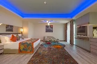 This hotel with a very special design is located in a paradisiac place, by the sea. The Antalya Airport can be reached within 20-minute drive. The hotel rooms are very spacious, bright and modern. They have services such as tea and coffee making facilities, private bathroom with amenities and hairdryer, air-conditioning and safe. The hotel offers a fantastic spa where guests can enjoy numerous body treatments to take care of while relaxing including sauna, Turkish baths and hot tub. Guests can also enjoy the Mediterranean breeze at the hotel's garden and terrace. Guests can relax at a seasonal outdoor and indoor pool. The perfect choice for any vacation, the hotel boasts spectacular beaches, outstanding service, and thrilling activities such as sport competitions, evening shows, musicals and kids activities. Sure to please any traveller, the property is proud to offer outstanding service and superior accommodations.