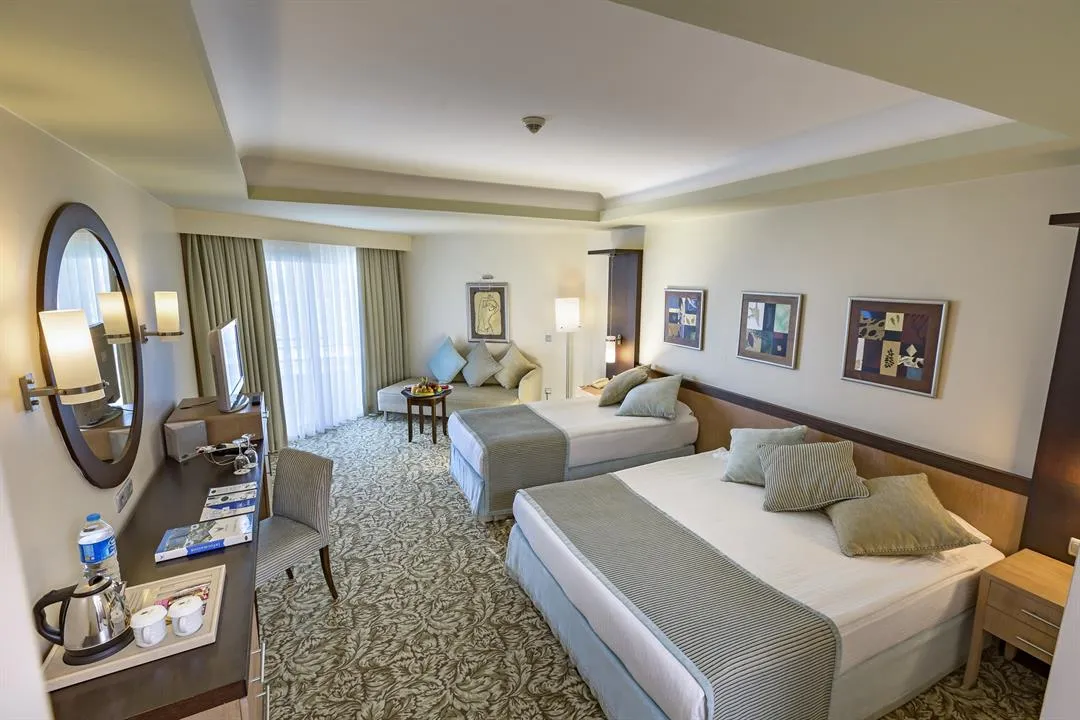 Club Turan Prince face parte din categoria hotelurilor de cinci stele și se întinde pe o suprafață de 132.000 mp. Hotelul beneficiază de camere elegante, spații de relaxare și facilități pentru întreaga familie. Copiii beneficiază de multiple facilități și activități concepute special pentru ei. Domeniul vast este dominat de grădini spațioase, iar plaja privată oferă o vedere spectaculoasă asupra mării.