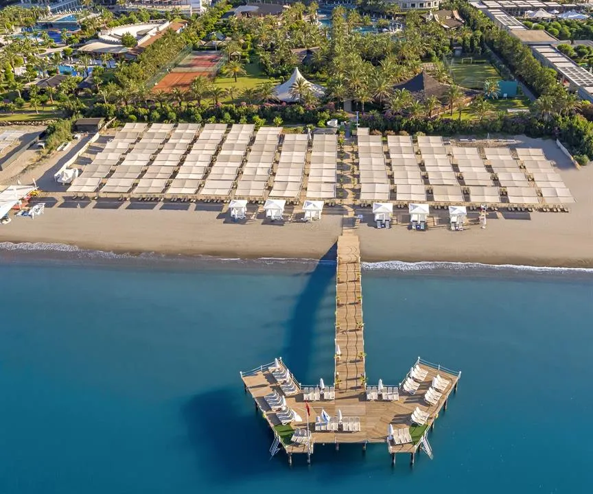 Plajă proprie, lungime – 200 m, ponton; Piscină semi olimpică – 868 mp, piscină Relax – 530 mp, Aqua Park cu 14 tobogane – 950 mp, piscină interioară – 62 mp, piscina Select Villa – 93 mp; Șezlonguri, saltele, umbrele și prosoape gratuite atât la plajă, cât și la piscină.