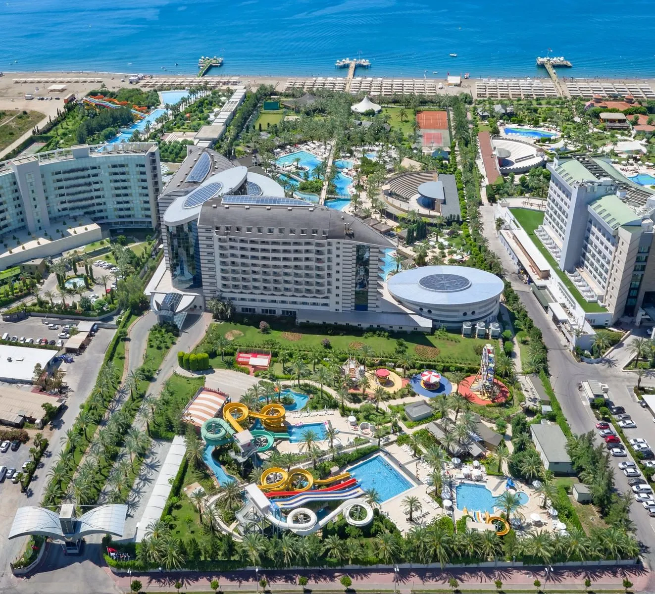 Descriere generală La doar câțiva pași de o plajă privată cu nisip se găsește hotelul Royal Wings Hotel. Pe plajă sunt disponibile gratuit șezlonguri și umbrele de soare. Orașul Antalya este la aprox. 15 km. Diverse magazine se află la aprox. 12 km de hotel. Hotelul dispune de serviciu de rentacar. Aeroportul (AYT) se află la aprox. 17 km. Un alt aeroport (GZP) este la cca. 0 m. Facilități Resortul dispune de 10 etaje și peste 457 camere. Acesta oferă oaspeților săi recepție deschisă 24h (check-in de la 14:00, check out până la 12:00), lobby cu bar, un total de 6 lifturi, aer condiționat, chioșc, alte magazine, discotecă și sistem securizat de intrare. Pentru a servi masa aveți la dispoziție 5 restaurante cu aer condiționat și un snackbar. Accesul la internet WiFi este disponibil gratuit pentru oaspeții hotelului. Pentru evenimente de afaceri, hotelul oferă o zonă de conferințe cu acces la internet. Serviciul de menaj este gratuit. Room service, spălătorie, călcat și serviciul medical sunt disponibile la un cost suplimentar. Piscină Zona exterioară a hotelului cu parc acvatic și tobogan de apă include o piscină precum și o piscină pentru copii. La piscină sunt disponibile gratuit șezlonguri și umbrele de soare. La barul piscinei va puteți bucura de o băutura răcoritoare. Catering Mic dejun (între orele 07:00 - 10:00) bufet suedez. All Inclusive: Apă. Băuturi răcoritoare (08:00 - 00:00), cafea și ceai (08:00 - 00:00), prăjituri și produse de patiserie (16:00 - 00:00), aperitive (12:30 - 15:00), vin (08:00 - 00:00) și gustări la miezul nopții (00:00 - 07:00). All Inclusive Plus: micul dejun, prânzul și cina. Micul dejun, prânzul și cina pot fi servite numai în anumite restaurante. În plus băuturi răcoritoare (08:00 - 00:00), cafea, ceai (08:00 - 00:00), aperitive (12:30 - 15:00), băuturi alcoolice naționale (08:00 - 00:00) și gustări la miezul nopții (00:00 - 07:00). Mic dejun târziu, apă, bere, vin, băuturi alcoolice internaționale și prăjituri și produse de patiserie. Internet gratuit, utilizarea gratuită a seifului (în baza unei garanții) și minibar gratuit (limitat). 1 masă în restaurantul à la carte. Sport/Leisure Oferte pentru sport și divertisment: Tenis de masă (gratuit), aerobic, fitness, biliard (contra cost), volei pe plajă, darts (gratuit), baschet și tenis (gratuit). Oferte de wellness: Saună, jacuzzi, baie turcească și hamam gratuite. Zonă de spa și masaje contra cost. Divertisment pentru adulți: spectacole de seară și muzică live. Loc de joacă pentru copii. Îngrijirea copiilor: program de animație pentru copii (de la 4 - 12 ani), mini club pentru copii (de la 4 - 12 ani) și babysitting (contra cost). Informații suplimentare Pentru anumite facilități sau activități se pot aplica taxe suplimentare. Unele servicii depind de anotimp și de condițiile climatice locale. Limbi de serviciu: engleză, germană, rusă și turcă. Carduri de credit: Visa și Euro/MasterCard. Duplex Standard Familienzimmer: Cameră cu pat pentru bebeluși (gratuit), mochetă, încălzire controlată centralizat, ceainic (gratuit), minibar (posibil contra cost), acces la internet (posibil contra cost), seif (gratuit) și TV cu ecran plat prin satelit precum și aer condiționat controlat central. Duplex Standard Familienzimmer (Meerblick): Cameră cu pat pentru bebeluși (gratuit), mochetă, încălzire controlată centralizat, ceainic (gratuit), minibar (posibil contra cost), acces la internet (posibil contra cost), seif (gratuit) și TV cu ecran plat prin satelit precum și aer condiționat controlat central. Familien Suite (SwimUp-Pool Terrasse): Dotate cu pat pentru bebeluși (gratuit), mochetă, încălzire controlată centralizat, ceainic (gratuit), minibar (posibil contra cost), acces la internet (posibil contra cost), seif (gratuit) și TV cu ecran plat prin satelit precum și aer condiționat controlat central. JuniorSuite (Meerblick): Cameră cu pat pentru bebeluși (gratuit), mochetă, încălzire controlată centralizat, ceainic (gratuit), minibar (posibil contra cost), acces la internet (posibil contra cost), seif (gratuit) și TV cu ecran plat prin satelit precum și aer condiționat controlat central. Double Standard JuniorSuite: Cameră cu pat pentru bebeluși (gratuit), mochetă, încălzire controlată centralizat, ceainic (gratuit), minibar (posibil contra cost), acces la internet (posibil contra cost), seif (gratuit) și TV cu ecran plat prin satelit precum și aer condiționat controlat central. Double Standard Zimmer: Dotate cu pat pentru bebeluși (gratuit), mochetă, încălzire controlată centralizat, ceainic (gratuit), minibar (posibil contra cost), acces la internet (posibil contra cost), seif (gratuit) și TV cu ecran plat prin satelit precum și aer condiționat controlat central. Double Standard Zimmer (Seitlicher Meerblick): Cameră cu pat pentru bebeluși (gratuit), mochetă, încălzire controlată centralizat, ceainic (gratuit), minibar (posibil contra cost), acces la internet (posibil contra cost), seif (gratuit) și TV cu ecran plat prin satelit precum și aer condiționat controlat central. Dimensiune: 36 m². Double Standard Zimmer (Meerblick): Cameră cu pat pentru bebeluși (gratuit), mochetă, încălzire controlată centralizat, ceainic (gratuit), minibar (posibil contra cost), acces la internet (posibil contra cost), seif (gratuit) și TV cu ecran plat prin satelit precum și aer condiționat controlat central. Einzelbelegung Standard Zimmer: Cameră cu pat pentru bebeluși (gratuit), mochetă, încălzire controlată centralizat, ceainic (gratuit), minibar (posibil contra cost), acces la internet (posibil contra cost), seif (gratuit) și TV cu ecran plat prin satelit precum și aer condiționat controlat central. Einzelbelegung Standard Zimmer (Seitlicher Meerblick): Cameră cu pat pentru bebeluși (gratuit), mochetă, încălzire controlată centra