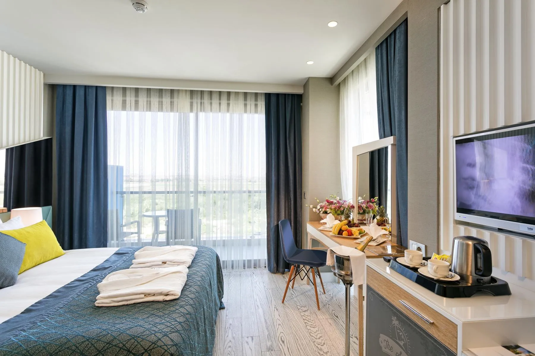 The hotel Wind of Lara Hotel and SPA is located around 19 km from Antalya. The private sandy beach is around 850 m from the hotel. At the beach are sun umbrellas and sun loungers free of charge available. The airport (AYT) is approx. 17 km away. Another airport (GZP) is located approx. 0 m away. To the next beach a free shuttle service is available.