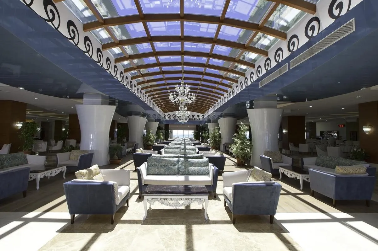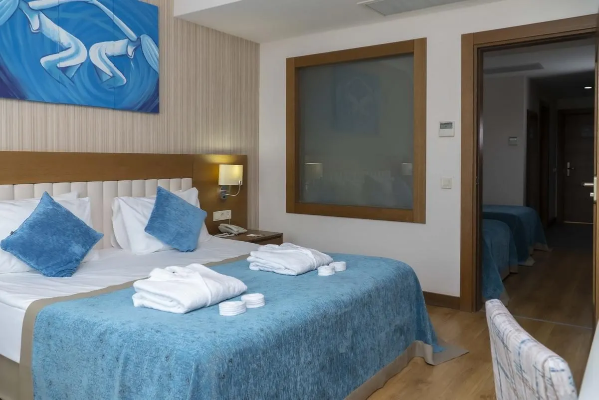 Descriere generală La doar câțiva pași de o plajă privată cu nisip se găsește hotelul Adalya Ocean Deluxe Hotel. Pe plajă sunt disponibile gratuit șezlonguri și umbrele de soare. Orașul Side este la aprox. 10 km (Manavgat cca. 12 km). Următoarele atracții pot fi accesate de la hotel: Manavgat Waterfall (cca. 12 km). Locul de cazare are la dispoziție mașini de închiriat. Aeroportul (AYT) se află la aprox. 55 km. Un alt aeroport (GZP) este la cca. 113 km. Facilități Încântătorul hotel dispune de peste 382 camere repartizate între o clădire principală și o clădire secundară. Acesta oferă oaspeților săi recepție deschisă 24h (check-in de la 14:00, check out până la 12:00), lobby cu bar, un total de 5 lifturi, aer condiționat, seif (contra cost), minimarket, alte magazine, discotecă și parcare (gratuită). O masă savuroasă va așteapta la unul dintre cele 5 restaurante a hotelului. Accesul la internet WiFi este disponibil gratuit pentru oaspeții hotelului. Pentru evenimente de afaceri, hotelul oferă o zonă de conferințe cu acces la internet. Serviciul de menaj este gratuit. Spălătorie, călcat și serviciul medical sunt disponibile la un cost suplimentar. Piscină Zona exterioară a modernului hotelul include o piscină precum și o piscină pentru copii și un tobogan de apă. Acolo sunt disponibile gratuit șezlonguri și umbrele de soare. Un bar lângă piscină oferă oaspeților băuturi răcoritoare. Catering Mic dejun (între orele 07:00 - 10:00) bufet suedez. All Inclusive: micul dejun, prânzul și cina. Micul dejun, prânzul și cina pot fi servite numai în anumite restaurante. Băuturi răcoritoare, cafea și ceai, bere, vin și băuturi alcoolice naționale. Mic dejun târziu (între orele 10:00 - 11:00), prăjituri și produse de patiserie (11:00 - 22:00), aperitive (11:00 - 16:30), gustări la miezul nopții (21:30 - 07:00) și internet gratuit. Sport/Leisure Oferte pentru sport și divertisment: Biliard (contra cost), fitness, tenis de masă (gratuit), darts (gratuit) și aerobic. Oferte de wellness: Saună și masaje contra cost. Baie turcească și hamam posibil contra cost. Divertisment pentru adulți: program de animație. Loc de joacă pentru copii. Îngrijirea copiilor: mini club pentru copii (de la 4 - 12 ani). Sală de jocuri. Informații suplimentare Pentru anumite facilități sau activități se pot aplica taxe suplimentare. Unele servicii depind de anotimp și de condițiile climatice locale. Limbi de serviciu: engleză, germană și turcă. Carduri de credit: Visa și Euro/MasterCard. 2 Schlafzimmer Familienzimmer (Seitlicher Meerblick): Cameră cu parchet laminat, ceainic (gratuit), minibar (posibil contra cost), acces la internet (gratuit), seif (gratuit) și TV cu ecran plat prin satelit precum și aer condiționat controlat central. Baie cu duș. Standard Zimmer (Landschaftsblick): Dotate cu parchet laminat, ceainic (gratuit), minibar (posibil contra cost), acces la internet (gratuit), seif (gratuit) și TV cu ecran plat prin satelit precum și aer condiționat controlat central. Baie cu duș. Standard Zimmer (Seitlicher Meerblick): Cameră cu parchet laminat, ceainic (gratuit), minibar (posibil contra cost), acces la internet (gratuit), seif (gratuit) și TV cu ecran plat prin satelit precum și aer condiționat controlat central. Baie cu duș. Dimensiune: 30 m². Standard Zimmer (Meerblick): Cameră cu parchet laminat, ceainic (gratuit), minibar (posibil contra cost), acces la internet (gratuit), seif (gratuit) și TV cu ecran plat prin satelit precum și aer condiționat controlat central. Baie cu duș. Einzelbelegung Standard Zimmer (Seitlicher Meerblick): Cameră cu parchet laminat, ceainic (gratuit), minibar (posibil contra cost), acces la internet (gratuit), seif (gratuit) și TV cu ecran plat prin satelit precum și aer condiționat controlat central. Baie cu duș. Einzelbelegung Standard Zimmer (Meerblick): Dotate cu parchet laminat, ceainic (gratuit), minibar (posibil contra cost), acces la internet (gratuit), seif (gratuit) și TV cu ecran plat prin satelit precum și aer condiționat controlat central. Baie cu duș. Superior Zimmer: Dotate cu parchet laminat, ceainic (gratuit), minibar (posibil contra cost), acces la internet (gratuit), seif (gratuit) și TV cu ecran plat prin satelit precum și aer condiționat controlat central. Baie cu duș.