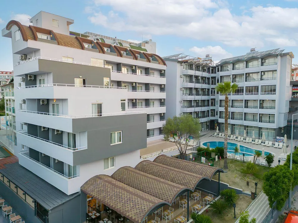 Descriere generala: Acces la plaja cu nisipLocalizat in apropierea orasului SideRecomandat pentru un sejur activ Principalele puncte de atracție: Acces la plaja cu nisipLocalizat in apropierea orasului SideRecomandat pentru un sejur activ Descriere hotel: Hotelul, construit in anul 2010 si renovat in 2022/2023 ofera o cazare confortabila, fiind situat in apropierea centrului istoric al orasului Side. Facilități si dotari camere:  Hotelul are 105 camere, impartite astfel:- Family Rooms - au o suprafata de 45m², acest tip de camere are 2 dormitoare cu separator sau usa. Camerele sunt mobilate cu un pat dublu si doua paturi single, avand o capacitate de 4 persoane (3+1).- Standard Sea View Rooms – au o suprafata de 28m², camerele sunt mobilate cu un pat dublu si unul single, capacitatea maxima de cazare este de 3 persoane (2+1)- Standard Land View Rooms - au o suprafata de 28m², camerele sunt mobilate cu un pat dublu si unul single, capacitatea maxima de cazare este de 3 persoane (2+1)Dotari camere: baie proprie cu duş, TV, telefon, mini-bar, seif, conexiune internet, kettle, aer condiționat, uscator de par, balcon. Sport și relaxare: Piscine exterioare, sala de fitness, centru de Spa, baie turceasca, sauna, darts, sah, tenis de masa, Mini Club, programe de animatie, sporturi nautice. Facilități pentru copii: Facilitati pentru copii:- Piscina pentru copii - Mini Club pentru copiii cu varsta intre 4-12 ani-Scaune pentru bebelusi in restaurantul principal Facilități gratuite: Bauturi alcoolice si non-alcoolice locale in intervalul 10:00-24:00, piscine exterioare, conexiune internet, minibar, Mini Club, sala de fitness, baie turceasca, sauna, darts, sah, tenis de masa, programe de animatie. Facilități contra cost: Bauturi de import, toate bauturile dupa ora 24:00, cafea turceasca, serviciul de masaje, spalatorie, sporturi nautice, telefon, fax. Regim de masă: All inclusive - Mic dejun, prânz şi cină tip bufet- Bauturi alcoolice si non-alcoolice locale incluse in intervalul 10:00- 24:00 - Coffee break dupa-amiaza- Mini-bar alimentat zilnic cu apa Locatia: Hotelul este localizat la 2km de centrul vechi al orasului Side, 65km fata de aeroportul din Antalya si 5km fata de orasul Manavgat. Soare si mare: Hotelul se afla la aproximativ 250 m fata de plaja proprie, cu nisip, unde oaspetii au acces la umbrelute si sezlonguri gratuite. Hotelul detine si 3 piscine in aer liber (2 pentru adulti si una pentru copii). Restaurante si baruri: Restaurant principal- tip bufetBaruri - Lobby Bar, Pool Bar
