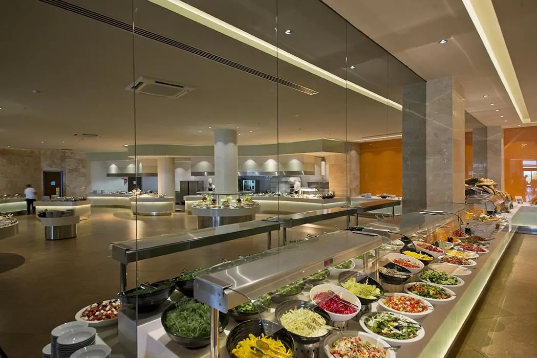 Restaurant principal, restaurante cu gustari calde si reci, 6 restaurante a la carte cu specific pescaresc, turcesc, italian, oriental, Steak si BBQ, 6 baruri si cafenele.