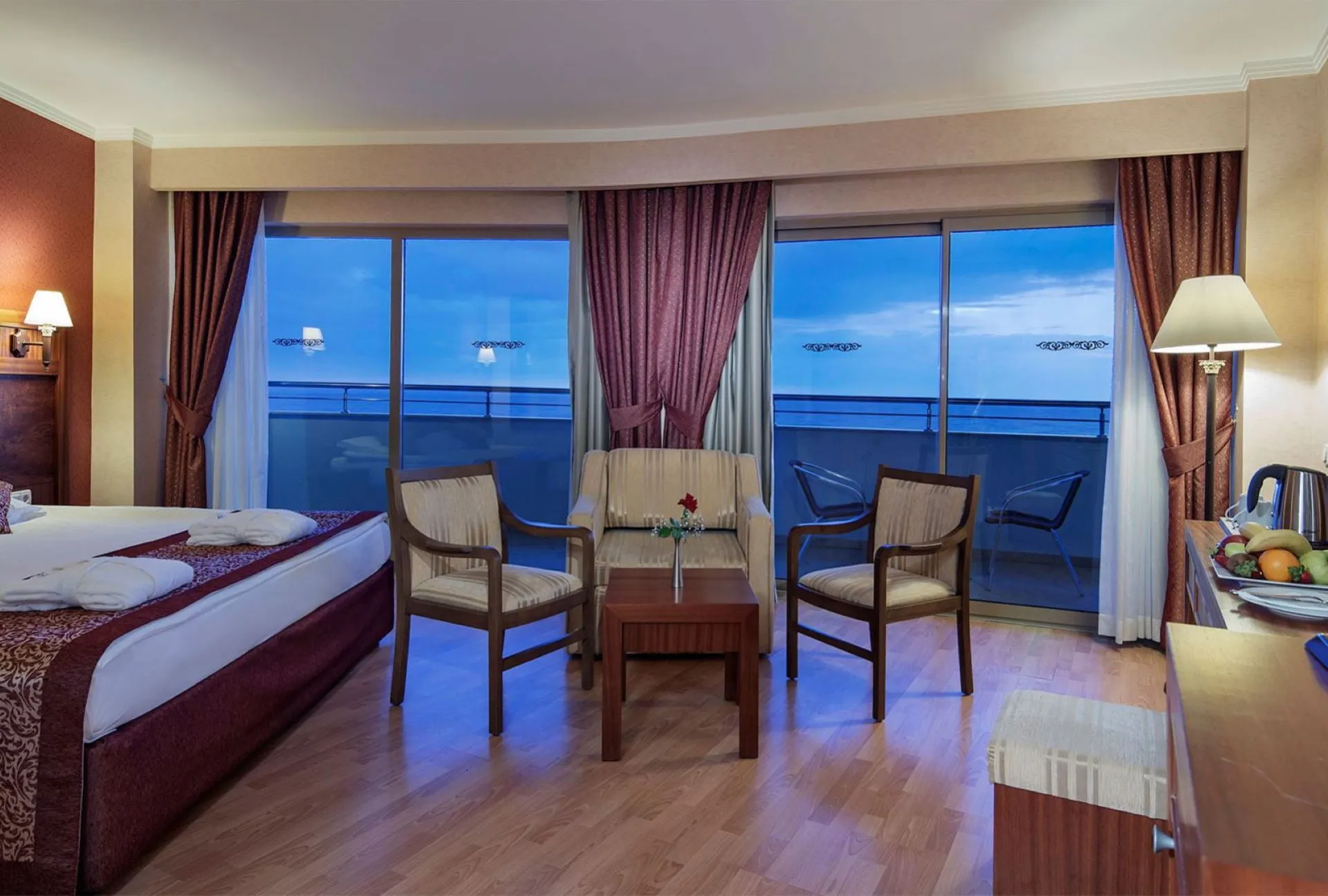 Descriere generala: Hotel Adults Only 16+Plajă cu distincţie Blue FlagCentru Wellness & Spa Principalele puncte de atracție: Hotel Adults Only 16+Plajă cu distincţie Blue FlagCentru Wellness & Spa Descriere hotel: Situat pe o suprafață de 10.800 m², hotelul Alba Royal se distinge de celelalte hoteluri ale Grupului Alba prin gama sa largă de servicii, oferind oaspeților cu vârsta de peste 16 ani un concept Ultra All-Inclusive. Deschis în 2008, hotelul Alba Royal promite o vacanță de neuitat cu conceptul său exclusivist, plajă cu steagul albastru și nisipuri aurii. Facilități si dotari camere: Hotelul dispune de 224 de camere, astfel:-168 Standard rooms: 26 m², cu o capacitate maxima de 3 persoane (2+1 sau 3 adulti), pot fi Land view (61), Sea view (87) sau Partial sea view (20).-48 Superior rooms: 32 m², cu o capacitate maxima de 3 persoane, Land view (11), Sea view (37)- 8 Senior Suite: 41 m², cu o capacitate maxima de 3 persoane, Land view (4), Sea view (4)- Handicapped room: 26 m², exista 3 astfel de camere, a caror capacitate maxima este de 2 persoane iar vederea este Land view.Dotari camere: baie cu dus, aer conditionat, parchet laminat, balcon, minibar, set up pentru preparare bauturi calde, seif , tv, telefon, internet (contra cost), uscator de par. Sport și relaxare: Centru de spa&wellness, piscina exterioara si interioara, jacuzzi, minigolf,  sala de fitness, sauna, baie cu aburi, baie turceasca, boccia, darts, volei pe plaja, zumba, muzica live, spectacole, sala de jocuri (carti, backgammon, sah), biblioteca, sporturi nautice. Facilități pentru copii: Adults Only 16+ Facilități gratuite: Piscina exterioara si interioara, minibar, seif, internet in zonele publice, bauturi locale, o cina a la carte pe baza de rezervare, minigolf, sala de fitness, sauna, baie cu aburi, baie turceasca, boccia, darts, volei pe plaja, zumba, fotbal, muzica live, spectacole, sala de jocuri (carti, backgammon, sah), biblioteca. Facilități contra cost: Internet in camera, bauturi de import, sucuri naturale de fructe, room service, serviciul de masaje, sporturi nautice, servicii medicale, zona de shopping, calcatorie/spalatorie, telefon, fax. Regim de masă: Ultra All Inclusive- Mic dejun, prânz şi cină tip bufet- Mini-bar alimentat zilnic cu apa si bauturi racoritoare- Bauturi alcoolice si non-alcoolice locale incluse - Gustari intre mesele principale- Cina la restaurantul a la Carte cu rezervare in prealabilive. Bine de stiut: Pachetul Honeymoon: Vip set up la sosire (cos cu fructe si vin), oferirea unui mic dejun la camera si o cina romantica.Wedding anniversary: oferirea unui mic dejun la camera si o cina romantica.Camere adaptate nevoilor persoanelor cu dizabilitati. Locatia: Hotelul este amplasat la o distanţă de 8 km de oraşul Side, la 13 km de Manavgat, la 55 km de aeroportul din Antalya şi la 65 km de centrul oraşului. Soare si mare: Plajă proprie cu nisip fin, auriu; distincţie Blue Flag;Piscină exterioară, piscină interioară.Umbrele şi sezlonguri gratuite, atât la plajă cât şi la piscină. Restaurante si baruri: Hotelul Alba Royal are două restaurante principale, trei restaurante a la Carte cu specific turcesc, pescaresc si cubanez și două restaurante unde se servesc  gustări.Hotelul detine si 7 baruri unde se pot servi bauturi delicioase atat non-alcoolice cat si alcoolice.2 restaurante principale - tip bufet3 restaurante á la carte, cu specific: pescăresc-„Amadeus”, „Cubana”, turcesc-„Efendy”Escape Beach Snack Bar, Tuana Café Pool Snack BarAngora Lounge, Nikita Lounge, Biscotti House Café, Disco Bar