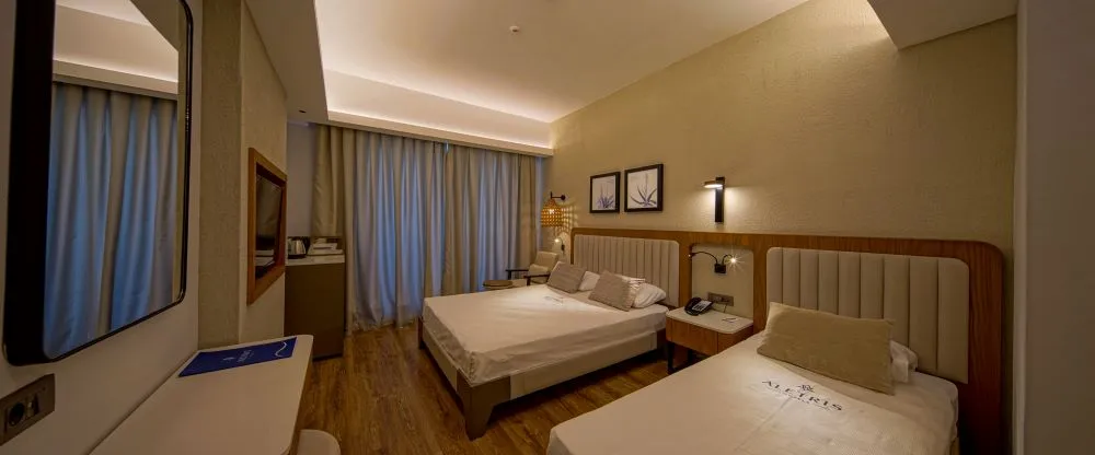 Descriere generala: Acces internet gratuitFacilitati pentru copiiRecomandat pentru cupluri si familii cu copii Principalele puncte de atracție: Acces internet gratuitFacilitati pentru copiiRecomandat pentru cupluri si familii cu copii Descriere hotel: Hotelul Aletris Deluxe este un hotel nou, situat in Gundogdu, in apropiere de statiunea Side, zona renumita pentru plaja cu nisip fin. Acesta ofera o cazare de calitate si acces la o plaja cu nisip fin, situata la 600 m fata de hotel. Facilități si dotari camere: Hotelul dispune de urmatoarele tipuri de camere:-Standard room with land view-32 mp, capacitatea maxima este de 3 adulti si un infant-Standard room with pool view-32 mp, capacitatea maxima este de 3 adulti si un infant-Standard room with sea view-32 mp, capacitatea maxima este de 3 adulti si un infant-Family room with land view- 48 mp, format din 2 dormitoare separate. Anumite camere au o ușă comunicantă și o baie , în timp ce alte camere au doua  băi. Capacitatea maxima admisa este de 4 adulti si un infant.-Swim up room standard room- 32 mp, capacitatea maxima este de 3 adulti-Swim up family room- 48 mp, capacitatea maxima admisa este de 4 adulti -Honeymoon room with jacuzzi- 32 mp, capacitatea maxima este de 2 adulti-Disabled room- 32 mp, 32 mp, capacitatea maxima este de 2 adultiDotari camere: baie cu dus, aer conditionat, parchet laminat, balcon, minibar, set up pentru preparare bauturi calde, seif , tv, telefon, internet, uscator de par, oglinda de machiaj, papuci. Sport și relaxare: centru de spa&wellness, piscina exterioara si interioara, tobogane, minifotbal, tenis de masa,sah,  sala de fitness, sauna, baie cu aburi, baie turceasca, stretching, gimnastica in apa, aerobic step, boccia, darts, volei pe plaja, zumba, muzica live, spectacole, sporturi nautice Facilități pentru copii: - piscina pentru copii cu tobogane- miniclub- minidisco Facilități gratuite: piscina exterioara si interioara, tobogane, minibar, seif, internet, o cina a la carte pe baza de rezervare, sala de fitness, sauna, baie cu aburi, baie turceasca, boccia, darts, volei pe plaja, zumba, minifotbal, muzica live, spectacole, sah, stretching, gimnastica in apa, aerobic step Facilități contra cost: room service, serviciul de masaje, sporturi nautice, servicii medicale, zona de shopping, calcatorie/spalatorie, telefon, fax Regim de masă:  Ultra All Inclusive- mic dejun, prânz şi cină tip bufet- mini-bar alimentat zilnic cu apa,  bauturi racoritoare si bere- bauturi alcoolice si non-alcoolice locale incluse - gustari intre mesele principale- cina la restaurantul a la carte cu rezervare in prealabil Bine de stiut: Pachetul Honeymoon: decorarea camerei la sosire, oferire cos cu fructe si vin, oferirea unui mic dejun in camera si o cina romantica.Camere adaptate nevoilor persoanelor cu dizabilitati. Locatia: Hotelul este localizat in la 12 km fata de statiunea Side, 15 fata de orasul Manavgat si 55 fata de aeroportul din Antalya Soare si mare: Hotelul este amplasat la 600 m de plaja proprie cu nisip fin. Acesta dispune si de piscine, avand  o suprafață totală de înot de 1200 m² cu 2 piscine mari (630 m² si 360 m²), o piscină exterioară pentru copii (60 m²),  o piscină cu tobogane (150 m²) și o piscina interioara cu apa incalzita. Atat la piscina cat si plaja se asigura sezlonguri, umbrelute si prosoape gratuite. Restaurante si baruri: Restaurant principal, trei restaurante a la carte cu specific turcesc, pescaresc si italian, Lobby Bar, Pool Bar, Beach bar, Irish bar si Disco bar.