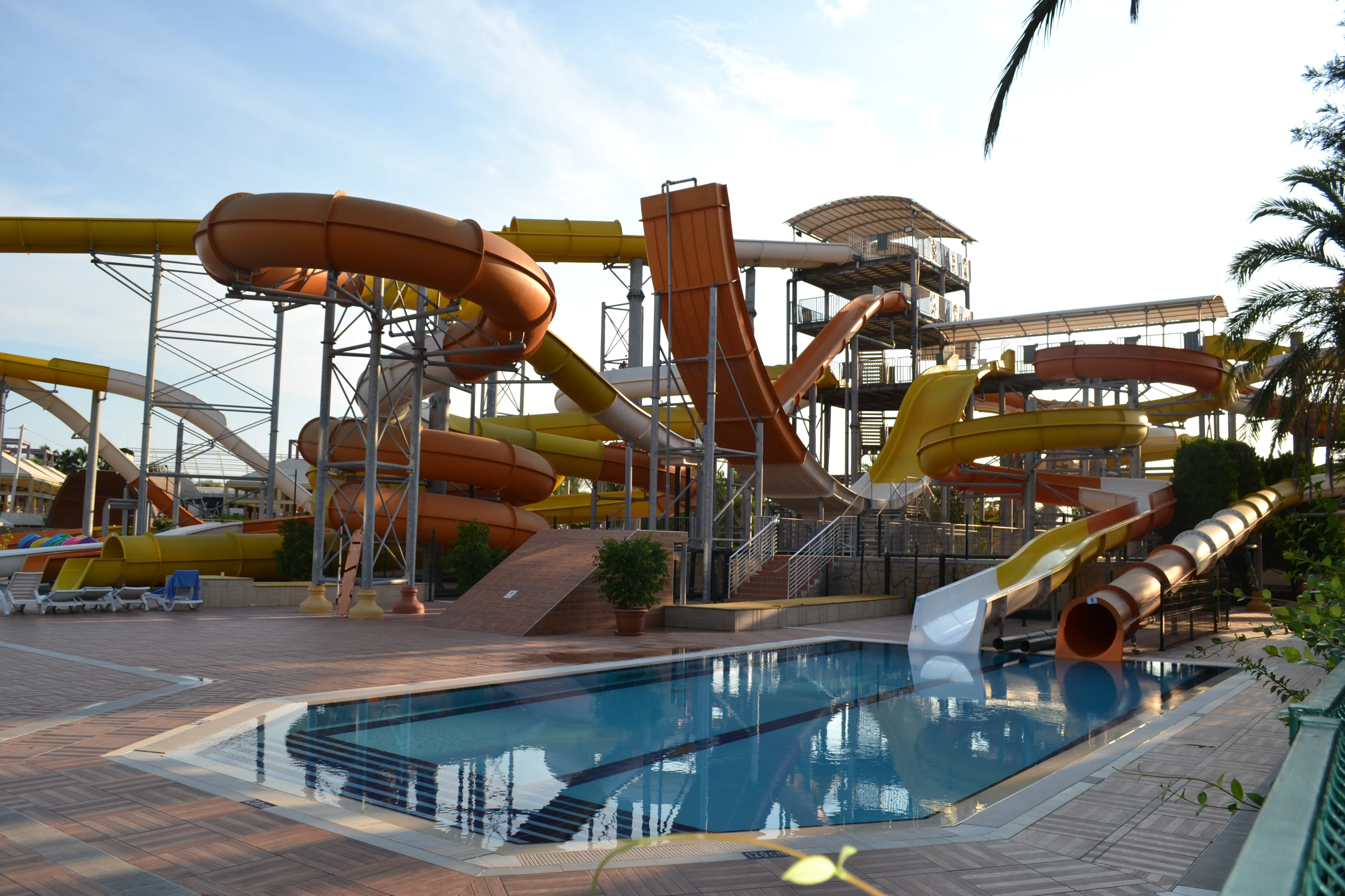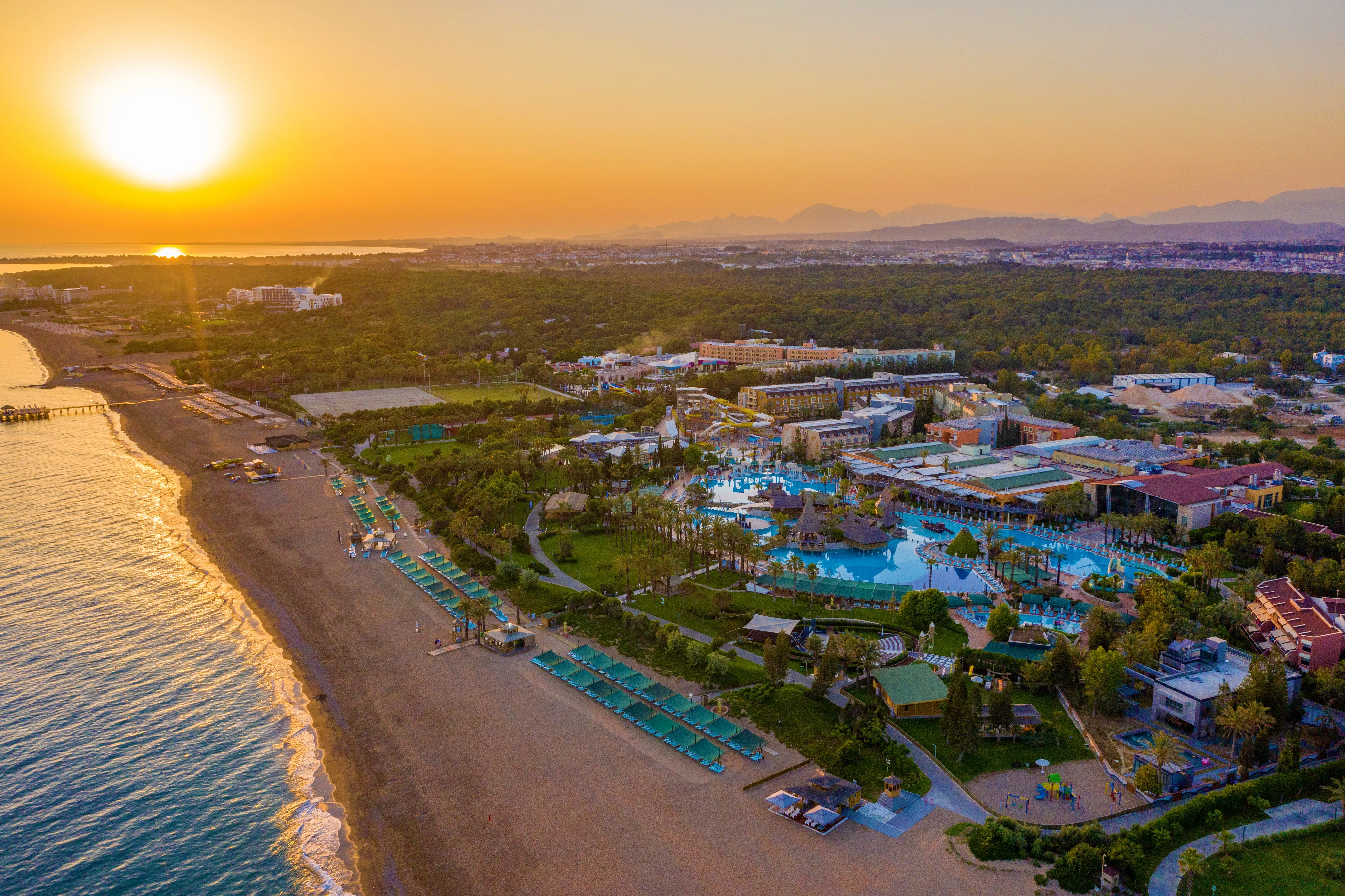 This family-friendly hotel is situated in the popular holiday region of the Turkish Riviera and enjoys a fantastic huge 10, 000 m2 pool. The beautiful sandy beach is just a short stroll away, the hotel features 4 restaurants and several bars. The historic town of Side with its ancient sites is at a distance of 6 km, the city of Antalya and the international airport are 80 km and 70 km away, respectively.