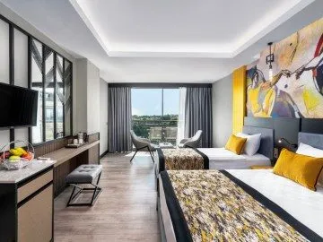 The preferred airport for Arnor De Luxe Hotel is Antalya Intl. Airport (AYT) - 66.6 km / 41.4 mi