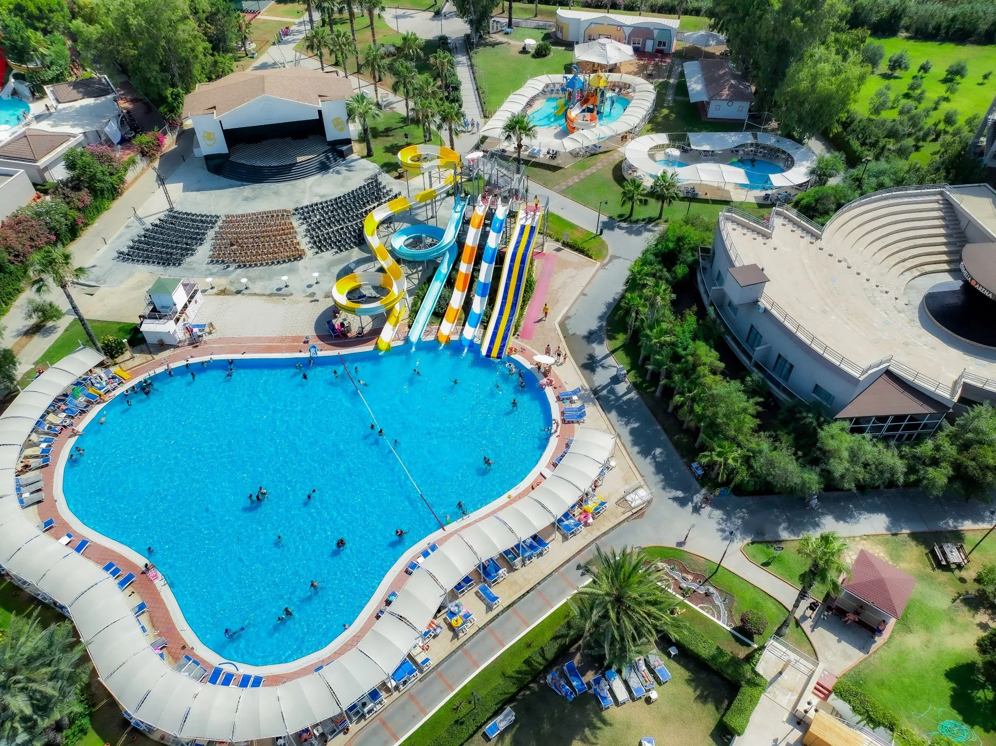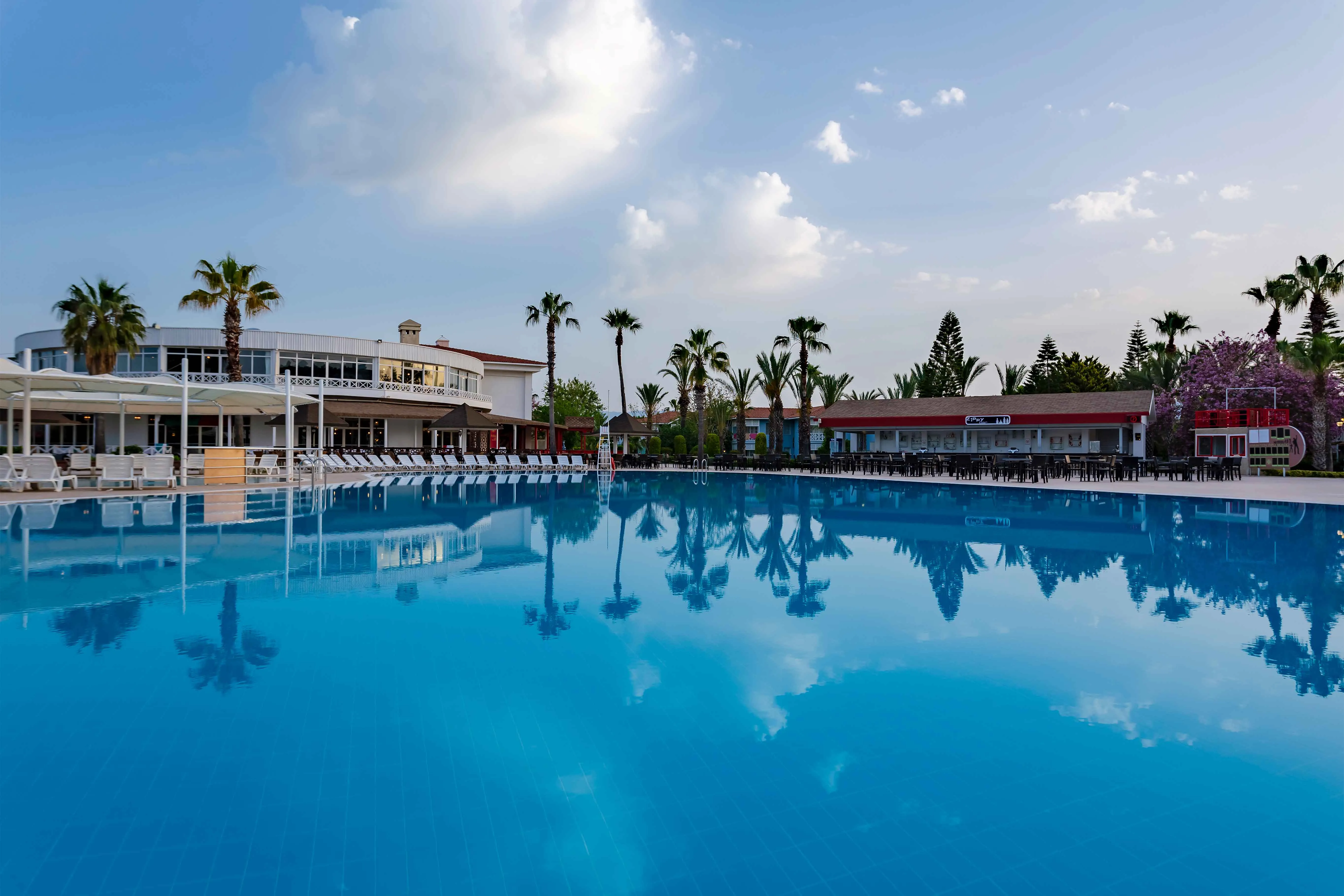 Located in the Kizilagac resort area, the hotel is 20 kilometres from the historical town of Side. Antalya Airport lies some 80 km away from the hotel. This first-rate holiday village occupies 183,000m2 of land and boasts spacious, landscaped gardens leading down to the private beach. The hotel features 586 guest rooms equipped with satellite LED TV, direct dial phone, mini-bar, split A/C (heating-cooling), laminate floor, bathroom with bath-Shower, hair dryer. Guests might venture into Side to visit the stunning ruins of the Temple of Apollo and ancient theatre, or simply lounge by the hotel's expansive outdoor pool and relax in the spa and wellness centre with Turkish bath, sauna, relax pool and massage services. The complex has a wide range of activities and amenities especially suitable for families. Culinary facilities include a buffet restaurant and choice of five restaurants serving international cuisines, all for a fun-filled holiday by the sea. Location:606 Total number of rooms; 2 Number of floors (annexe); 72 Junior suites; 10 Executive rooms; 31 Superior rooms; 32 Family rooms; 6 Disability-friendly rooms Hotel type:hotel Methods of payment:MasterCard; Visa Distances (in meters):City centre (12000); Bus/Train station (1000); Nearest Bus / Metro Stop (50000); Airport (78000); Harbour (21000); Beach (100) Facilities:Wheelchair-accessible; Car park; 24-hour reception; Check-in hour; Check-out hour; Wi-fi; Room service (Extra Fee); Laundry service (Extra Fee); Launderette (Extra Fee); Medical service (Extra Fee); Bicycle hire service (Extra Fee); Babysitting service (Extra Fee); Multilingual staff; 24-hour security; Bellboy service; Air conditioning in public areas; Smoke detector; Currency exchange facilities (Extra Fee); Cloakroom; Supermarket (Extra Fee); Shop (Extra Fee); Garden; Sun terrace; Gym; Luggage room; Dining area; Private beach area; Library Catering:Café; Bar; 8 Restaurant; Non-smoking area; Smoking area; Highchairs; Poolside snack bar; Air conditioning in Restaurant Business:Printer (Extra Fee); Photocopier (Extra Fee) Entertainment:Sun loungers; Parasols; WaterSlides; Children playground; Kids’ club; Entertainment programme for adults; Entertainment programme for children; Waterpark Health:Sauna; Steam bath; Turkish bath (hamam); Massage (Extra Fee); Spa treatments (Extra Fee); Hairdressing salon (Extra Fee); Beauty salon (Extra Fee); Spa centre (Extra Fee)
