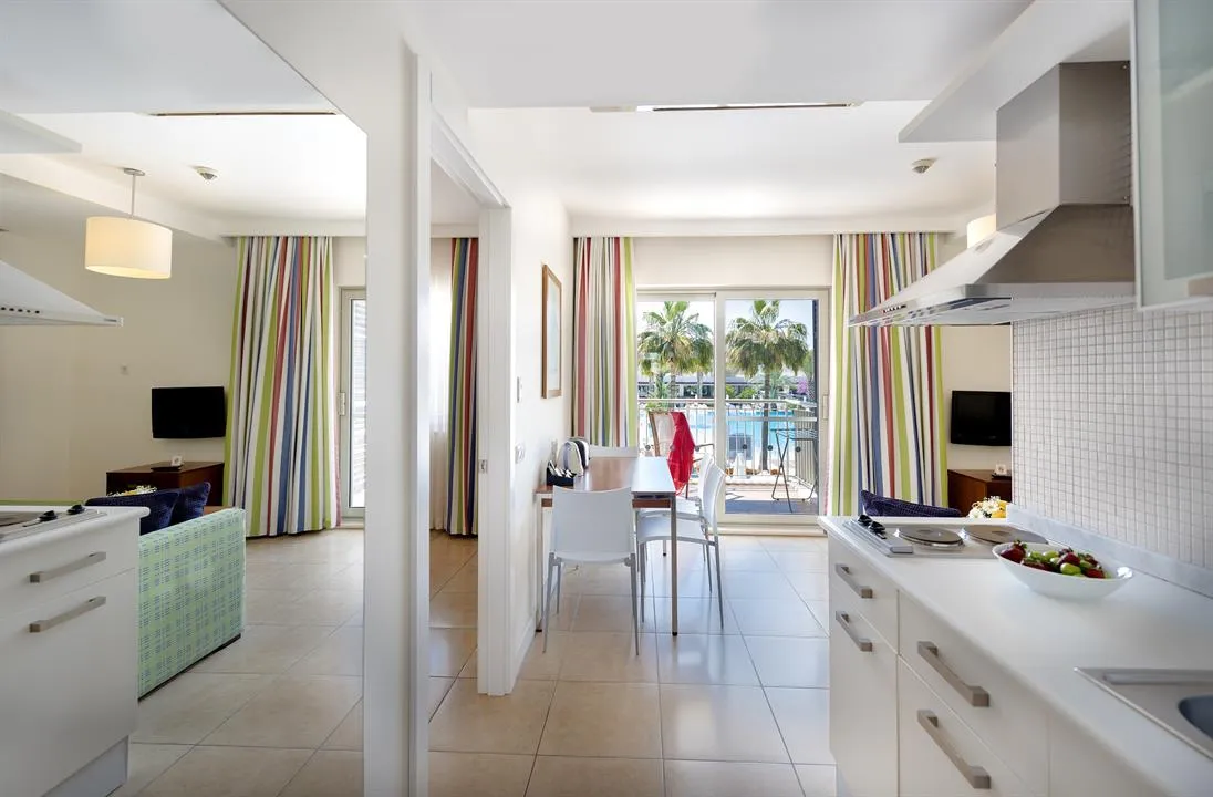 Restaurantul principal - tip bufet, (meniu vegetarian și meniu gluten free), Terrace & Grill Restoran - restaurant A la Carte, Lime Bar, Beach Club Snack Bar, Ice Cream Bar, Coffe Shop.
