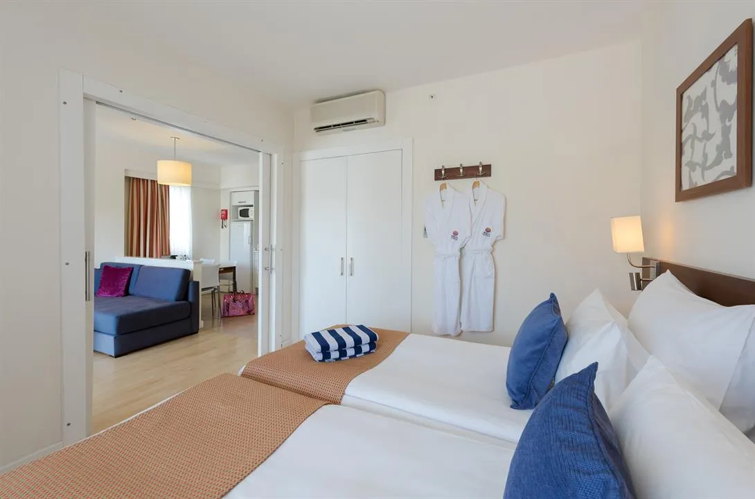 Hotelul dispune de următoarele tipuri de camere: 14 junior suite - dormitor și chicinetă, (cca. 40 mp), 230 suite - dormitor, sufragerie și bucătărie (cca. 45 mp), 10 grand suite - 2 dormitoare, sufragerie și bucătărie (cca. 53 mp).