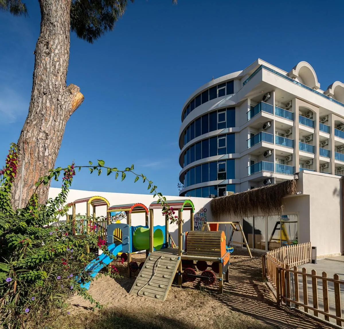 Descriere generală Hotelul Berry Blue Hotel este situat la cca. 150 m de o plajă privată cu nisip/pietriș. Pe plajă sunt disponibile gratuit șezlonguri și umbrele de soare. Cel mai apropiat oraș este Antalya (Manavgat cca. 5 km). În apropierea hotelului se află un supermarket. De asemenea, există o discotecă la mică distanță de hotel. Aveți la dispoziție o stație de autobuz (cca. 350 m) și o stație de taxi (cca. 150 m) cea ce vă garantează mobilitatea în vacanță. Aeroportul (AYT) se află la aprox. 73 km. Un alt aeroport (GZP) este la cca. 103 km. Facilități Acesta oferă oaspeților săi recepție (check-in de la 14:00, check out până la 12:00), lobby cu bar, aer condiționat și sistem securizat de intrare. Pentru a servi masa aveți la dispoziție 3 restaurante cu aer condiționat. Accesul la internet WiFi este disponibil gratuit pentru oaspeții hotelului. Serviciul de menaj este gratuit. Room service, spălătorie, călcat și serviciul medical sunt disponibile la un cost suplimentar. Piscină Zona exterioară a hotelului include o piscină cu apă dulce precum și o piscină pentru copii și un tobogan de apă. Acolo sunt disponibile gratuit șezlonguri și umbrele de soare. Un bar lângă piscină oferă oaspeților băuturi răcoritoare (deschis între orele 20:00 - 00:00). Catering Mic dejun (între orele 07:00 - 10:00) bufet suedez. Sport/Leisure Este disponibil: Darts (gratuit), yoga, fitness și Pilates. Oferte de wellness: Zonă de spa, hamam și masaje contra cost. Divertisment pentru adulți: spectacole de seară și muzică live. Loc de joacă pentru copii. Îngrijirea copiilor: program de animație pentru copii, mini club pentru copii (de la 4 - 12 ani) și babysitting (contra cost). Informații suplimentare Pentru anumite facilități sau activități se pot aplica taxe suplimentare. Unele servicii depind de anotimp și de condițiile climatice locale. Limbi de serviciu: engleză și turcă. Carduri de credit: Visa și Euro/MasterCard. Familienzimmer: Cameră cu parchet laminat, ceainic (gratuit), minibar (posibil contra cost), acces la internet (gratuit), seif (gratuit) și TV cu ecran plat prin satelit precum și aer condiționat controlat central. Baie cu duș. Dimensiune: 43 m². Elite Zimmer: Cameră cu parchet laminat, ceainic (gratuit), minibar (posibil contra cost), acces la internet (gratuit), seif (gratuit) și TV cu ecran plat prin satelit precum și aer condiționat controlat central. Baie cu duș. Dimensiune: 23 m². Einzel Elite Zimmer: Dotate cu parchet laminat, ceainic (gratuit), minibar (posibil contra cost), acces la internet (gratuit), seif (gratuit) și TV cu ecran plat prin satelit precum și aer condiționat controlat central. Baie cu duș.