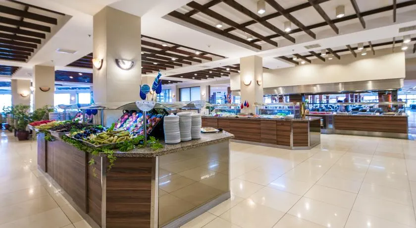 Breakfast buffet; Buffet lunch; Buffet dinner; À la carte dinner; All inclusive Things to keep in mind:Non-smoking establishment Sports:Aqua fit; Banana boating (Extra Fee); Waterskiing (Extra Fee); Jet ski (Extra Fee); Motor board ride (Extra Fee); Diving (Extra Fee); Windsurfing (Extra Fee); Catamaran sailing (Extra Fee); Canoeing (Extra Fee); Pedal boating (Extra Fee); Table tennis; Aerobics; Fitness; Archery; Cycling / mountain biking (Extra Fee); Handball; Basketball; Beach volleyball; Billiards (Extra Fee); Bocce; Mini golf; Surfing; Tennis; Badminton; Darts Healthy & Safety (COVID):Turkey - Safe Tourism Certificate