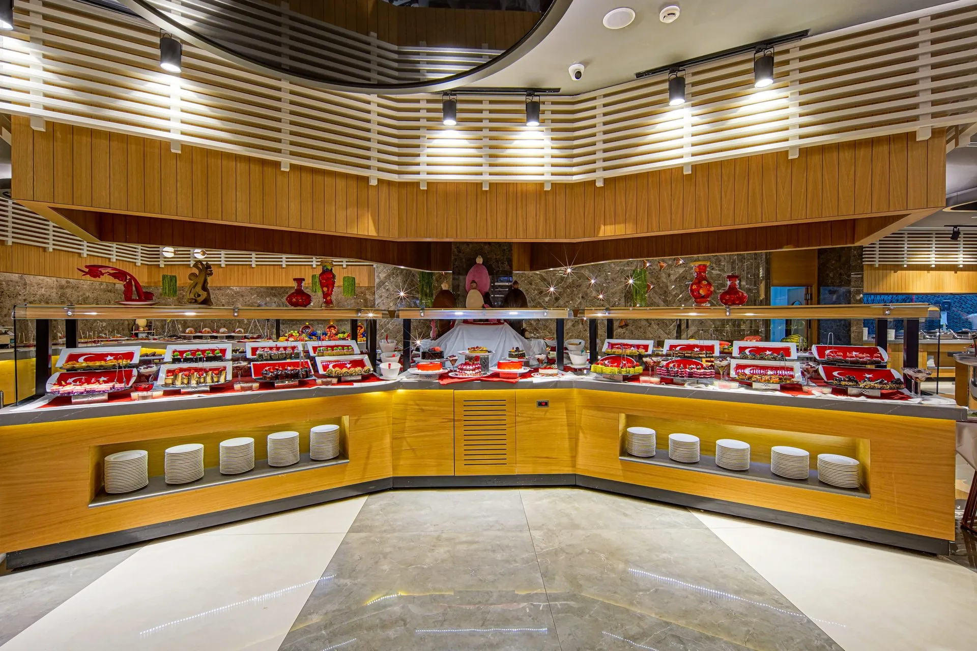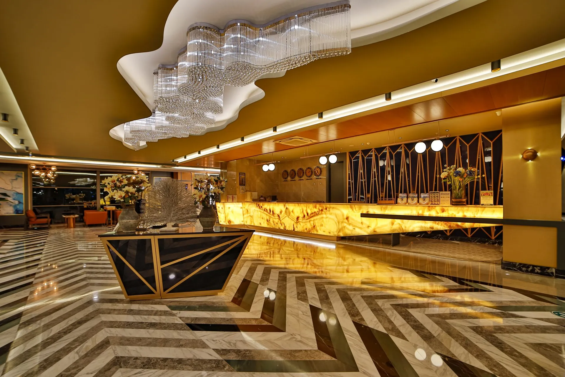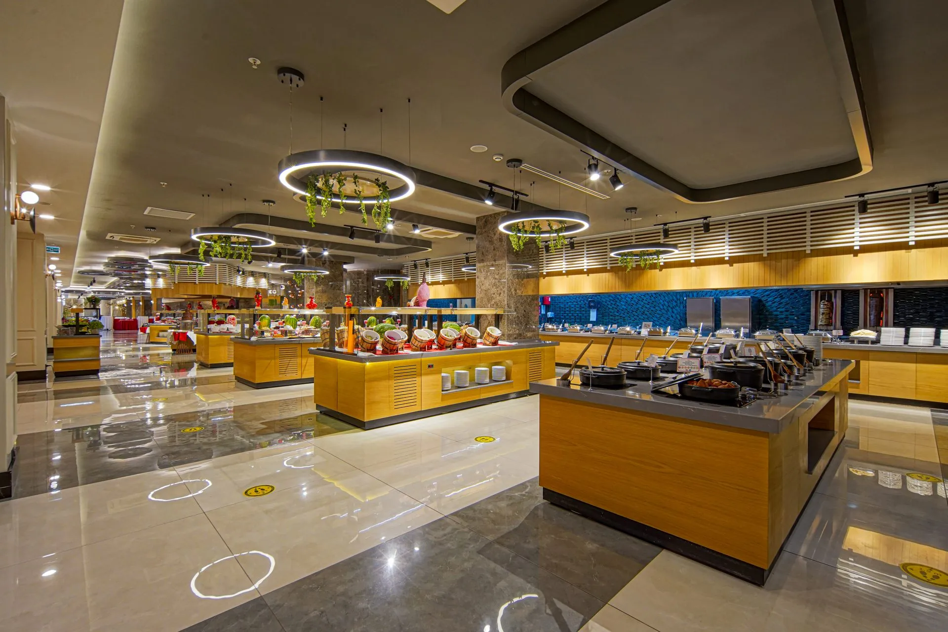 In the vicinity of the hotel`s own beach is located the hotel Diamond De Luxe Hotel & Spa. The nearest shops you can reach within around 300 m. There is a shuttle between the hotel and the airport (for a fee). On the beach are sun loungers and beach towels available. At the beach there is a bar serving refreshing drinks. The air-conditioned hotel has a 24h reception (check-in is possible around the clock), a lobby bar, Wi-Fi, internet access, a lift, a shop, a boutique as well as a hairdresser. In the outdoor area of the property you will find a heated pool, where pool towels are available for free. There is also a separate children's pool with 5 water slides. Furthermore, you can relax outdoors on a terrace. Inside the hotel you can use an indoor pool. You can store your valuables in the safe, and your luggage in the hotel`s storage room. For your entertainment, the hotel offers a disco. For very young guests, kid`s chairs can be provided. There is also a laundry service available at an additional cost to customers. Ironing equipment can be rented at the hotel for a fee. For your comfort the hotel page will ensure you are looked after. If necessary, you can contact the medical centre at any time. Guests at the accommodation can get a wake-up call from the hotel personnel. For conventions and other business meetings, the hotel offers a business centre as well as a conference area with scanner as well as overhead projector. If you want to explore the holiday region, you can use the car and motorbike rental service close to the hotel (extra fee). At the reception, tickets are offered for excursions in the area. In your hotel, a lot of focus is placed on sustainability. This includes among others a central room air-conditioning. That is why the hotel Diamond De Luxe Hotel & Spa was also awarded a sustainability certificate. Due to its barrier-free facilities , such as separate, barrier-free entrances, wheelchair accessible rooms and a wheelchair accessible lift, the hotel is also suitable for wheelchair users. Catering As catering services the hotel offers all-inclusive, full board and full board plus. Breakfast is offered from the buffet. Enjoy your lunch from the buffet. Dinner is also served as a buffet or à la carte. Half board plus includes selected imported spirits (limited). All Inclusive Light includes local alcoholic beverages. As part of the all-inclusive service, local and international alcoholic beverages (24h, limited) as well as international alcoholic beverages (unlimited) are available at no extra charge. For the meals, there are a buffet restaurant with terrace (Italian, Mediterranean and calorie-reduced dishes) and several bars as well as the pool bar. The drinks menu of the hotel includes 24h international alcoholic beverages. For dinner, guests are asked to wear appropriate clothing in the restaurant. Distances