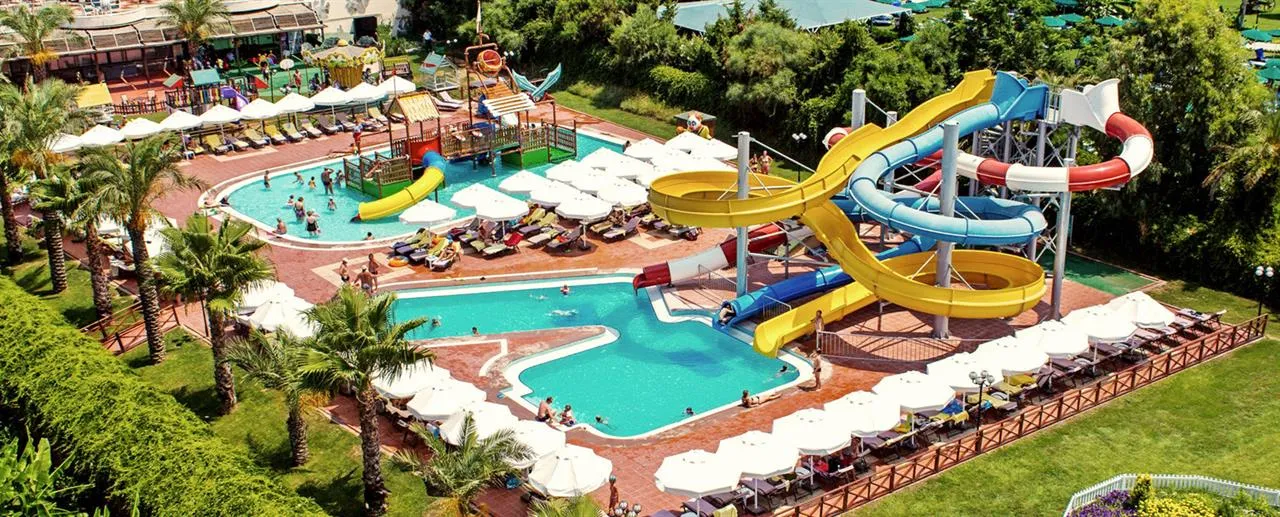 Plajă proprie, lungime – 200 m, ponton; Piscină semi olimpică – 868 mp, piscină Relax – 530 mp, Aqua Park cu 14 tobogane – 950 mp, piscină interioară – 62 mp, piscina Select Villa – 93 mp; Șezlonguri, saltele, umbrele și prosoape gratuite atât la plajă, cât și la piscină.