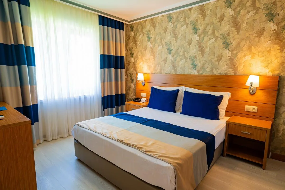 Descriere generală Hotelul Master Family Club este locat in Kizilot, la cca. 100 m de o plajă privată cu nisip. Pe plajă sunt disponibile gratuit șezlonguri și umbrele de soare. Centrul turistic al stațiunii se află la aprox. 8 km. Orașul Manavgat este la aprox. 20 km. Hotelul dispune de serviciu de rentacar. De asemenea, aveți în apropiere o stație de taxi (cca. 50 m) cea ce vă oferă mobilitate în timpul vacanței. Pentru îngrijiri medicale în caz de urgență, există un spital la cca. 24 km distanță. Aeroportul (AYT) se află la aprox. 80 km. Un alt aeroport (GZP) este la cca. 87 km. Facilități Acesta oferă oaspeților săi recepție (check-in de la 14:00, check out până la 12:00), lobby cu bar, lift, aer condiționat, minimarket, alte magazine și parcare (gratuită). O masă savuroasă va așteapta la unul dintre cele 3 restaurante a hotelului. Accesul la internet WiFi este disponibil gratuit pentru oaspeții hotelului. Serviciul de menaj este gratuit. Room service și spălătorie sunt disponibile la un cost suplimentar. Piscină În grădinile acestui hotelul există o piscină cu apă dulce precum și o piscină separată pentru copii și un tobogan de apă. La piscină sunt disponibile gratuit șezlonguri și umbrele de soare. La barul piscinei va puteți bucura de o băutura răcoritoare (deschis între orele 10:00 - 18:00). Catering Mic dejun (între orele 07:00 - 10:00) bufet suedez. All Inclusive: micul dejun, prânzul și cina. Micul dejun, prânzul și cina pot fi servite numai în anumite restaurante. Apă și anumite băuturi alcoolice importate (limitate) în baruri și restaurante speciale. Băutură de bun venit, mic dejun târziu (între orele 10:00 - 11:00), băuturi răcoritoare (10:00 - 00:00), cafea și ceai (10:00 - 00:00), prăjituri și produse de patiserie (14:00 - 17:00), aperitive (12:00 - 17:00), bere (10:00 - 00:00), vin (10:00 - 00:00), băuturi alcoolice naționale (10:00 - 00:00), gustări la miezul nopții (23:30 - 00:00) și internet gratuit. Check-out mai târziu posibil (în funcție de disponibilitate). Sport/Leisure Oferte pentru sport și divertisment: Volei pe plajă, Pilates, tenis (contra cost), tenis de masă (gratuit), darts (gratuit) și fitness. La cca. 100 m de hotel, sunt oferite sporturi nautice precum jet ski (unele de către furnizori locali). Oferte de wellness: Hamam gratuit. Zonă de spa și masaje contra cost. Divertisment pentru adulți: program de animație cu spectacole de seară și muzică live. Teren de joacă. Îngrijirea copiilor: program de animație pentru copii (de la 5 - 12 ani), mini club pentru copii (de la 5 - 12 ani) și babysitting (contra cost). Informații suplimentare Pentru anumite facilități sau activități se pot aplica taxe suplimentare. Unele servicii depind de anotimp și de condițiile climatice locale. Limbi de serviciu: engleză, germană, rusă și turcă. Carduri de credit: Visa și Euro/MasterCard. 2 Schlafzimmer Standard Familienzimmer (Gartenblick): Cameră cu pat pentru bebeluși (gratuit), parchet, încălzire reglabilă individual, ceainic (posibil contra cost), minibar (posibil contra cost), acces la internet (contra cost), seif (posibil contra cost) și TV cu ecran plat prin satelit precum și aer condiționat reglabil individual. Baie cu duș. 2 Schlafzimmer Standard Familienzimmer (Gartenblick, Balkon oder Terrasse): Cameră cu pat pentru bebeluși (gratuit), parchet, încălzire reglabilă individual, ceainic (posibil contra cost), minibar (posibil contra cost), acces la internet (contra cost), seif (posibil contra cost) și TV cu ecran plat prin satelit precum și aer condiționat reglabil individual. Baie cu duș. 2 Schlafzimmer Standard Familienzimmer (Gartenblick, Balkon): Cameră cu pat pentru bebeluși (gratuit), parchet, încălzire reglabilă individual, ceainic (posibil contra cost), minibar (posibil contra cost), acces la internet (contra cost), seif (posibil contra cost) și TV cu ecran plat prin satelit precum și aer condiționat reglabil individual. Baie cu duș. 2 Schlafzimmer Standard Familienzimmer (Gartenblick, 2 Badezimmer): Cameră cu pat pentru bebeluși (gratuit), parchet, încălzire reglabilă individual, ceainic (posibil contra cost), minibar (posibil contra cost), acces la internet (contra cost), seif (posibil contra cost) și TV cu ecran plat prin satelit precum și aer condiționat reglabil individual. Baie cu duș. Etagenbett Zimmer (Gartenblick, Balkon): Cameră cu pat pentru bebeluși (gratuit), parchet, încălzire reglabilă individual, ceainic (posibil contra cost), minibar (posibil contra cost), acces la internet (contra cost), seif (posibil contra cost) și TV cu ecran plat prin satelit precum și aer condiționat reglabil individual. Baie cu duș. Standard Zimmer (SwimUp-Pool Terrasse): Dotate cu pat pentru bebeluși (gratuit), parchet, încălzire reglabilă individual, ceainic (posibil contra cost), minibar (posibil contra cost), acces la internet (contra cost), seif (posibil contra cost) și TV cu ecran plat prin satelit precum și aer condiționat reglabil individual. Baie cu duș. Doppel Standard Zimmer (Economy): Dotate cu pat pentru bebeluși (gratuit), parchet, încălzire reglabilă individual, ceainic (posibil contra cost), minibar (posibil contra cost), acces la internet (contra cost), seif (posibil contra cost) și TV cu ecran plat prin satelit precum și aer condiționat reglabil individual. Baie cu duș. Doppel Standard Zimmer (Gartenblick): Cameră cu pat pentru bebeluși (gratuit), parchet, încălzire reglabilă individual, ceainic (posibil contra cost), minibar (posibil contra cost), acces la internet (contra cost), seif (posibil contra cost) și TV cu ecran plat prin satelit precum și aer condiționat reglabil individual. Baie cu duș. Einzelbelegung Standard Zimmer (Gartenblick): Dotate cu pat pentru bebeluși (gratuit), parchet, încălzire reglabilă individual, ceainic (posibil contra cost), minibar (p