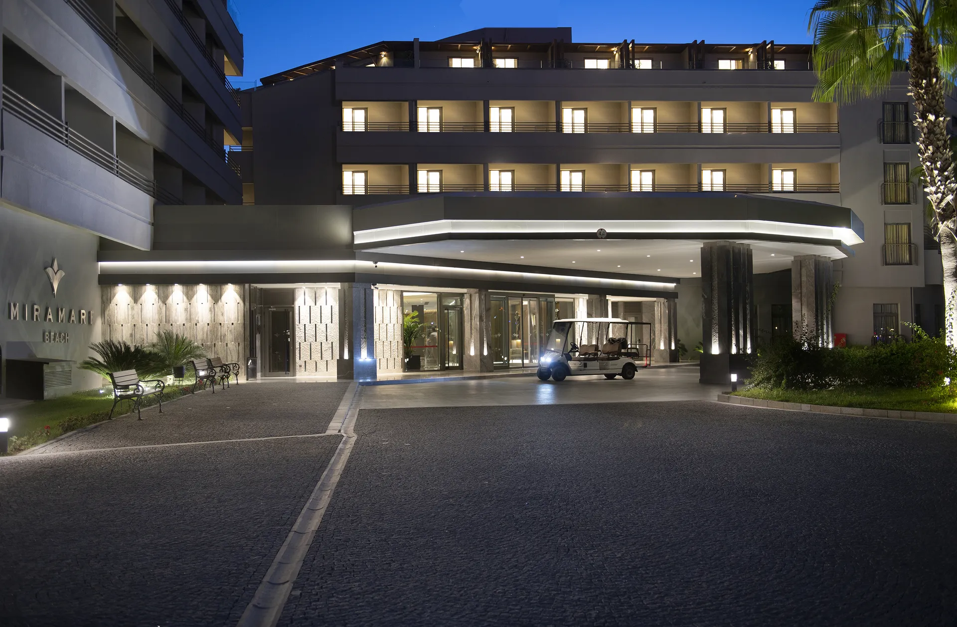 The hotel Miramare Beach Hotel is around 9,8 km from the city centre. There is a shuttle between the hotel and the airport (for a fee). On the beach are sun umbrellas available. The seasonally air-conditioned hotel is equipped with a 24h reception (check-in is possible around the clock), a lobby, internet access, a lift, a boutique, a hairdresser, a first aid kit, parking spaces as well as a TV lounge with satellite TV. Outside there is a children's pool. Furthermore, you can relax outdoors in the garden. Inside the hotel you can use an indoor pool. For the young hotel guests there is a playground. You can store your luggage in the hotel's storage room. There is also a laundry service available at an additional cost to customers. Ironing equipment can be borrowed at the hotel. For your comfort the hotel page will ensure you are looked after. The energy supply is 220 Volts. If you want to explore the holiday region, you can use the car and motorbike rental service close to the hotel (extra fee). Due to its barrier-free facilities , such as barrier-free entrances and wheelchair accessible rooms, the hotel is also suitable for wheelchair users. Distances