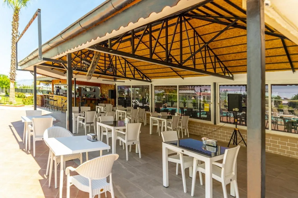 Descriere generală Hotelul New Garden Luna Side Apart Hotel este locat la cca. 900 m de o plajă privată cu nisip/pietriș. Pe plajă sunt disponibile gratuit șezlonguri și umbrele de soare. Orașul Manavgat este la aprox. 6 km. În apropierea hotelului se află un supermarket. De asemenea, există o discotecă la mică distanță de hotel. Aveți la dispoziție o stație de taxi (cca. 50 m) cea ce vă oferă mobilitate în timpul vacanței. Pentru îngrijiri medicale în caz de urgență, există un spital la cca. 6 km distanță. Aeroportul (AYT) se află la aprox. 64 km. Un alt aeroport (GZP) este la cca. 108 km. Până la cea mai apropiată plajă există un serviciu de transfer (graduit). Facilități Încântătorul hotel, care a fost renovat parțial în 2020, dispune de peste 64 camere. Acesta oferă oaspeților săi recepție deschisă 24h (check-in de la 14:00, check out până la 12:00) și lobby. Accesul la internet WiFi poate fi utilizat de oaspeții hotelului contra cost. Serviciul de menaj este gratuit. Spălătorie, călcat și serviciul medical sunt disponibile la un cost suplimentar. Piscină În grădinile acestui hotelul există o piscină cu apă dulce precum și o piscină pentru copii. La piscină sunt disponibile gratuit șezlonguri și umbrele de soare. La barul piscinei va puteți bucura de o băutura răcoritoare (deschis între orele 10:00 - 00:00). Catering Mic dejun (între orele 07:00 - 10:00) bufet suedez. Sport/Leisure Este disponibil: Darts (posibil contra cost). Oferte de wellness: Masaje contra cost. Divertisment pentru adulți: spectacole de seară. Informații suplimentare Pentru anumite facilități sau activități se pot aplica taxe suplimentare. Unele servicii depind de anotimp și de condițiile climatice locale. Limbi de serviciu: engleză, germană, rusă și turcă. Carduri de credit: Visa și Euro/MasterCard. Standard Familienzimmer: Dotate cu parchet laminat, minibar (contra cost), acces la internet (contra cost), seif (contra cost) și TV prin satelit precum și aer condiționat reglabil individual (contra cost). Baie cu duș. Prosoapele se schimbă de 3 ori pe săptămână, lenjeria de pat de 2 ori pe săptămână. Doppel Standard Zimmer: Cameră cu parchet laminat, minibar (contra cost), acces la internet (contra cost), seif (contra cost) și TV prin satelit precum și aer condiționat reglabil individual (contra cost). Baie cu duș. Prosoapele se schimbă de 3 ori pe săptămână, lenjeria de pat de 2 ori pe săptămână. Dimensiune: 14 - 20 m². Studio: Dotate cu parchet laminat, minibar (contra cost), acces la internet (contra cost), seif (contra cost) și TV prin satelit precum și aer condiționat reglabil individual (contra cost). Baie cu duș. Prosoapele se schimbă de 3 ori pe săptămână, lenjeria de pat de 2 ori pe săptămână.