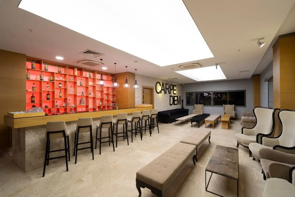 Dotari camere: baie proprie cu dus, TV, telefon, minibar (alimentat zilnic cu apa), seif (contra cost), aer condiționat, uscator de par, balcon.