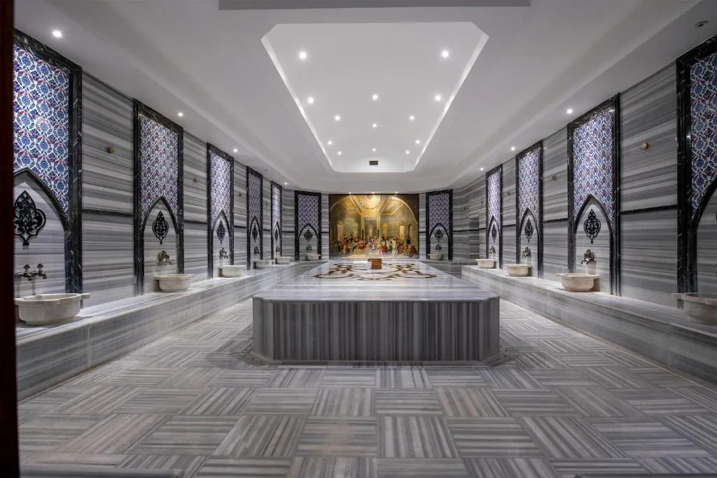 un restaurant principal pentru servire mic dejun,mic dejun tarziu, pranz si cina, gustare tarzie, mini bar, gustari in timpul zilei, inghetata, placinte turcesti, o data pe sejur la unul din restaurantele a la carte ( otoman si asiatic), bauturi alcoolice si nealcoolice locale si unele de import, Wifi in camere si in zonele comune, centru fitness, baie turceasca, sauna, baie cu aburi, tenis de masa, darts, aerobic, animatie si spectacole pentru copii si adulti, miniclub si facilitati pentru copii, beach party, seri tematce, restaurant pentru copii, tobogane, carucior pentru copii disponibil cu depozit, loc de joaca pentru copii