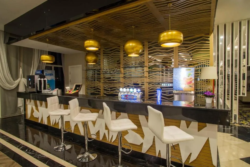 Dotari camere: baie proprie cu duş, TV, telefon, minibar (alimentat zilnic cu apa), conexiune internet, seif (contra cost), aer condiționat, uscator de par, balcon.