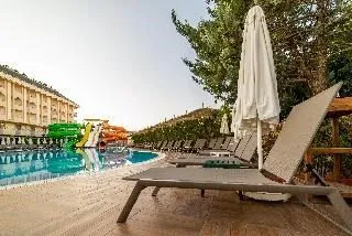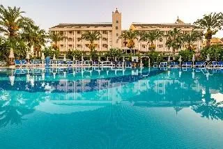 This modern, family-friendly holiday hotel offers an outdoor pool with slides, various sports facilities and fitness amenities. In addition, there is a football center. The wide sandy beach can be reached in less than 5 minutes, the shops and restaurants of Kumköy are within a short walk. The historic town of Side with its ancient sites such as the spectacular Temple of Apollo is just a short drive away.