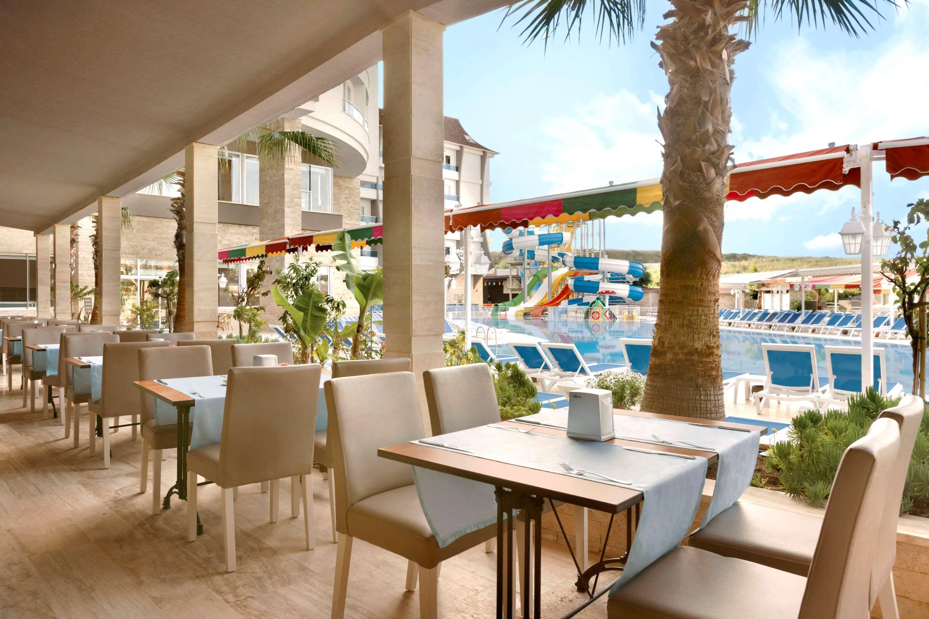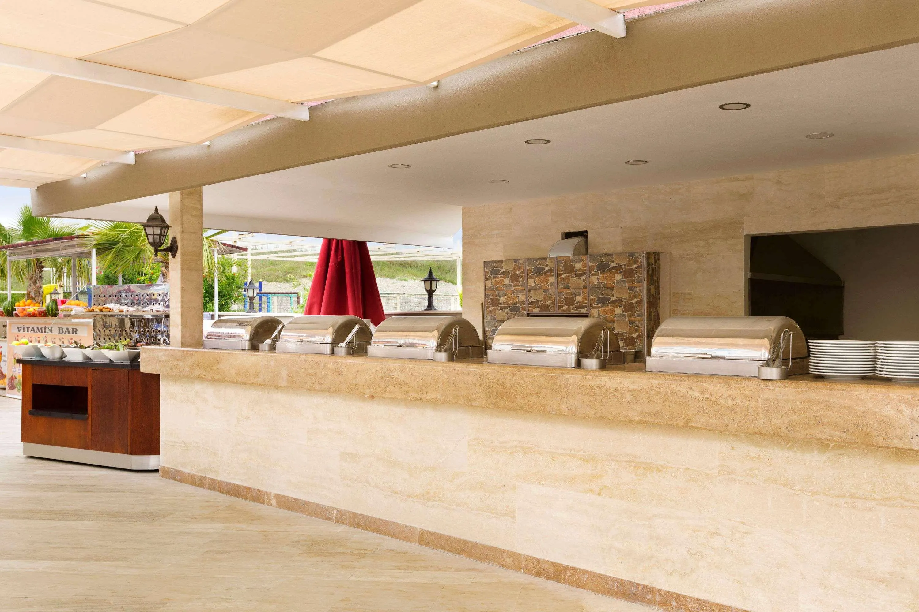 Located in Side, Ramada Resort Side is a perfect starting point from which to explore Manavgat. Featuring a complete list of amenities, guests will find their stay at the property a comfortable one. All the necessary facilities, including 24-hour room service, free Wi-Fi in all rooms, 24-hour security, convenience store, infirmary, are at hand. All rooms are designed and decorated to make guests feel right at home, and some rooms come with television LCD/plasma screen, bathroom phone, cleaning products, clothes rack, free welcome drink. The hotel's peaceful atmosphere extends to its recreational facilities which include canoe, dart board, watersports equipment rentals, wind surfing, surfing lessons. Ramada Resort Side is an excellent choice from which to explore Manavgat or to simply relax and rejuvenate. Location:2013 Year of construction; 2015 Year of most recent renovation; 295 Total number of rooms; 5 Number of floors (main building); 5 Number of floors (annexe); 188 Double rooms; 60 Superior rooms; 43 Family rooms Hotel type:hotel Methods of payment:MasterCard; Visa; Maestro Distances (in meters):City centre (14000); Bus/Train station (15000); Nearest Bus / Metro Stop (15); Beach (500); Golf course (44500); Entertainment Area (14000) Room facilities (Standard room):Disability-friendly bathroom; Hairdryer; Make-up mirror; Internet access; Direct dial telephone; 220V power supply; Minibar; Tea and coffee making facilities ; Individually adjustable air conditioning; Safe; Smoking rooms; Smoke detector; Housekeeping; Extra beds on demand; Cot on demand Facilities:Wheelchair-accessible; Car park (Extra Fee); 24-hour reception; Check-in hour; Check-out hour; Late Check-out (Extra Fee); Wi-fi (Extra Fee); Car hire (Extra Fee); Valet parking (Extra Fee); Airport Shuttle (Extra Fee); Room service (Extra Fee); Laundry service (Extra Fee); Medical service (Extra Fee); Bicycle hire service (Extra Fee); Day-care centre; Babysitting service (Extra Fee); Multilingual staff; 24-hour security; Bellboy service; Air conditioning in public areas; Smoke detector; Hotel safe; Currency exchange facilities (Extra Fee); Cloakroom; Lift access; Shop (Extra Fee); Garden (Extra Fee); Terrace; Concierge; Gym; Luggage room; Dining area; BBQ facilities; Grill/BBQ; Private beach area; Library Catering:Café; Bar; 3 Restaurant; Non-smoking area; Smoking area; Highchairs; Poolside snack bar; Banquet hall; Air conditioning in Restaurant Business:Conference room Entertainment:1 Outdoor freshwater pool; 1 Children’s swimming area; Sun loungers; Parasols; WaterSlides; Children playground; Kids’ club; Entertainment programme for adults; Entertainment programme for children; Game room (Extra Fee); Nightclub Health:Sauna; Steam bath; Turkish bath (hamam); Massage (Extra Fee); Spa treatments (Extra Fee); Hairdressing salon (Extra Fee); Beauty salon (Extra Fee); Spa centre (Extra Fee)
