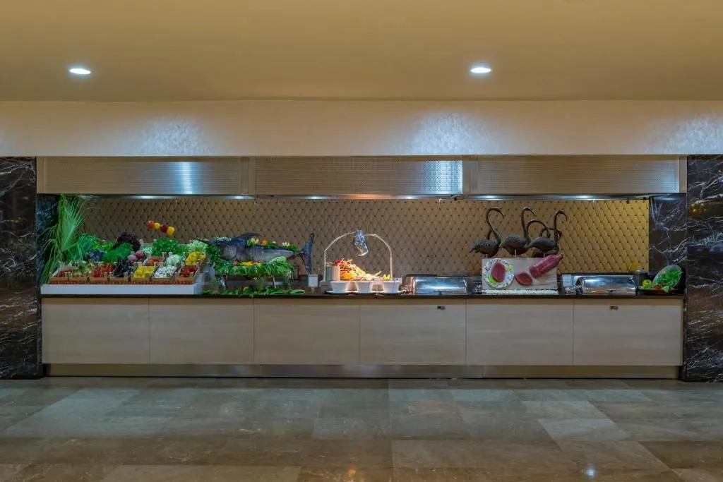 Restaurant principal – ”Alhambra”, 5 restaurante a la carte cu specific: italian – ”Fettucini”, mexican– ”La viva fiesta”, asiatic – ”Miyako”, turcesc – ”Kuzine” și pescăresc – ”Captain”; Patiserie, Moonlight Snack Restaurant; Bistro; Lobby Bar, Pool Bar, Moonlight Beach Bar, Amphi Bar, Energy Disco Bar, Piano Lobby Bar, Bowling Bar.