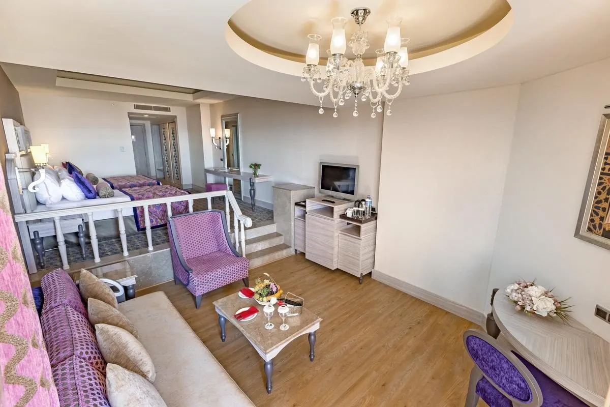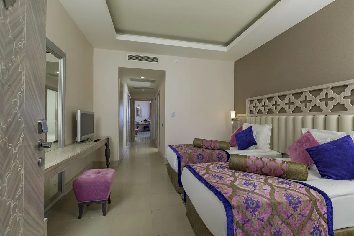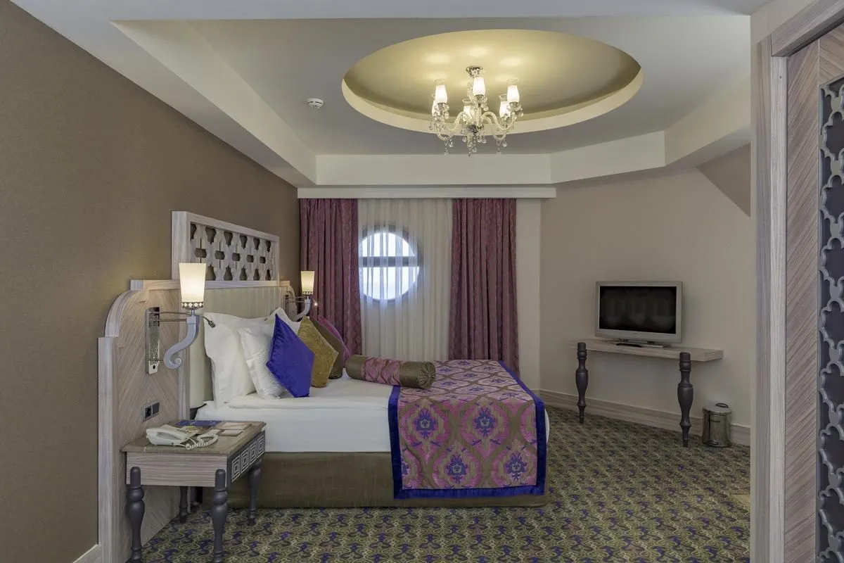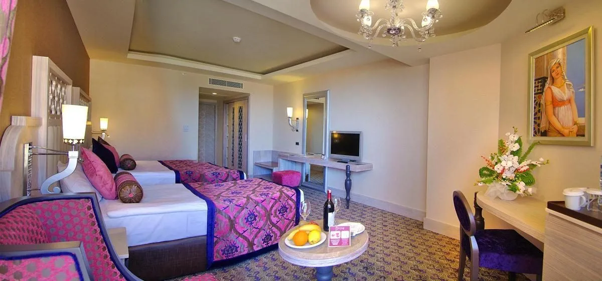 Descriere generală Hotelul Royal Alhambra Palace este situat in Colakli, direct pe o plajă privată cu nisip. Pe plajă sunt disponibile gratuit șezlonguri și umbrele de soare. Orașul Manavgat este la aprox. 14 km (Antalya cca. 55 km). Diverse magazine se află la aprox. 5 km de hotel. Hotelul dispune de serviciu de rentacar. Aeroportul (AYT) se află la aprox. 53 km. Un alt aeroport (GZP) este la cca. 118 km. Facilități Hotelul de design dispune de 6 etaje și peste 579 camere. Acesta oferă oaspeților săi recepție deschisă 24h (check-in de la 14:00, check out până la 12:00), lobby cu bar, un total de 10 lifturi, aer condiționat, seif (gratuit), minimarket, alte magazine și discotecă. Accesul la internet WiFi este disponibil gratuit pentru oaspeții hotelului. Pentru evenimente de afaceri, hotelul oferă o zonă de conferințe. Serviciul de menaj este gratuit. Room service, spălătorie, călcat și serviciul medical sunt disponibile la un cost suplimentar. Piscină În grădinile acestui hotelul există o piscină precum și o piscină pentru copii și un tobogan de apă. Acolo sunt disponibile gratuit șezlonguri și umbrele de soare. Un bar lângă piscină oferă oaspeților băuturi răcoritoare. Catering Mic dejun (între orele 07:00 - 10:00) bufet suedez. All Inclusive Plus: micul dejun, prânzul și cina. Micul dejun, prânzul și cina pot fi servite numai în anumite restaurante. În plus băuturi răcoritoare (10:00 - 00:00), cafea, ceai (10:00 - 00:00), aperitive (12:30 - 15:00), băuturi alcoolice naționale (10:00 - 00:00) și gustări la miezul nopții (00:00 - 07:00). Mic dejun târziu, apă, bere, vin, băuturi alcoolice internaționale și prăjituri și produse de patiserie. Internet gratuit, utilizarea gratuită a seifului (în baza unei garanții) și minibar gratuit (limitat). Sport/Leisure Oferte pentru sport și divertisment: Aerobic, fitness, biliard (contra cost), tenis de masă (gratuit), minigolf, volei pe plajă și darts (gratuit). Oferte de wellness: Saună, jacuzzi, baie turcească și hamam gratuite. Zonă de spa și masaje contra cost. Divertisment pentru adulți: spectacole de seară și muzică live. Copiii vor găsi un loc de joacă în exteriorul hotelului. Îngrijirea copiilor: program de animație pentru copii (de la 4 - 12 ani) și mini club pentru copii (de la 4 - 12 ani). Sală de jocuri. Informații suplimentare Pentru anumite facilități sau activități se pot aplica taxe suplimentare. Unele servicii depind de anotimp și de condițiile climatice locale. Limbi de serviciu: engleză, germană și turcă. Carduri de credit: Euro/MasterCard și Visa. Familienzimmer (Landschaftsblick): Cameră cu pat pentru bebeluși (gratuit), mochetă, încălzire controlată centralizat, ceainic (gratuit), minibar (gratuit), seif (gratuit), TV prin satelit și canale locale precum și aer condiționat controlat central. Familienzimmer (Meerblick): Cameră cu pat pentru bebeluși (gratuit), mochetă, încălzire controlată centralizat, ceainic (gratuit), minibar (gratuit), seif (gratuit), TV prin satelit și canale locale precum și aer condiționat controlat central. Duplex Standard Familienzimmer: Cameră cu pat pentru bebeluși (gratuit), mochetă, încălzire controlată centralizat, ceainic (gratuit), minibar (gratuit), seif (gratuit), TV prin satelit și canale locale precum și aer condiționat controlat central. Duplex Standard Familienzimmer (Meerblick): Dotate cu pat pentru bebeluși (gratuit), mochetă, încălzire controlată centralizat, ceainic (gratuit), minibar (gratuit), seif (gratuit), TV prin satelit și canale locale precum și aer condiționat controlat central. Standard JuniorSuite: Cameră cu pat pentru bebeluși (gratuit), mochetă, încălzire controlată centralizat, ceainic (gratuit), minibar (gratuit), seif (gratuit), TV prin satelit și canale locale precum și aer condiționat controlat central. Doppel Superior Zimmer (Landschaftsblick): Cameră cu pat pentru bebeluși (gratuit), mochetă, încălzire controlată centralizat, ceainic (gratuit), minibar (gratuit), seif (gratuit), TV prin satelit și canale locale precum și aer condiționat controlat central. Dimensiune: 40 - 46 m². Doppel Superior Zimmer (Seitlicher Meerblick): Cameră cu pat pentru bebeluși (gratuit), mochetă, încălzire controlată centralizat, ceainic (gratuit), minibar (gratuit), seif (gratuit), TV prin satelit și canale locale precum și aer condiționat controlat central. Doppel Superior Zimmer (Meerblick): Cameră cu pat pentru bebeluși (gratuit), mochetă, încălzire controlată centralizat, ceainic (gratuit), minibar (gratuit), seif (gratuit), TV prin satelit și canale locale precum și aer condiționat controlat central. Einzelbelegung Superior Zimmer (Landschaftsblick): Dotate cu pat pentru bebeluși (gratuit), mochetă, încălzire controlată centralizat, ceainic (gratuit), minibar (gratuit), seif (gratuit), TV prin satelit și canale locale precum și aer condiționat controlat central. Einzelbelegung Superior Zimmer (Seitlicher Meerblick): Cameră cu pat pentru bebeluși (gratuit), mochetă, încălzire controlată centralizat, ceainic (gratuit), minibar (gratuit), seif (gratuit), TV prin satelit și canale locale precum și aer condiționat controlat central. Einzelbelegung Superior Zimmer (Meerblick): Cameră cu pat pentru bebeluși (gratuit), mochetă, încălzire controlată centralizat, ceainic (gratuit), minibar (gratuit), seif (gratuit), TV prin satelit și canale locale precum și aer condiționat controlat central.