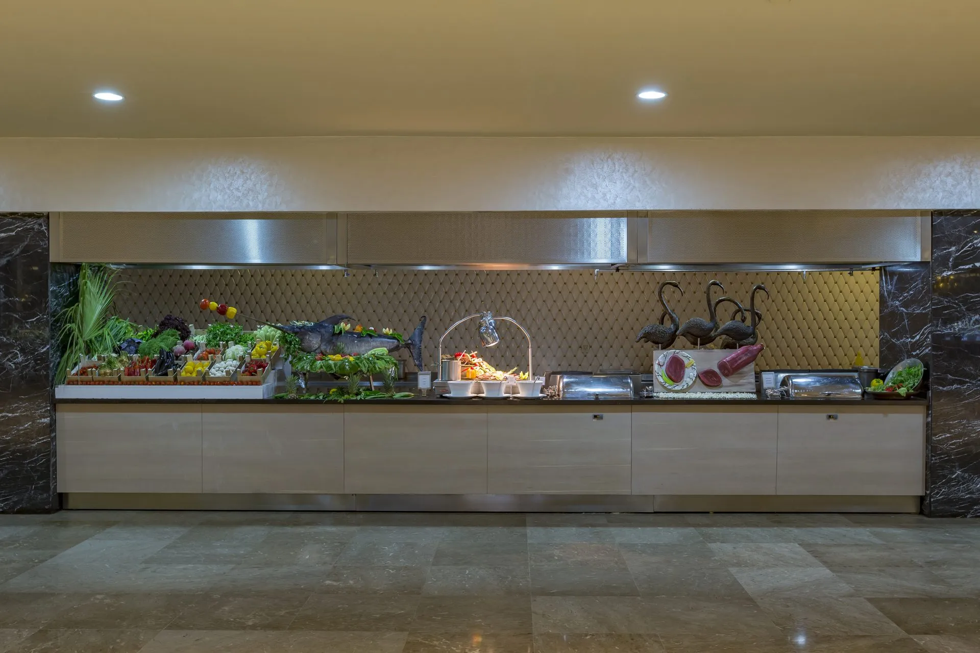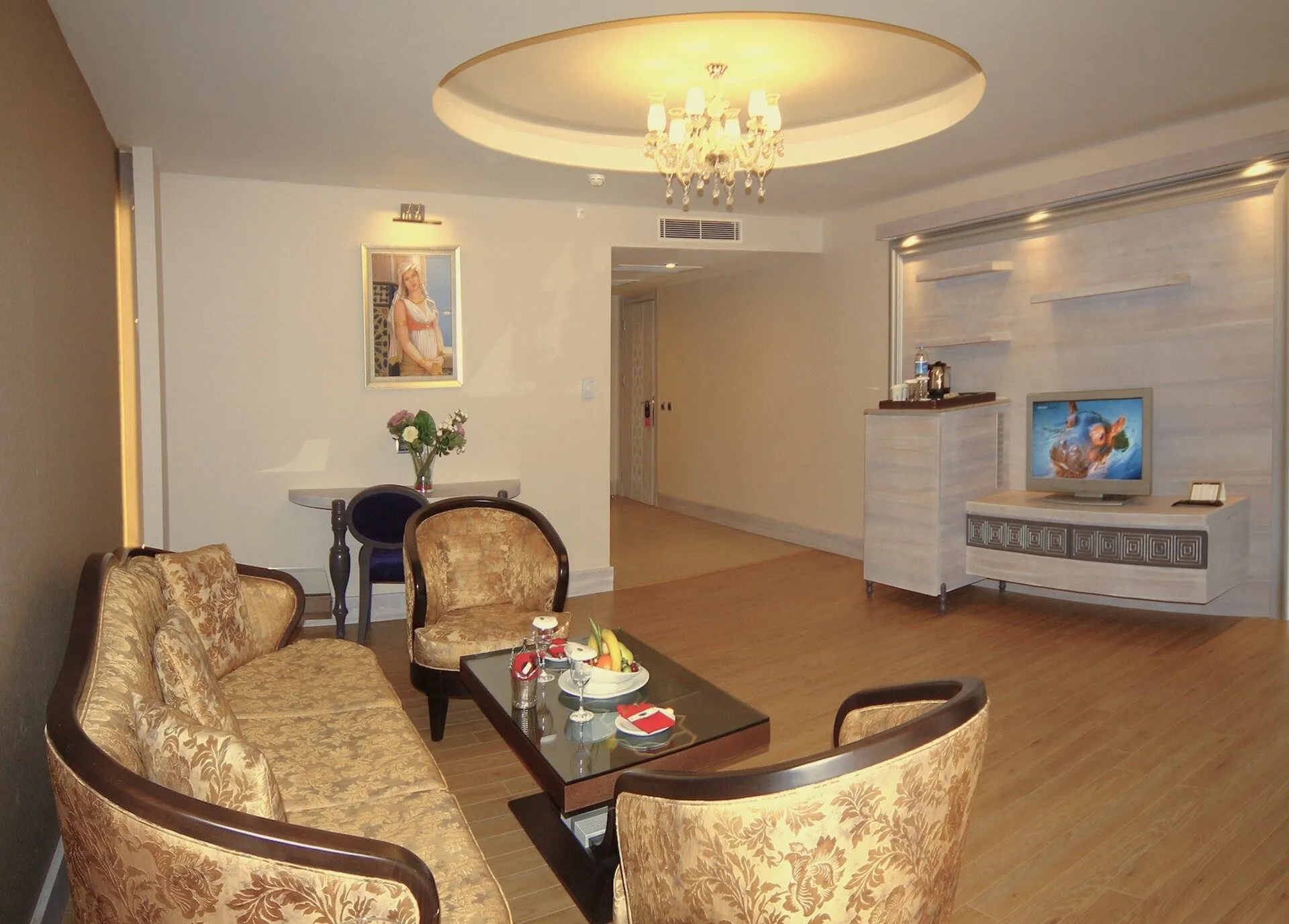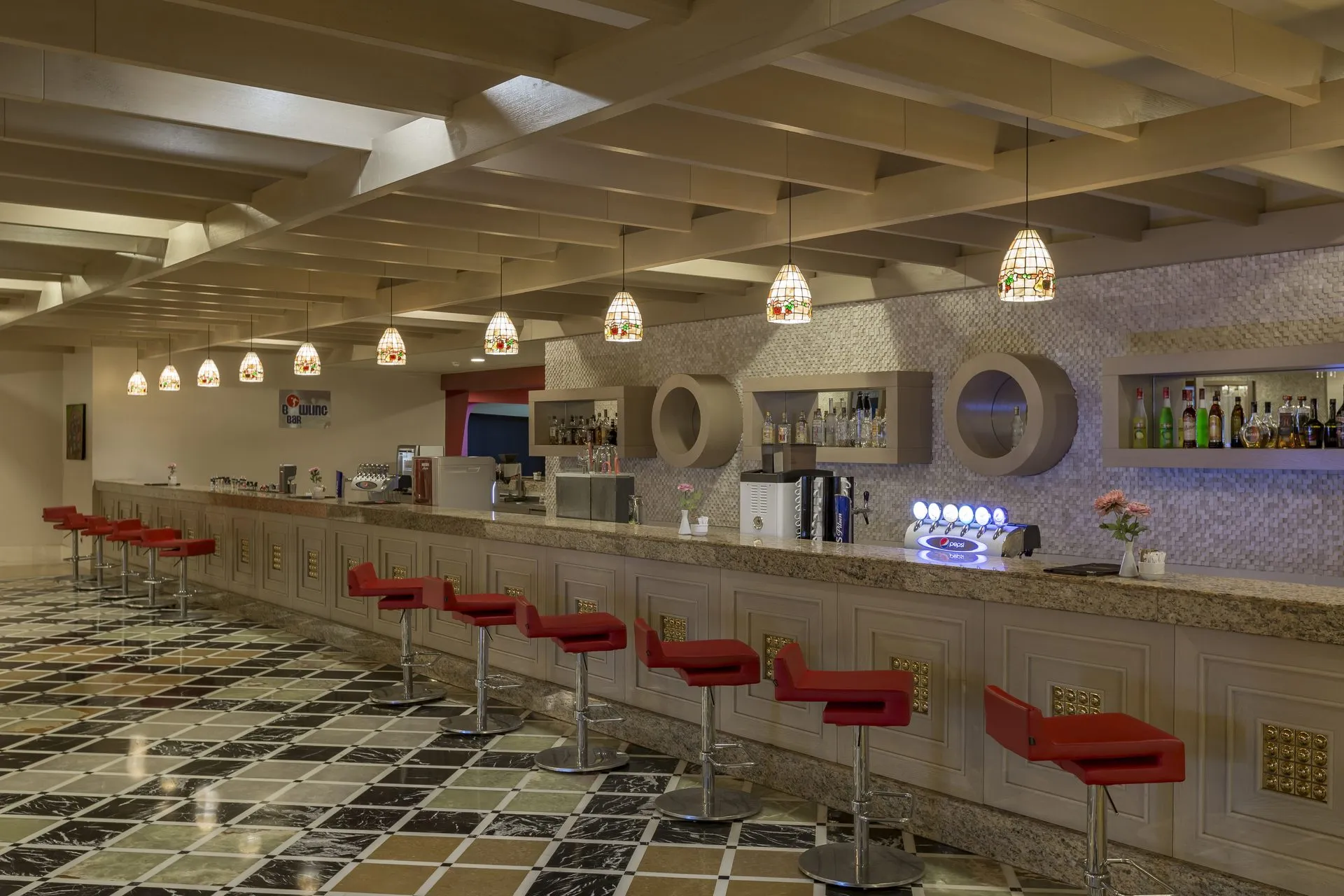 The hotel Royal Alhambra Palace is located approximately 300 m from the private beach. The city centre is around 14 km away. The nearest shops you can reach within around 9 km, a supermarket is around 750 m away. On the beach are beach towels for a fee as well as cushions and sun umbrellas available. At the beach there is a bar serving refreshing drinks. The hotel has a 24h reception, a lobby bar, Wi-Fi (for a fee), a lift, a shop as well as a hairdresser. In the outdoor area of the property you will find a pool that is open seasonally, where sun loungers and sun umbrellas are available for free. For children there is also a children's pool with 8 water slides. For your entertainment, the hotel offers a disco. There is also a laundry service available at an additional cost to customers. If necessary, you can contact the medical centre (for a fee). If you want to explore the holiday region, you can use the car rental service close to the hotel (extra fee). Catering Breakfast is offered from the buffet. Lunch and dinner are also served from the buffet. When booking all-inclusive, - for an extra fee - one meal in the à la carte restaurant is included. Your physical well-being is catered for by a restaurant (calorie-reduced dishes) and the pool bar. Appropriate clothing is required for lunch and dinner. Distances