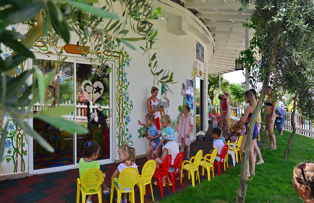 Mini club (pentru copiii cu vârsta cuprinsă între 4-12 ani), spaţiu de joacă în aer liber, baby sitter (contra cost), meniu şi scaune în restaurant, piscină exterioară, piscină interioară, tobogane acvatice, pătuţ (la cerere), mini disco.