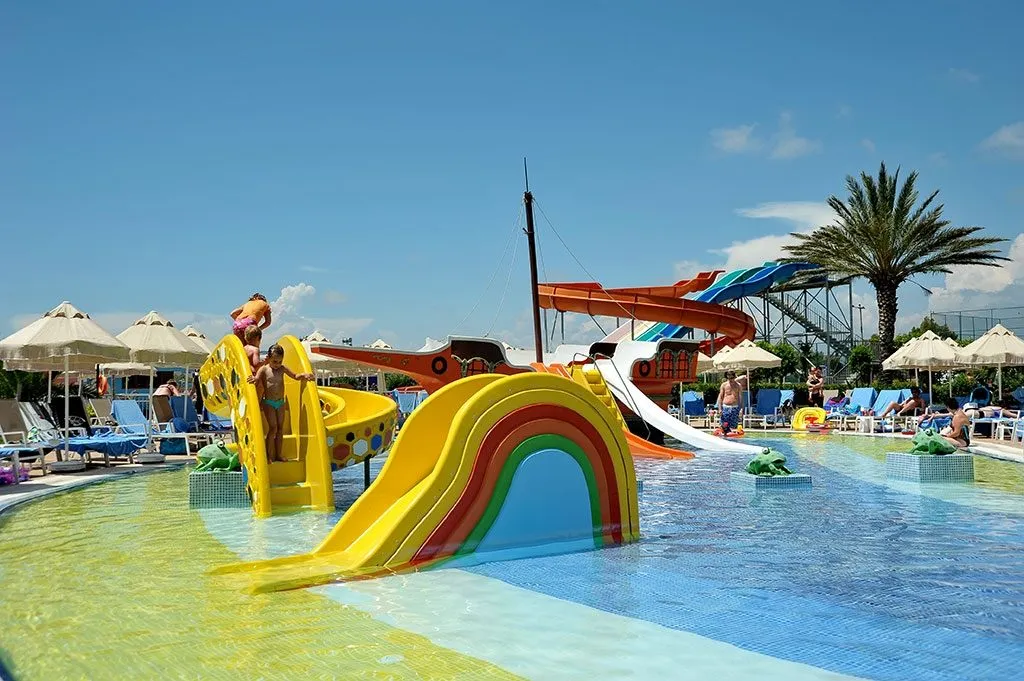 Located on Kizilagac Beach, this lively and all-inclusive resort is 9 km from Manavgat River and 18 km from Manavgat Waterfall. The 528 simple rooms have free WiFi, a flat-screen TV, mini fridge and tea / coffee makers. Some rooms also have a balcony with sea views. Room service is available. Meals, drinks and beach supplies are free of charge. There are 5 restaurants and 6 bars, one serving Italian and one serving Asian flavors. Other facilities include a nightclub, grocery store, water park, gym and children's club. The spa includes a hammam. Facilities for tennis, billiards and water sports are also available.