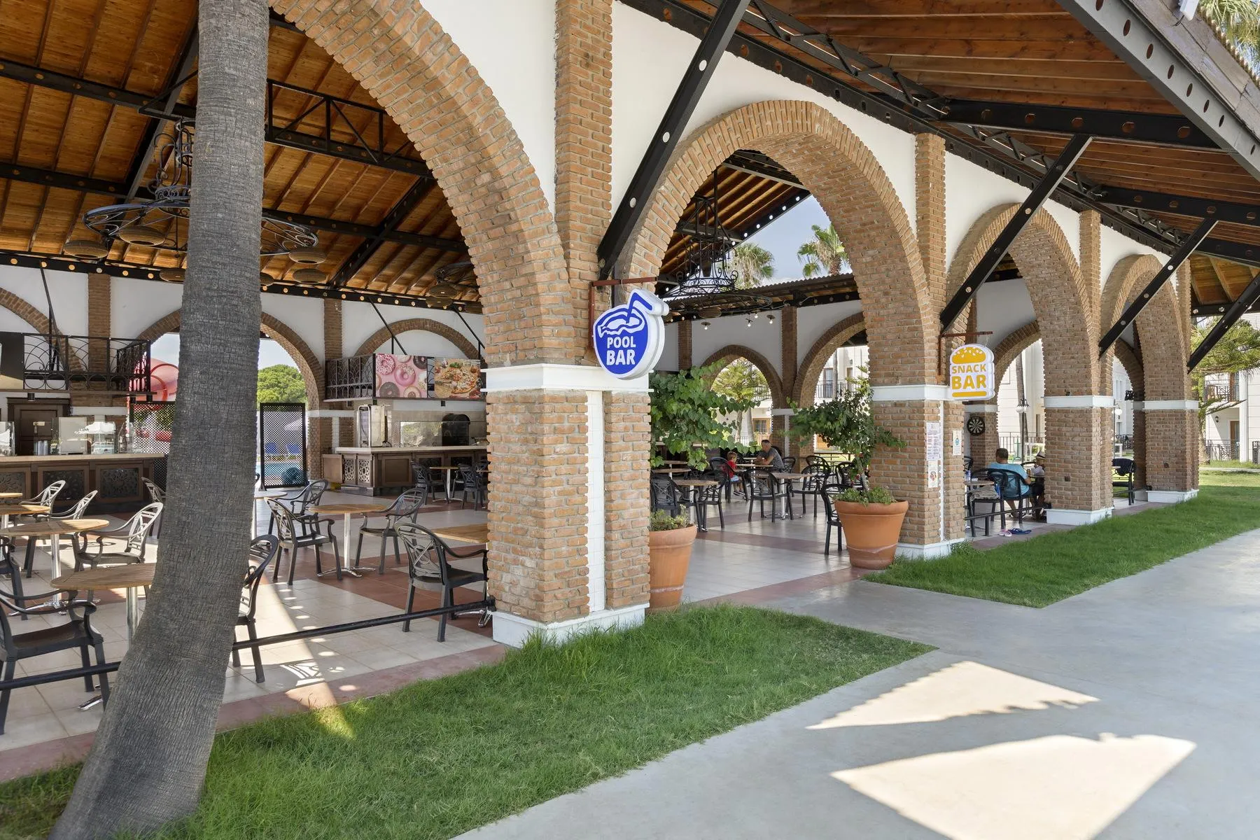 It offers its guests a 24h reception (check-in from 14:00, check-out until 12:00), a lobby with bar, a lift, air conditioning, coiffeur, a mini market, various other shops, discotheque and a security entry system. For the meals, there is a snack bar (open from 12:00 - 16:00). In a total 6 bars, you can relax in good company. WiFi is available for free. For guests with physical disabilities the accommodation provides a barrier-free access. Room cleaning is free of charge. Laundry / ironing service and medical service are available for a fee. Pool: In the outdoor area of the hotel you will find 2 fresh water pools with a separate children´s pool (open from April to November). Here, there are sun umbrellas and sun loungers for free available. At the pool bar you can get refreshing beverages (open from 10:00 - 18:00).