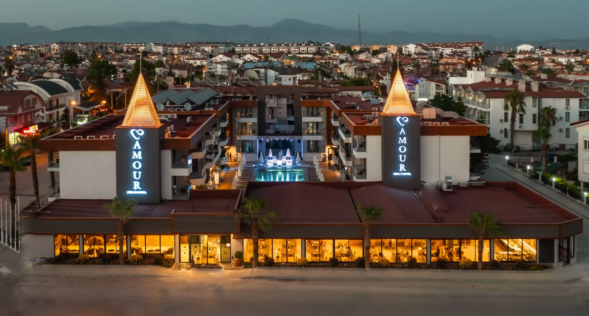 The hotel SIDE AMOUR HOTEL is located approximately 1 km from a beach. The city centre is around 4 km away. There is a shuttle between the hotel and the airport (for a fee). The seasonally air-conditioned hotel has a 24h reception (check-in is possible around the clock), a lobby, internet access, a lift, a boutique, a hairdresser, a first aid kit, parking spaces as well as a TV lounge with satellite TV. Outside there is a children's pool. Furthermore, you can relax outdoors in the garden. Inside the hotel you can use an indoor pool. For your entertainment, the hotel offers a disco. For the young hotel guests there is a playground. You can store your luggage in the hotel's storage room. There is also a laundry service available at an additional cost to customers. Ironing equipment can be borrowed at the hotel. For your comfort the hotel page will ensure you are looked after. The energy supply is 220 Volts. If you want to explore the holiday region, you can use the car and motorbike rental service close to the hotel (extra fee). Due to its barrier-free facilities , such as barrier-free entrances and wheelchair accessible rooms, the hotel is also suitable for wheelchair users. Distances