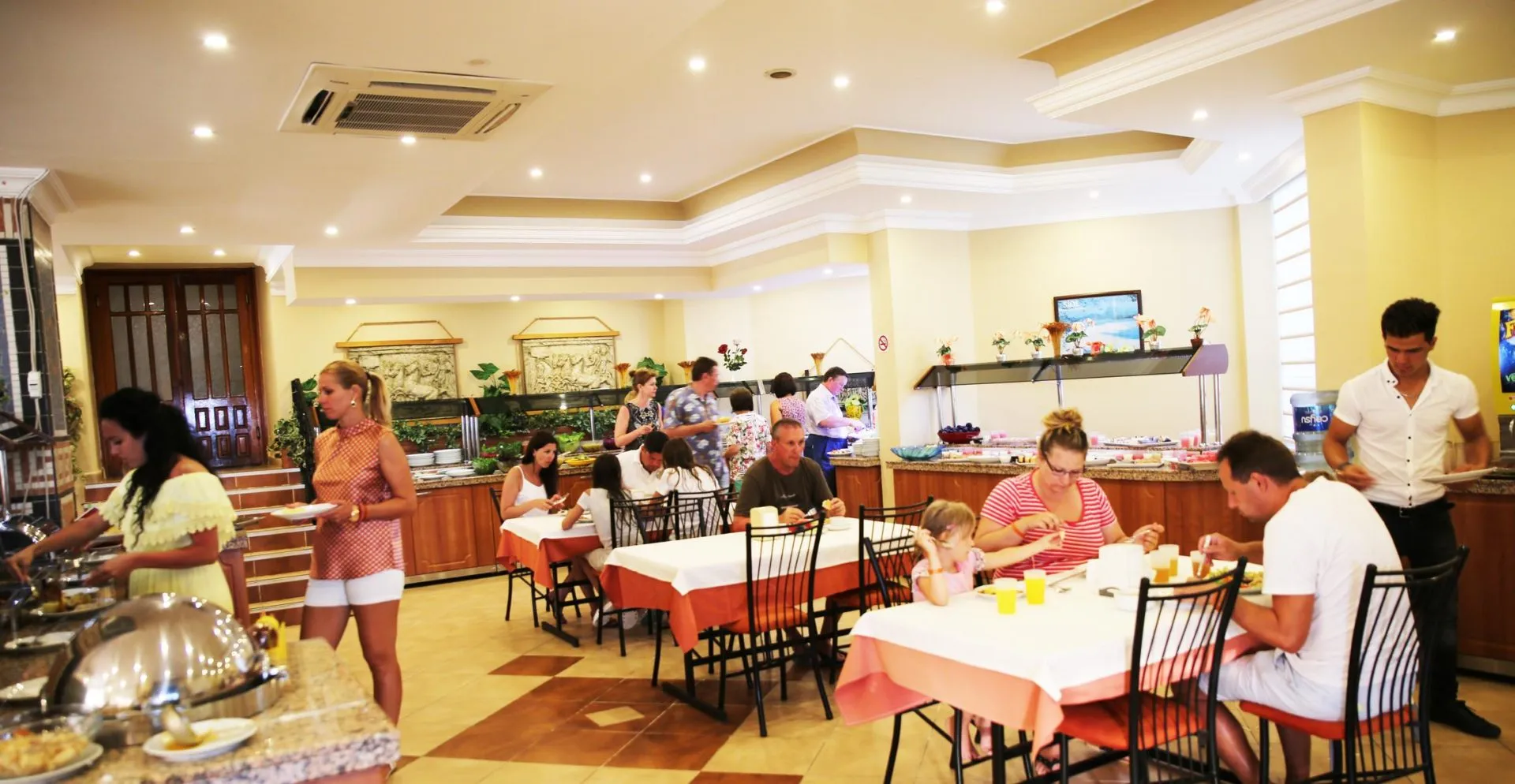 Descriere generală La cca. 350 m de o plajă cu nisip veți găsi hotelul Side Kervan Hotel. Pe plajă sunt disponibile gratuit șezlonguri și umbrele de soare. Orașul Manavgat este la aprox. 8 km (Antalya cca. 80 km). Magazinele sunt la aprox. 350 m de hotel, și un supermarket este la cca. 300 m. De asemenea, cele mai apropiate baruri și restaurante sunt la cca. 300 m. O discotecă aflată la aprox. 800 m vă invită la dans. De asemenea, la cca. 8 km de hotel este un cinematograf. Următoarele atracții pot fi accesate de la hotel: Museum (cca. 900 m). Locul de cazare are la dispoziție mașini de închiriat. De asemenea, aveți în apropiere o stație de autobuz (cca. 100 m) și o stație de taxi (cca. 50 m) cea ce vă garantează mobilitatea în vacanță. Pentru îngrijiri medicale în caz de urgență, există un spital la cca. 2 km distanță. Aeroportul (AYT) se află la aprox. 64 km. Un alt aeroport (GZP) este la cca. 108 km. Până la cea mai apropiată plajă există un serviciu de transfer (graduit). Facilități Încântătorul hotel dispune de 4 etaje și peste 60 camere. Acesta oferă oaspeților săi recepție deschisă 24h (check-in de la 14:00, check out până la 12:00), lobby și aer condiționat. Pentru a satisface apetitul vă stau la dispoziție un snackbar. Serviciul de menaj este gratuit. Room service și serviciul medical sunt disponibile la un cost suplimentar. Piscină Zona exterioară a hotelului include o piscină cu apă dulce precum și o piscină pentru copii integrată în piscina principală. Acolo sunt disponibile gratuit șezlonguri și umbrele de soare. Catering Mic dejun (între orele 08:00 - 10:00) bufet suedez. All Inclusive: micul dejun, prânzul și cina. Micul dejun, prânzul și cina pot fi servite numai în anumite restaurante. Apă. Băuturi răcoritoare (10:00 - 22:00), cafea și ceai (10:00 - 22:00), prăjituri și produse de patiserie (16:00 - 17:00), bere (10:00 - 22:00), vin (10:00 - 22:00) și băuturi alcoolice naționale (10:00 - 22:00). Sport/Leisure Oferte pentru sport și divertisment: Darts (gratuit) și biliard (contra cost). Oferte de wellness: Saună, hamam și masaje contra cost. Informații suplimentare Pentru anumite facilități sau activități se pot aplica taxe suplimentare. Unele servicii depind de anotimp și de condițiile climatice locale. Limbi de serviciu: engleză, germană și turcă. Carduri de credit: Visa și Euro/MasterCard. Doppel Standard Zimmer (Balkon Promotion): Dotate cu pat pentru bebeluși (gratuit), minibar (contra cost), seif (contra cost) și TV cu ecran plat prin satelit precum și aer condiționat reglabil individual. Baie cu duș. Prosoapele se schimbă zilnic. Doppel Standard Zimmer (Poolblick): Dotate cu pat pentru bebeluși (gratuit), minibar (contra cost), seif (contra cost) și TV cu ecran plat prin satelit precum și aer condiționat reglabil individual. Baie cu duș. Prosoapele se schimbă zilnic. Doppel Standard Zimmer (Meerseite, Balkon): Dotate cu pat pentru bebeluși (gratuit), minibar (contra cost), seif (contra cost) și TV cu ecran plat prin satelit precum și aer condiționat reglabil individual. Baie cu duș. Prosoapele se schimbă zilnic. Einzelbelegung Standard Zimmer (Balkon Promotion): Cameră cu pat pentru bebeluși (gratuit), minibar (contra cost), seif (contra cost) și TV cu ecran plat prin satelit precum și aer condiționat reglabil individual. Baie cu duș. Prosoapele se schimbă zilnic. Einzelbelegung Standard Zimmer (Poolblick): Dotate cu pat pentru bebeluși (gratuit), minibar (contra cost), seif (contra cost) și TV cu ecran plat prin satelit precum și aer condiționat reglabil individual. Baie cu duș. Prosoapele se schimbă zilnic. Einzelbelegung Standard Zimmer (Meerseite, Balkon): Cameră cu pat pentru bebeluși (gratuit), minibar (contra cost), seif (contra cost) și TV cu ecran plat prin satelit precum și aer condiționat reglabil individual. Baie cu duș. Prosoapele se schimbă zilnic.