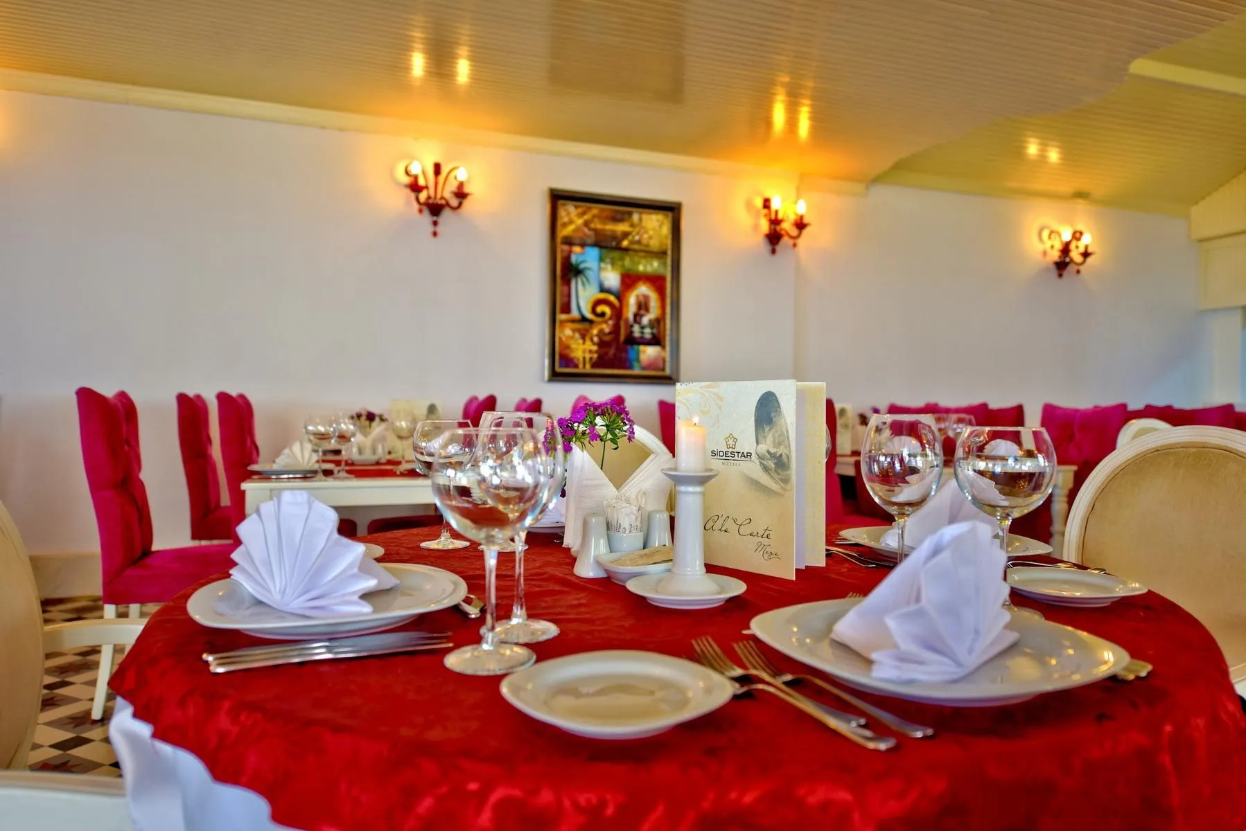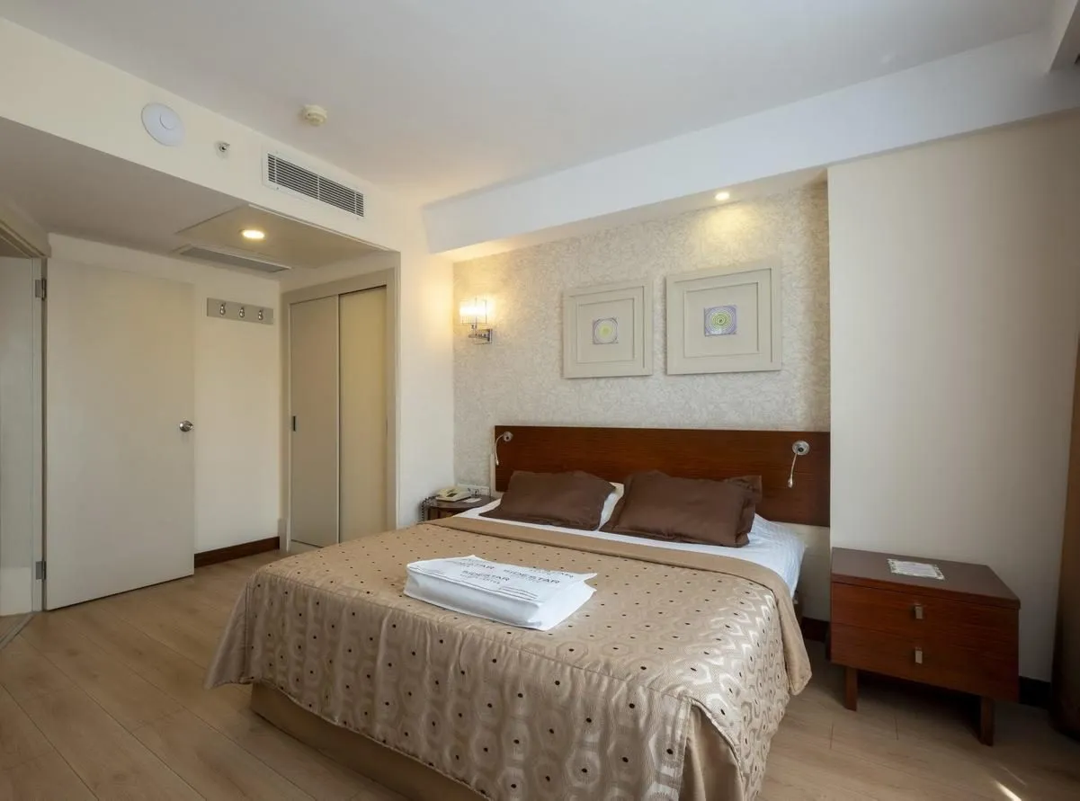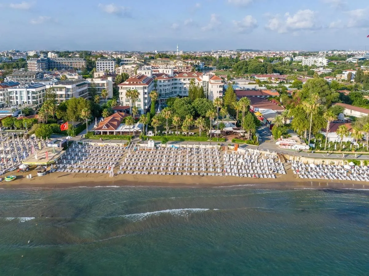 Descriere generală La doar câțiva pași de o plajă privată cu nisip se găsește hotelul Side Star Beach. Pe plajă sunt disponibile gratuit șezlonguri și umbrele de soare. Orașul Antalya este la aprox. 70 km. Locul de cazare are la dispoziție mașini de închiriat. Aeroportul (AYT) se află la aprox. 60 km. Un alt aeroport (GZP) este la cca. 108 km. Facilități Încântătorul hotel dispune de 4 etaje și peste 266 camere. Acesta oferă oaspeților săi recepție deschisă 24h (check-in de la 14:00, check out până la 12:00), lobby cu bar, 3 lifturi, aer condiționat, magazin, parcare (gratuită) și birou de schimb valutar. Pentru a servi masa aveți la dispoziție un snackbar. Accesul la internet WiFi este disponibil gratuit pentru oaspeții hotelului. În plus, hotelul oferă o zonă de conferințe. Serviciul de menaj este gratuit. Room service, spălătorie, călcat și serviciul medical sunt disponibile la un cost suplimentar. Piscină În grădinile acestui hotelul există o piscină precum și o piscină pentru copii și un tobogan de apă. La piscină sunt disponibile gratuit șezlonguri și umbrele de soare. La barul piscinei va puteți bucura de o băutura răcoritoare. Catering Mic dejun (între orele 07:00 - 10:00) bufet suedez. All Inclusive: micul dejun, prânzul și cina. Micul dejun, prânzul și cina pot fi servite numai în anumite restaurante. Apă. Mic dejun târziu (între orele 10:00 - 11:00), băuturi răcoritoare (10:00 - 00:00), cafea și ceai (10:00 - 00:00), prăjituri și produse de patiserie (10:30 - 17:00), aperitive (10:00 - 18:00), bere (10:00 - 00:00), vin (10:00 - 00:00), băuturi alcoolice naționale (10:00 - 00:00) și minibar gratuit în cameră (limitat). Sport/Leisure Este disponibil: Darts (gratuit), aerobic, biliard (contra cost), tenis de masă (gratuit) și fitness. Pe plajă puteți practica sporturi nautice precum jet ski (unele de către furnizori locali). Oferte de wellness: Saună, baie turcească și hamam gratuite. Zonă de spa și masaje contra cost. Divertisment pentru adulți: spectacole de seară. Copiii vor găsi un loc de joacă în exteriorul hotelului. Îngrijirea copiilor: mini club pentru copii (de la 4 - 11 ani). Informații suplimentare Pentru anumite facilități sau activități se pot aplica taxe suplimentare. Unele servicii depind de anotimp și de condițiile climatice locale. Limbi de serviciu: engleză, germană și turcă. Carduri de credit: Euro/MasterCard și Visa. 2 Schlafzimmer Standard Familienzimmer: Cameră cu pat pentru bebeluși (gratuit), parchet laminat, ceainic (gratuit), minibar (posibil contra cost), balcon, seif (gratuit), TV prin satelit și canale locale precum și aer condiționat reglabil individual. Baie cu duș. 2 Schlafzimmer Standard Familienzimmer (Meerblick): Dotate cu pat pentru bebeluși (gratuit), parchet laminat, ceainic (gratuit), minibar (posibil contra cost), seif (gratuit), TV prin satelit și canale locale precum și aer condiționat reglabil individual. Baie cu duș. Double JuniorSuite (Meerblick): Dotate cu pat pentru bebeluși (gratuit), parchet laminat, ceainic (gratuit), minibar (posibil contra cost), seif (gratuit), TV prin satelit și canale locale precum și aer condiționat reglabil individual. Baie cu duș. Double Standard Zimmer: Dotate cu pat pentru bebeluși (gratuit), parchet laminat, ceainic (gratuit), minibar (posibil contra cost), balcon, seif (gratuit), TV prin satelit și canale locale precum și aer condiționat reglabil individual. Baie cu duș. Dimensiune: 19 m². Double Standard Zimmer (Meerblick): Cameră cu pat pentru bebeluși (gratuit), parchet laminat, ceainic (gratuit), minibar (posibil contra cost), seif (gratuit), TV prin satelit și canale locale precum și aer condiționat reglabil individual. Baie cu duș. Einzelbelegung Standard Zimmer: Cameră cu pat pentru bebeluși (gratuit), parchet laminat, ceainic (gratuit), minibar (posibil contra cost), balcon, seif (gratuit), TV prin satelit și canale locale precum și aer condiționat reglabil individual. Baie cu duș.