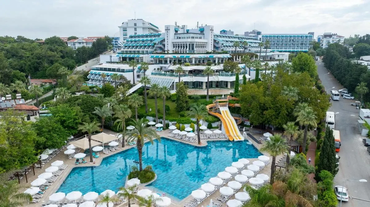 Descriere generală Hotelul Side Star Elegance este situat direct pe o plajă privată cu nisip. Pe plajă sunt disponibile gratuit șezlonguri și umbrele de soare. Orașul Side este la aprox. 3 km (Antalya cca. 81 km). Cele mai apropiate baruri și restaurante sunt la cca. 3 km distanță. O discotecă aflată la aprox. 3 km vă invită la dans. Hotelul dispune de serviciu de rentacar. Aeroportul (AYT) se află la aprox. 64 km. Un alt aeroport (GZP) este la cca. 108 km. Facilități Hotelul familiar dispune de 6 etaje și peste 499 camere repartizate între o clădire principală și de 2 clădiri secundare. Acesta oferă oaspeților săi recepție deschisă 24h (check-in de la 14:00, check out până la 12:00), lobby cu bar, un total de 7 lifturi, aer condiționat, minimarket, alte magazine, discotecă și parcare (gratuită). Pentru a servi masa aveți la dispoziție un snackbar. Accesul la internet WiFi este disponibil gratuit pentru oaspeții hotelului. Serviciul de menaj și room service sunt gratuite. Spălătorie, călcat și serviciul medical sunt disponibile la un cost suplimentar. Piscină Zona exterioară a hotelului include o piscină precum și o piscină pentru copii și un tobogan de apă. La piscină sunt disponibile gratuit șezlonguri și umbrele de soare. Un bar lângă piscină oferă oaspeților băuturi răcoritoare. Catering Mic dejun (între orele 07:00 - 10:00) bufet suedez. All Inclusive: micul dejun, prânzul și cina. Micul dejun, prânzul și cina pot fi servite numai în anumite restaurante. Apă, băuturi răcoritoare, cafea și ceai, bere, vin și băuturi alcoolice naționale. Mic dejun târziu (între orele 10:00 - 11:00), prăjituri și produse de patiserie (11:00 - 17:00), aperitive (12:30 - 15:00), gustări la miezul nopții (23:00 - 06:00), internet gratuit și minibar gratuit în cameră (limitat). Sport/Leisure Oferte pentru sport și divertisment: Biliard (contra cost), tenis (gratuit), baschet, fitness, tenis de masă (gratuit), aerobic și darts (gratuit). Oferte de wellness: Zonă de spa și masaje contra cost. Saună și hamam posibil contra cost. Divertisment pentru adulți: spectacole de seară și muzică live. Copiii vor găsi un loc de joacă în exteriorul hotelului. Îngrijirea copiilor: mini club pentru copii (de la 4 - 11 ani) și babysitting (contra cost). Sală de jocuri. Informații suplimentare Pentru anumite facilități sau activități se pot aplica taxe suplimentare. Unele servicii depind de anotimp și de condițiile climatice locale. Limbi de serviciu: engleză, germană, rusă și turcă. Carduri de credit: Visa și Euro/MasterCard. Duplex Familienzimmer: Cameră cu pat pentru bebeluși (gratuit), încălzire controlată centralizat, ceainic (gratuit), minibar (posibil contra cost), acces la internet (gratuit), seif (gratuit), TV prin satelit și canale locale precum și aer condiționat controlat central. Deluxe Familienzimmer (Poolblick): Cameră cu pat pentru bebeluși (gratuit), încălzire controlată centralizat, ceainic (gratuit), minibar (posibil contra cost), balcon, acces la internet (gratuit), seif (gratuit), TV prin satelit și canale locale precum și aer condiționat controlat central. Standard Familienzimmer (Pool Seite): Cameră cu pat pentru bebeluși (gratuit), încălzire controlată centralizat, ceainic (gratuit), minibar (posibil contra cost), acces la internet (gratuit), seif (gratuit), TV prin satelit și canale locale precum și aer condiționat controlat central. Standard Familienzimmer (Meerblick, Balkon): Dotate cu pat pentru bebeluși (gratuit), încălzire controlată centralizat, ceainic (gratuit), minibar (posibil contra cost), acces la internet (gratuit), seif (gratuit), TV prin satelit și canale locale precum și aer condiționat controlat central. Duplex Standard Familienzimmer: Dotate cu pat pentru bebeluși (gratuit), încălzire controlată centralizat, ceainic (gratuit), minibar (posibil contra cost), acces la internet (gratuit), seif (gratuit), TV prin satelit și canale locale precum și aer condiționat controlat central. Double Deluxe Zimmer (Mit Jacuzzi): Cameră cu pat pentru bebeluși (gratuit), încălzire controlată centralizat, ceainic (gratuit), minibar (posibil contra cost), acces la internet (gratuit), seif (gratuit), TV prin satelit și canale locale precum și aer condiționat controlat central. Double Deluxe Zimmer (Terrasse): Cameră cu pat pentru bebeluși (gratuit), încălzire controlată centralizat, ceainic (gratuit), minibar (posibil contra cost), acces la internet (gratuit), seif (gratuit), TV prin satelit și canale locale precum și aer condiționat controlat central. Double Deluxe Zimmer (Meerseite, Terrasse): Cameră cu pat pentru bebeluși (gratuit), încălzire controlată centralizat, ceainic (gratuit), minibar (posibil contra cost), acces la internet (gratuit), seif (gratuit), TV prin satelit și canale locale precum și aer condiționat controlat central. Standard Zimmer: Cameră cu pat pentru bebeluși (gratuit), încălzire controlată centralizat, ceainic (gratuit), minibar (posibil contra cost), balcon, acces la internet (gratuit), seif (gratuit), TV prin satelit și canale locale precum și aer condiționat controlat central. Baie cu cadă. Standard Zimmer (Economy): Cameră cu pat pentru bebeluși (gratuit), încălzire controlată centralizat, ceainic (gratuit), minibar (posibil contra cost), balcon, acces la internet (gratuit), seif (gratuit), TV prin satelit și canale locale precum și aer condiționat controlat central. Baie cu cadă. Dimensiune: 23 - 28 m². Standard Zimmer (Meerblick): Cameră cu pat pentru bebeluși (gratuit), încălzire controlată centralizat, ceainic (gratuit), minibar (posibil contra cost), balcon, acces la internet (gratuit), seif (gratuit), TV prin satelit și canale locale precum și aer condiționat controlat central. Baie cu cadă. Double Standard Zimmer (SwimUp-Pool Terrasse): Cameră cu pat pentru bebeluși 