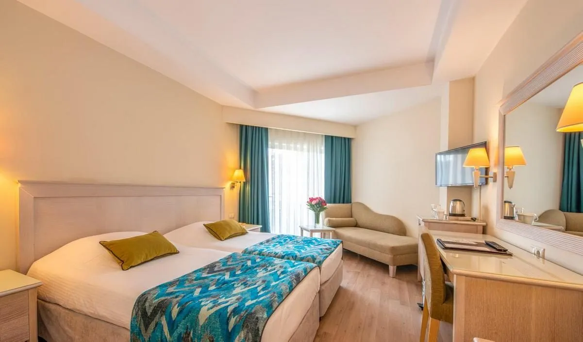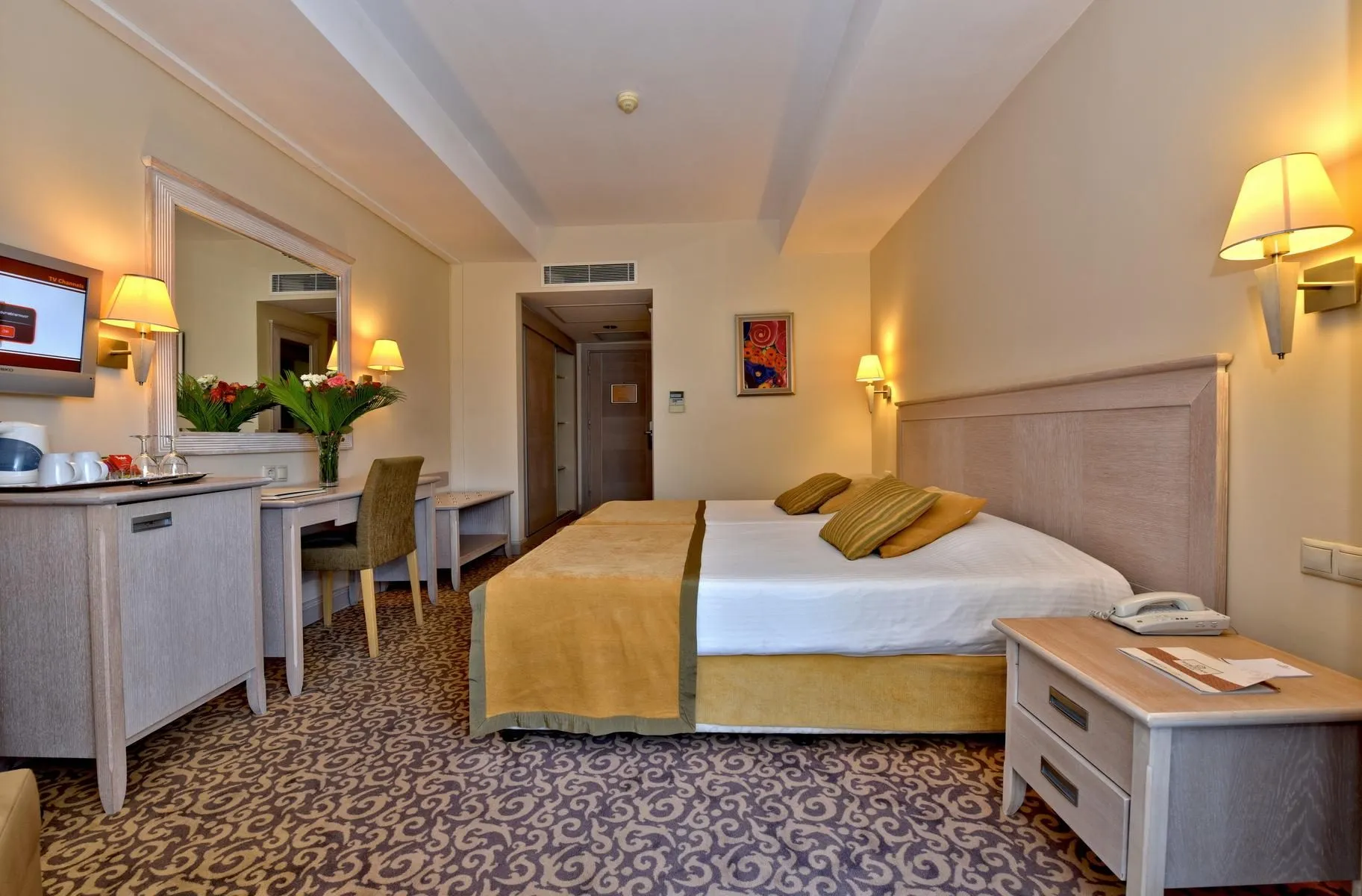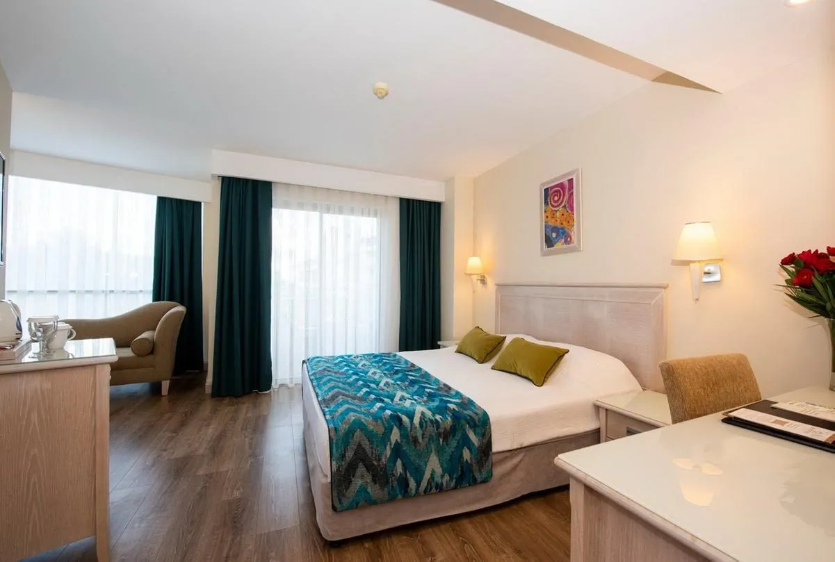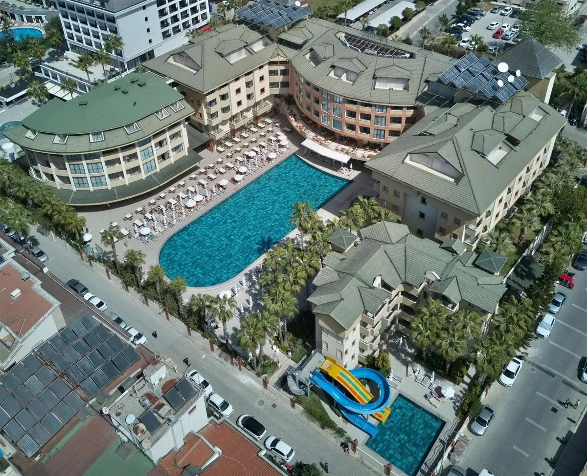 Descriere generală La cca. 150 m de o plajă privată cu nisip veți găsi hotelul Side Star Park. Pe plajă sunt disponibile gratuit șezlonguri și umbrele de soare. Orașul Antalya este la aprox. 70 km. Locul de cazare are la dispoziție mașini de închiriat. Aeroportul (AYT) se află la aprox. 64 km. Un alt aeroport (GZP) este la cca. 108 km. Facilități Încântătorul hotel dispune de 4 etaje și peste 228 camere repartizate între o clădire principală și o clădire secundară. Acesta oferă oaspeților săi recepție deschisă 24h (check-in de la 14:00, check out până la 12:00), lobby, 3 lifturi, aer condiționat, magazin, discotecă, parcare (gratuită) și birou de schimb valutar. Accesul la internet WiFi este disponibil gratuit pentru oaspeții hotelului. În plus, hotelul oferă o zonă de conferințe. Serviciul de menaj este gratuit. Room service, spălătorie, călcat și serviciul medical sunt disponibile la un cost suplimentar. Piscină Zona exterioară a hotelului include o piscină precum și o piscină pentru copii și un tobogan de apă. Acolo sunt disponibile gratuit șezlonguri și umbrele de soare. Un bar lângă piscină oferă oaspeților băuturi răcoritoare. Catering Mic dejun (între orele 07:00 - 10:00) bufet suedez. All Inclusive: micul dejun, prânzul și cina. Micul dejun, prânzul și cina pot fi servite numai în anumite restaurante. Apă. Mic dejun târziu (între orele 10:00 - 11:00), băuturi răcoritoare (10:00 - 00:00), cafea și ceai (10:00 - 00:00), prăjituri și produse de patiserie (15:30 - 17:00), aperitive (10:00 - 18:00), bere (10:00 - 00:00), vin (10:00 - 00:00), băuturi alcoolice naționale (10:00 - 00:00), gustări la miezul nopții (19:00 - 21:00), minibar gratuit în cameră (limitat) și utilizarea gratuită a seifului (în baza unei garanții). Sport/Leisure Oferte pentru sport și divertisment: Darts (gratuit), fitness, aerobic, biliard (contra cost) și tenis de masă (gratuit). Oferte de wellness: Zonă de spa și masaje contra cost. Saună și hamam posibil contra cost. Divertisment pentru adulți: spectacole de seară. Loc de joacă pentru copii. Îngrijirea copiilor: mini club pentru copii (de la 4 - 11 ani). Sală de jocuri. Informații suplimentare Pentru anumite facilități sau activități se pot aplica taxe suplimentare. Unele servicii depind de anotimp și de condițiile climatice locale. Limbi de serviciu: engleză, germană și turcă. Carduri de credit: Visa și Euro/MasterCard. Standard Familienzimmer: Cameră cu pat dublu sau pat twin, pat suplimentar, pat pentru bebeluși (gratuit), mochetă, ceainic (gratuit), minibar (posibil contra cost), balcon, seif (gratuit), TV prin satelit și canale locale precum și aer condiționat reglabil individual. Double Standard Zimmer: Dotate cu pat dublu sau pat twin, pat suplimentar, pat pentru bebeluși (gratuit), mochetă, ceainic (gratuit), minibar (posibil contra cost), balcon, seif (gratuit), TV prin satelit și canale locale precum și aer condiționat reglabil individual. Dimensiune: 19 m². Einzelbelegung Standard Zimmer: Cameră cu pat dublu sau pat twin, pat suplimentar, pat pentru bebeluși (gratuit), mochetă, ceainic (gratuit), minibar (posibil contra cost), balcon, seif (gratuit), TV prin satelit și canale locale precum și aer condiționat reglabil individual. Etagenbett Standard Zimmer: Dotate cu pat suplimentar, pat pentru bebeluși (gratuit), mochetă, ceainic (gratuit), minibar (posibil contra cost), seif (gratuit), TV prin satelit și canale locale precum și aer condiționat reglabil individual.