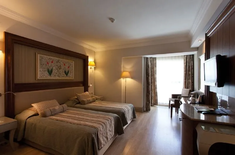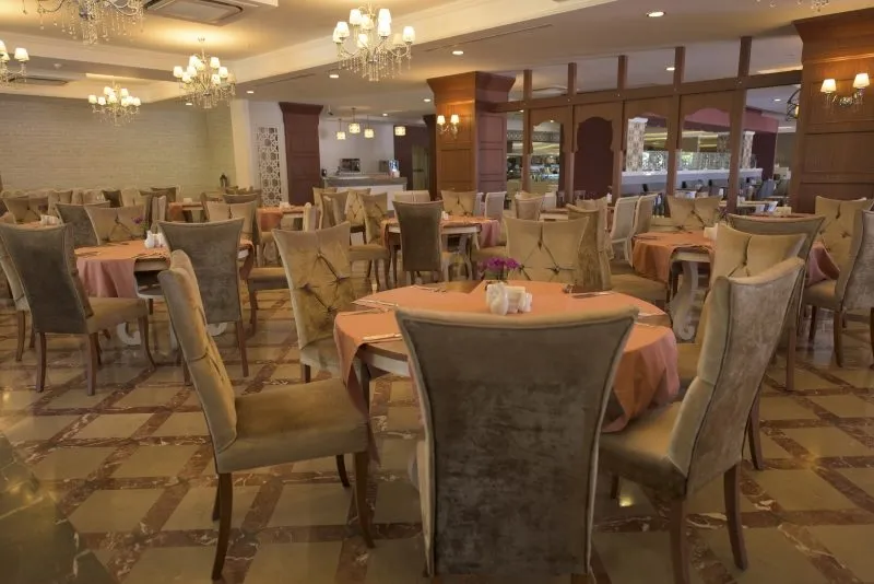About 500 m from the hotel`s own beach lies the hotel Hotel Side Star Resort. The old town is around 14 km away. A supermarket is around 3 km away. On the beach are cushions, sun umbrellas and beach towels available. Cold drinks are served at the bar on the beach. The hotel is equipped with a 24h reception (check-in is possible around the clock), Wi-Fi, a lift, a supermarket and other shops, a hairdresser, a first aid kit as well as parking spaces. In the outdoor area of the property you will find a seasonally open pool, where sun loungers and sun umbrellas are available for free. There is also a children's pool. Inside the hotel you can use an indoor pool. For very young guests, highchairs can be provided. You can store your luggage in the hotel's storage room. To clean your clothes there is a laundry service (extra fee). For your comfort the hotel page will ensure you are looked after. If necessary, you can contact the medical centre (for a fee). The energy supply is 220 Volts. If you want to explore the holiday region, you can use the car rental service close to the hotel (extra fee). Catering Breakfast is offered from the buffet. Lunch and dinner are also served from the buffet. When booking all-inclusive, - for an extra fee - one meal in the à la carte restaurant is included. Your physical well-being is catered for by the pool bar. For dinner, guests are asked to wear appropriate clothing in the restaurant. Distances