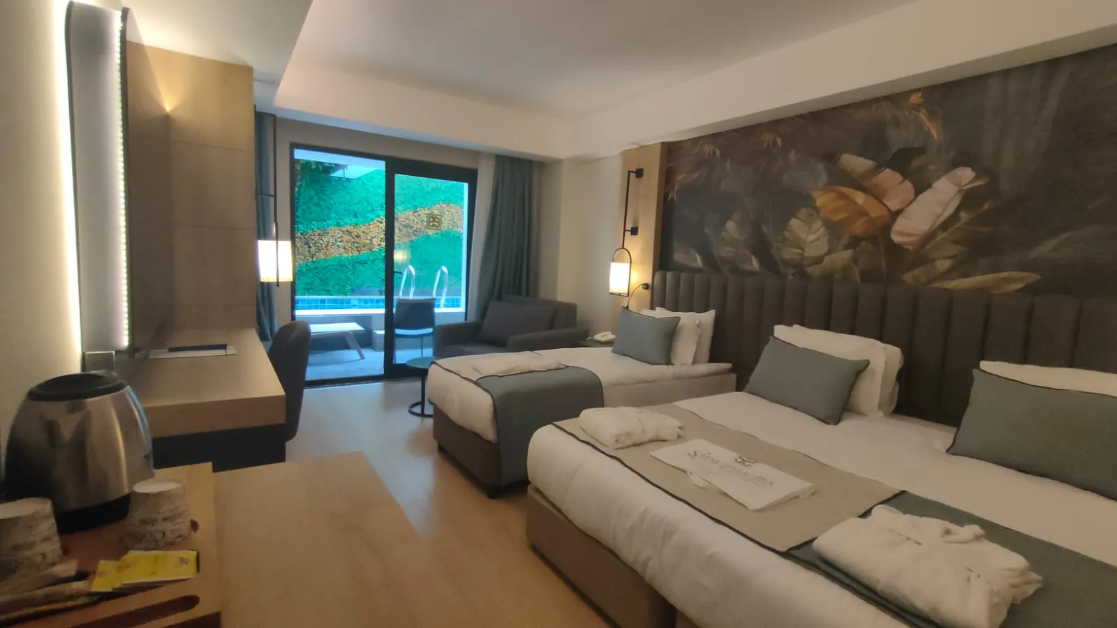 Side Zeugma Adult Only +16 Age features a total of 96 units. Side Zeugma Adult Only +16 Age offers Wi-Fi internet connection in communal areas. The reception is open 24/7. The premises offer accessible public areas. Travellers may take advantage of the car park. Clients may appreciate the airport transfer service. Those who wish to disconnect from daily routine may make use of the property's health and wellness facilities. A selection of flavourful delicacies is offered at this charming hotel. Side Zeugma Adult Only +16 Age may charge a fee for some services. Location:96 Total number of rooms; Connecting rooms Hotel type:hotel Facilities:Small pets allowed (under 5 kg); Large pets allowed (over 5 kg); Wheelchair-accessible; Car park; Electric vehicle charging station (Extra Fee); Garage; 24-hour reception; Check-in hour; Check-out hour; Late Check-out (Extra Fee); Wi-fi; Car hire (Extra Fee); Transfer service (Extra Fee); Room service (Extra Fee); Launderette (Extra Fee); Medical service (Extra Fee); Bicycle hire service (Extra Fee); Multilingual staff; 24-hour security; Hotel safe; Currency exchange facilities (Extra Fee); Lift access; Garden; Luggage room; Dining area; Towels and bed linen Catering:Café; Restaurant; Poolside snack bar; Show cooking; Swim-up bar Business:Printer (Extra Fee); Photocopier (Extra Fee) Health:Turkish bath (hamam) (Extra Fee); Massage (Extra Fee); Spa treatments (Extra Fee); Hairdressing salon (Extra Fee); Beauty salon (Extra Fee)