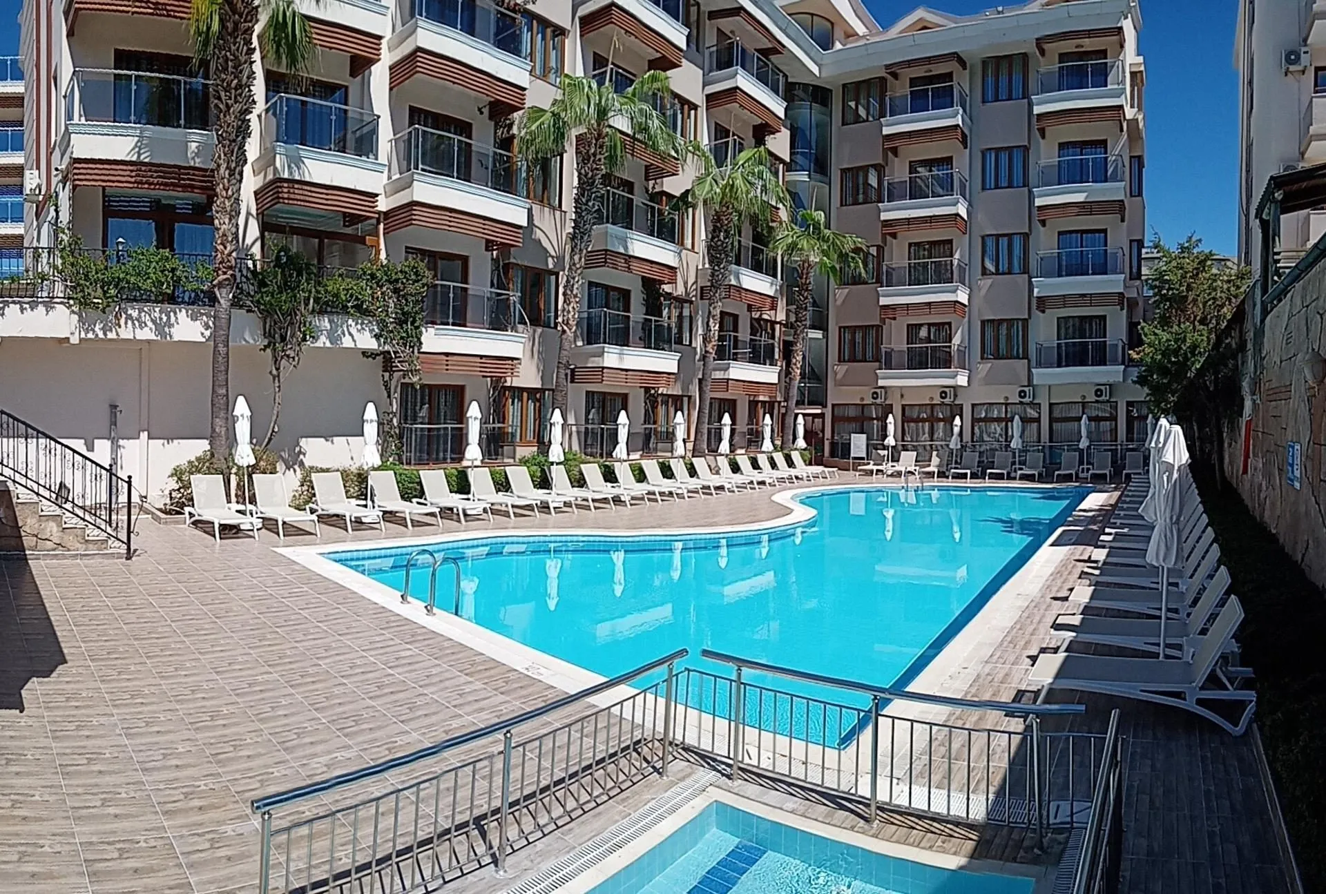 Descriere generala: Localizat aproape de zona antica a orasului SideRecomandat pentru un sejur activ Principalele puncte de atracție: Localizat aproape de zona antica a orasului SideRecomandat pentru un sejur activ Descriere hotel: Hotelul de 4* este situat in Side, la 1,5 km de centrul orasului, oferind oaspetilor sai posibilitatea descoperirii acestuia. Hotelul are 206 camere si un regim de masa All Inclusive. Facilități si dotari camere:  Hotelul detine urmatoarele tipuri de camere:- Standard Rooms- camere cu o suprafata de 25 mp si o capacitate de cazare de 2 adulti.- Economy Rooms- camere cu o suprafata de 20 mp, capacitatea de cazare este de 2 adulti, acestea sunt mai mici decat camerele standard si fara balcon.- Family Rooms- camere cu o suprafata de 45 mp, au un dormitor cu pat dublu si un living room cu o canapea extensibila. Capacitatea de cazare este de 3 adulti.Dotari camere: baie proprie cu dus, TV, telefon, minibar, conexiune internet, seif, aer conditionat, uscator de par, balcon. Sport și relaxare: piscine exterioare, piscina interioara, acces la plaja, baie turceasca, sauna, sala de fitness, tenis de masa, darts, camera de joaca pentru copii, coafor, sporturi nautice. Facilități pentru copii: - piscina pentru copii - camera de joaca Facilități gratuite: bauturi alcoolice si non-alcoolice locale incluse in intervalul 10:00-23:00, piscine exterioare, piscina interioara, acces la plaja, baie turceasca, sauna, sala de fitness, tenis de masa, darts, camera de joaca pentru copii. Facilități contra cost: bauturi de import si imbuteliate, sucuri naturale de fructe, cafea turceasca, serviciul de masaj la centrul spa, room service, coafor, sporturi nautice, prosoape de plaja. Regim de masă: All inclusive - mic dejun, pranz si cina tip bufet- bauturi alcoolice si non-alcoolice locale incluse in intervalul 10:00- 23:00- mici gustari dupa-amiaza Bine de stiut: Umbrelutele si sezlongurile sunt gratuite insa prosoapele de plaja sunt contra cost. Locatia: Hotelul este localizat la 1,5 km fata de centrul vechi al orasului Side, 6 km fata de orasul Manavgat si 65 km fata de aeroportul din Antalya. Soare si mare: Hotelul ofera acces la plaja cu nisip, plaja care apartine proprietatii surori, Sun Beach Hotel si  care se afla la 300 m distanta. Exista si doua piscine in aer liber pentru adulti, o piscina pentru copii si o piscina interioara. Umbrelutele si sezlongurile sunt gratuite atat la plaja cat si la piscina, insa prosoapele sunt contra cost. Restaurante si baruri: Restaurant principal, restaurant a la carte, 2 baruri (Terrace Bar, Pool Bar).