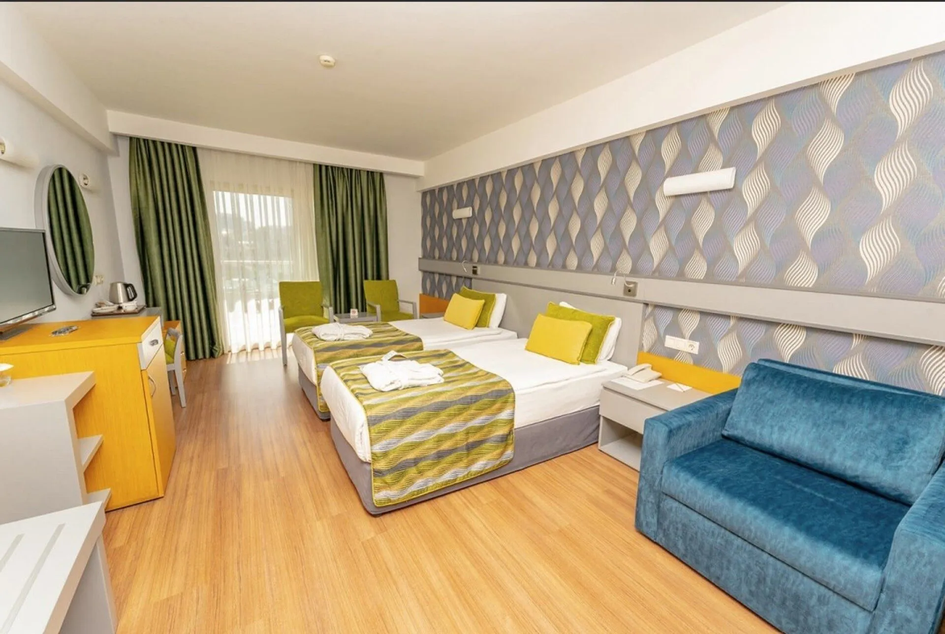 The hotel Sunis Kumkoy Beach is equipped with a 24h reception, a lobby, internet access as well as a lift. Furthermore, you can relax outdoors in the garden. For your comfort the hotel page will ensure you are looked after. In your hotel, a lot of focus is placed on sustainability. This includes among others the provision of soap and shampoo dispensers. Catering Dinner is served as a buffet. The drinks menu of the hotel includes water, soft drinks, coffee and tea and wine. Sports & Leisure To keep your fitness up on holiday, there is a gym for guests to use. A sauna awaits you for relaxation. Let yourself be pampered in the Hamam.