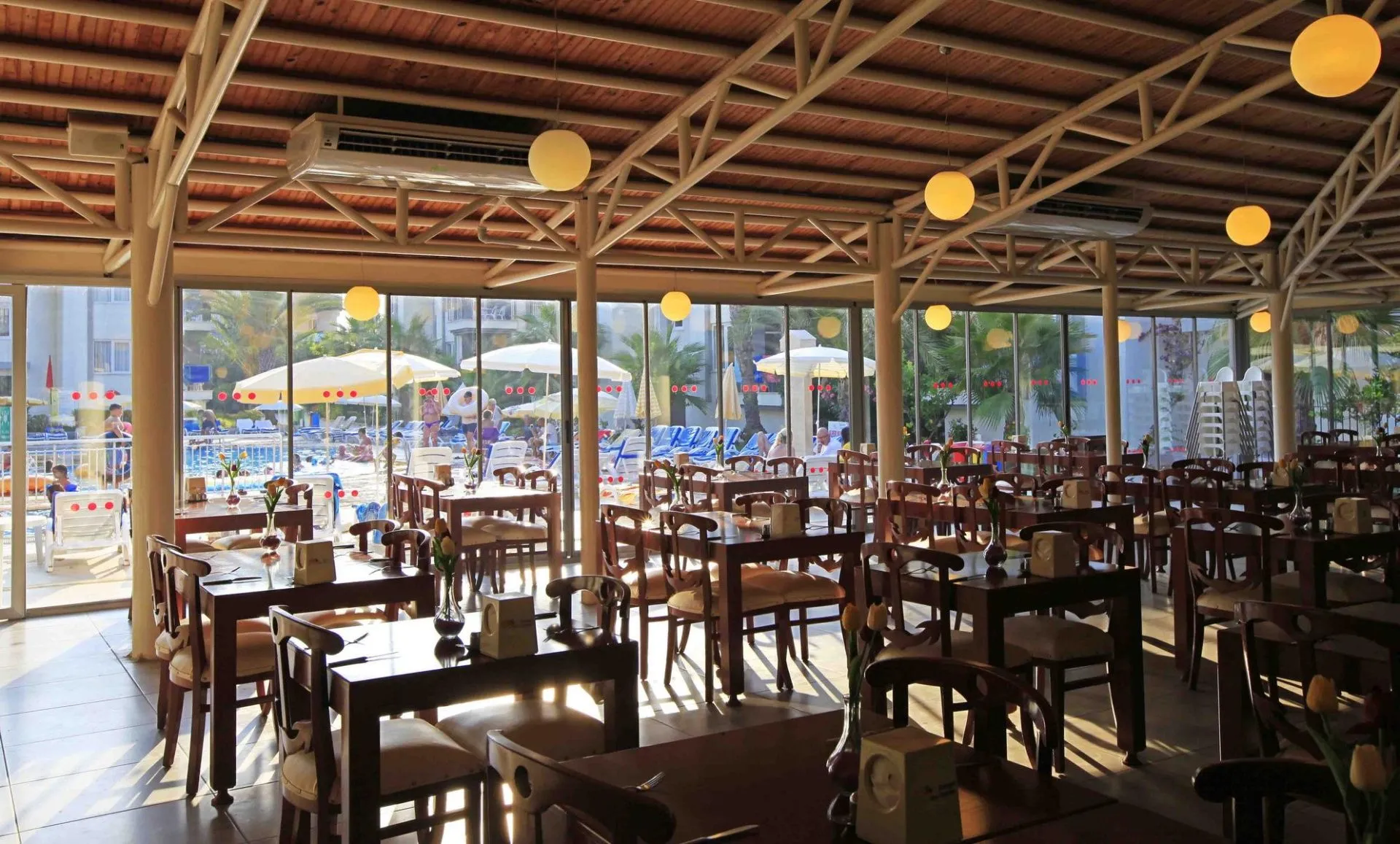Descriere generală Hotelul Sunlight Garden este situat in Side, la cca. 500 m de o plajă cu nisip. Pe plajă sunt disponibile șezlonguri și umbrele de soare la un cost suplimentar. Orașul Antalya este la aprox. 75 km. Aeroportul (AYT) se află la aprox. 64 km. Un alt aeroport (GZP) este la cca. 108 km. Până la cea mai apropiată plajă există un serviciu de transfer (graduit). Facilități Hotelul de oraș dispune de peste 125 camere. Acesta oferă oaspeților săi recepție deschisă 24h (check-in de la 14:00, check out până la 12:00), lobby, aer condiționat, minimarket și alte magazine. Accesul la internet WiFi este disponibil gratuit pentru oaspeții hotelului. Serviciul de menaj este gratuit. Spălătorie și călcat sunt disponibile la un cost suplimentar. Piscină În grădinile acestui hotelul există 2 piscine cu apă dulce precum și o piscină separată pentru copii. La piscine sunt disponibile gratuit șezlonguri și umbrele de soare. La barul piscinei va puteți bucura de o băutura răcoritoare. Catering Mic dejun (între orele 07:30 - 10:00) bufet suedez. All Inclusive: micul dejun, prânzul și cina. Micul dejun, prânzul și cina pot fi servite numai în anumite restaurante. Apă. Băuturi răcoritoare (10:00 - 23:00), cafea și ceai (10:00 - 23:00), prăjituri și produse de patiserie (16:00 - 17:00), aperitive (16:00 - 17:00), bere (10:00 - 23:00), vin (10:00 - 23:00) și băuturi alcoolice naționale (10:00 - 23:00). Sport/Leisure Este disponibil: Tenis de masă (gratuit) și biliard (contra cost). Oferte de wellness: Masaje contra cost. Hamam posibil contra cost. Copiii vor găsi un loc de joacă în exteriorul hotelului. Îngrijirea copiilor: mini club pentru copii (de la 4 - 12 ani). Informații suplimentare Pentru anumite facilități sau activități se pot aplica taxe suplimentare. Unele servicii depind de anotimp și de condițiile climatice locale. Limbi de serviciu: engleză, germană și turcă. Carduri de credit: Euro/MasterCard și Visa. Standard Apartment: Dotate cu pat pentru bebeluși (gratuit), ceainic (gratuit), minibar (posibil contra cost), seif (contra cost) și TV prin satelit precum și aer condiționat reglabil individual. Baie cu duș. Dimensiune: 35 m². 2 Schlafzimmer Standard Familienzimmer: Cameră cu pat pentru bebeluși (gratuit), ceainic (gratuit), minibar (posibil contra cost), seif (contra cost) și TV prin satelit precum și aer condiționat reglabil individual. Baie cu duș.