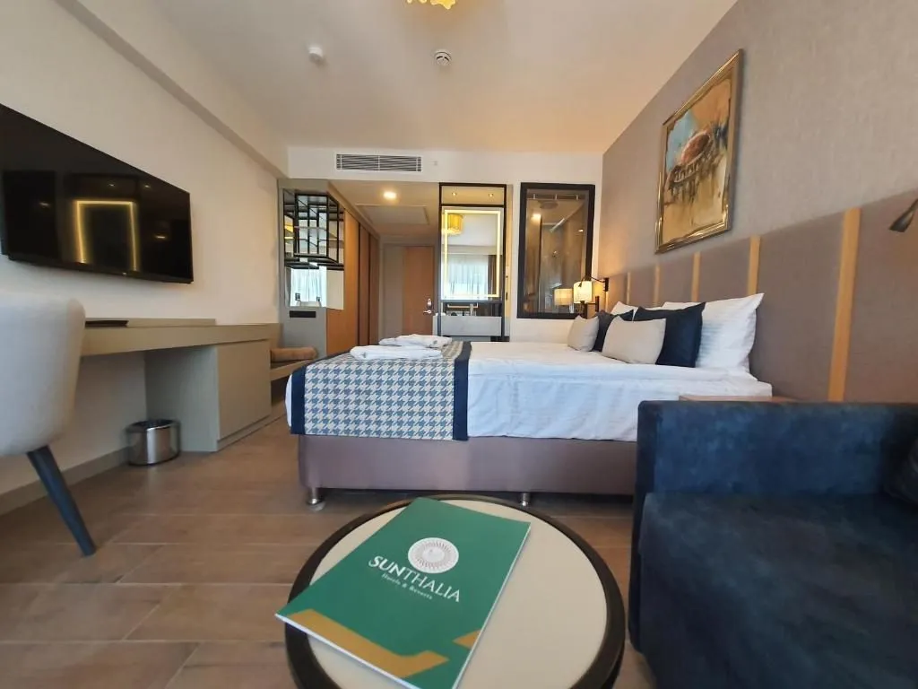 bauturi alcoolice si non-alcoolice locale si o selectie de import, minibar, seif in camera, conexiune internet, piscine exterioare, piscine interioare, tobogane, baie turceasca, sauna, baie cu aburi, sala de fitness, lectii de yoga, pilates, aerobic step, boccia, volei pe plaja, darts, tenis de masa, lectii de dans, gimnastica in apa, programe de animatie, mini club.