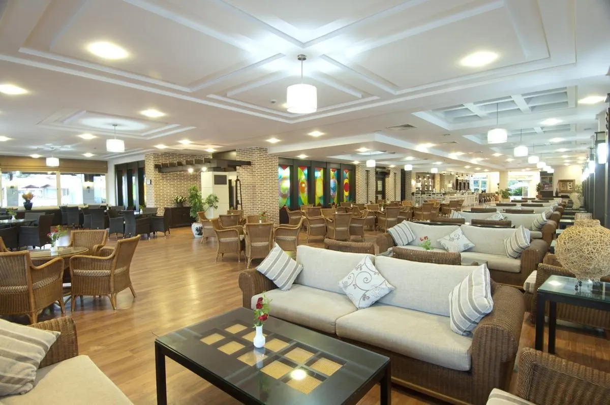 Descriere generală La doar câțiva pași de o plajă privată cu nisip se găsește hotelul Trendy Hotels Palm Beach. Pe plajă sunt disponibile gratuit șezlonguri și umbrele de soare. Orașul Antalya este la aprox. 80 km. Următoarele atracții pot fi accesate de la hotel: Museum (cca. 2 km). Locul de cazare are la dispoziție mașini de închiriat. De asemenea, aveți în apropiere o stație de autobuz (cca. 300 m) cea ce vă garantează mobilitatea în stațiune în vacanță. Aeroportul (AYT) se află la aprox. 61 km. Un alt aeroport (GZP) este la cca. 110 km. Facilități Hotelul familiar dispune de peste 320 camere. Acesta oferă oaspeților săi recepție deschisă 24h (check-in de la 14:00, check out până la 12:00), lobby cu bar, 3 lifturi și aer condiționat. Pentru a satisface apetitul vă stau la dispoziție un snackbar. Accesul la internet WiFi este disponibil gratuit pentru oaspeții hotelului. Serviciul de menaj este gratuit. Spălătorie, călcat și serviciul medical sunt disponibile la un cost suplimentar. Piscină În grădinile acestui hotelul există 2 piscine cu apă dulce precum și o piscină separată pentru copii și un tobogan de apă. Acolo sunt disponibile gratuit șezlonguri și umbrele de soare. Un bar lângă piscină oferă oaspeților băuturi răcoritoare. Catering Mic dejun (între orele 07:00 - 10:00) bufet suedez. All Inclusive: micul dejun, prânzul și cina. Micul dejun, prânzul și cina pot fi servite numai în anumite restaurante. Apă. Mic dejun târziu (între orele 10:00 - 10:30), băuturi răcoritoare (10:00 - 00:00), cafea și ceai (10:00 - 00:00), aperitive (12:30 - 15:00), bere (10:00 - 00:00), vin (10:00 - 00:00) și băuturi alcoolice naționale (10:00 - 00:00). Sport/Leisure Oferte pentru sport și divertisment: Fitness. Oferte de wellness: Zonă de spa și masaje contra cost. Saună și hamam posibil contra cost. Teren de joacă. Informații suplimentare Pentru anumite facilități sau activități se pot aplica taxe suplimentare. Unele servicii depind de anotimp și de condițiile climatice locale. Limbi de serviciu: engleză, germană și turcă. Carduri de credit: Visa și Euro/MasterCard. Unele servicii sau oferte pot fi utilizate doar într-o măsură limitată sau pot fi complet închise din cauza noilor protocoale de sănătate COVID19. Se pot aplica modificări fără informare prealabilă. Etagenbett Annex Familienzimmer (Seitlicher Meerblick): Cameră cu pat pentru bebeluși (gratuit), parchet laminat, ceainic (gratuit), minibar (contra cost), seif (contra cost) și TV cu ecran plat prin satelit precum și aer condiționat controlat central. 2 Schlafzimmer Annex Familienzimmer (Landschaftsblick): Cameră cu pat pentru bebeluși (gratuit), parchet laminat, ceainic (gratuit), minibar (contra cost), seif (contra cost) și TV cu ecran plat prin satelit precum și aer condiționat controlat central. 2 Zimmer mit Verbindungstür Hauptgebäude Familienzimmer: Dotate cu pat pentru bebeluși (gratuit), parchet laminat, ceainic (gratuit), minibar (contra cost), seif (contra cost) și TV cu ecran plat prin satelit precum și aer condiționat controlat central. Annex Zimmer (Landschaftsblick): Dotate cu pat pentru bebeluși (gratuit), parchet laminat, ceainic (gratuit), minibar (contra cost), seif (contra cost) și TV cu ecran plat prin satelit precum și aer condiționat controlat central. Double Annex Zimmer (Seitlicher Meerblick): Dotate cu pat pentru bebeluși (gratuit), parchet laminat, ceainic (gratuit), minibar (contra cost), seif (contra cost) și TV cu ecran plat prin satelit precum și aer condiționat controlat central. Einzelbelegung Annex Zimmer (Landschaftsblick): Cameră cu pat pentru bebeluși (gratuit), parchet laminat, ceainic (gratuit), minibar (contra cost), seif (contra cost) și TV cu ecran plat prin satelit precum și aer condiționat controlat central. Einzelbelegung Annex Zimmer (Seitlicher Meerblick): Cameră cu pat pentru bebeluși (gratuit), parchet laminat, ceainic (gratuit), minibar (contra cost), seif (contra cost) și TV cu ecran plat prin satelit precum și aer condiționat controlat central. Double Standard Zimmer (Seitlicher Meerblick): Dotate cu pat pentru bebeluși (gratuit), parchet laminat, ceainic (gratuit), minibar (contra cost), seif (contra cost) și TV cu ecran plat prin satelit precum și aer condiționat controlat central. Double Standard Zimmer (Meerblick): Dotate cu pat pentru bebeluși (gratuit), parchet laminat, ceainic (gratuit), minibar (contra cost), seif (contra cost) și TV cu ecran plat prin satelit precum și aer condiționat controlat central. Einzelbelegung Standard Zimmer (Seitlicher Meerblick): Dotate cu pat pentru bebeluși (gratuit), parchet laminat, ceainic (gratuit), minibar (contra cost), seif (contra cost) și TV cu ecran plat prin satelit precum și aer condiționat controlat central. Einzelbelegung Standard Zimmer (Meerblick): Dotate cu pat pentru bebeluși (gratuit), parchet laminat, ceainic (gratuit), minibar (contra cost), seif (contra cost) și TV cu ecran plat prin satelit precum și aer condiționat controlat central.