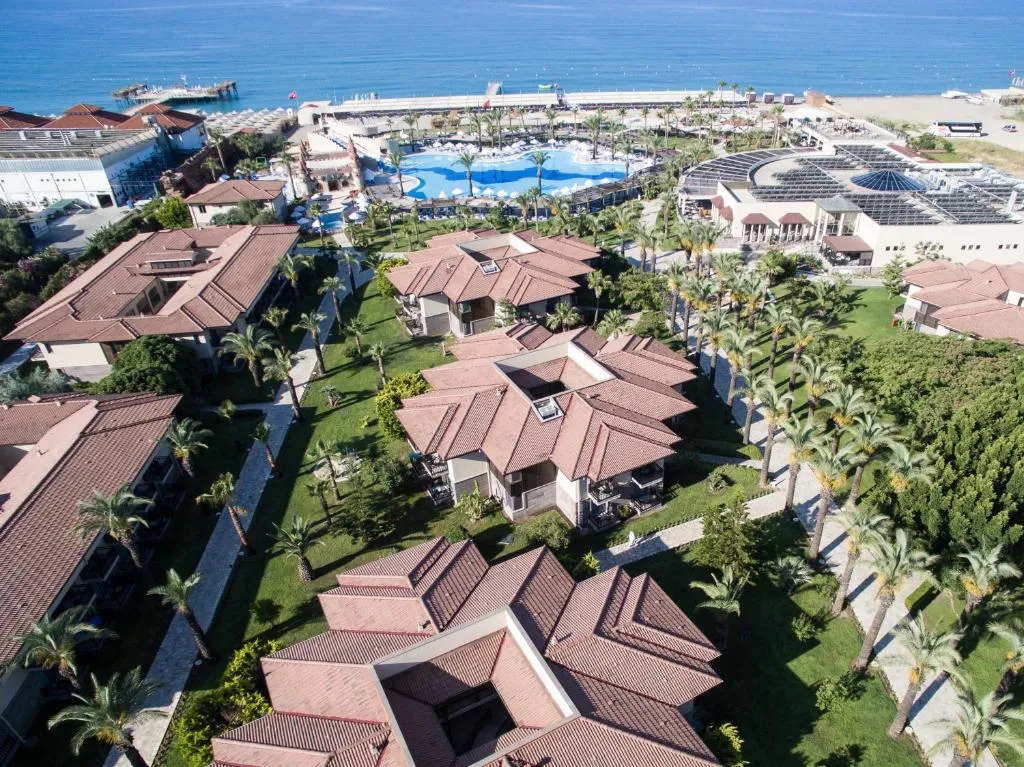 Descriere generala: Situat pe plajaAquaparkFacilitati pentru copiiRecomandat familiilor cu copii Principalele puncte de atracție: Situat pe plajaAquaparkFacilitati pentru copiiRecomandat familiilor cu copii Descriere hotel: Hotelul a fost construit in anul 2005, renovat in 2016 si se intinde pe o suprafata de 83.700 mp. Acesta este localizat in Kizilagac/Side, direct pe plaja si ofera un regim de masa All Inclusive. Hotelul este o excelenta alegere pentru familiile cu copii. Facilități si dotari camere:  Hotelul detine 15 vile si 363 camere astfel:-Standard Double Rooms- au o suprafata de 21 mp si o capacitate de cazare de cel mult 2 persoane. Acest tip de camera este mobilata cu un pat dublu sau doua paturi single.-Superior Double Rooms- au o suprafata de 24 mp si o capacitate de cazare de cel mult 3 persoane. Acest tip de camera este mobilata cu un pat dublu sau doua paturi single si o canapea extensibila.-Family Rooms– au o suprafata de 38 mp si o capacitate de cazare de cel mult 4 persoane. Acest tip de camera este formata din doua dormitoare, mobilate cu un pat dublu si doua canapele extensibile.Dotari camere: baie proprie, TV, telefon, minibar (alimentat cu apa la sosire), conexiune internet (gratuita), seif (gratuit), aer conditionat, uscator de par, papuci de baie, balcon. Sport și relaxare: piscine in aer liber, Aquapark, sala de fitness, baie turceasca, sauna, baie cu aburi, tenis de masa, teren de tenis, volei, volei pe plaja, minigolf, tirul cu arcul, lectii de turca, muzica live, spectacole, Kids Club, lectii de gatit, coafor, sporturi nautice. Facilități pentru copii: -Kids Bar- selectie de bauturi non-alcoolice, cocktailuri si iaurturi pentru copii-Loc de joaca in aer liber-Piscina pentru copii si bebelusi, miniaquapark-Kids Club pentru copiii cu varsta intre 3-6 ani, 7-12 ani si activitati pentru adolescenti cu varsta intre 13-17 ani Facilități gratuite: bauturi alcoolice si non-alcoolice locale, o cina la restaurantul a la carte, conexiune internet, piscine in aer liber, Aquapark, sala de fitness, baie turceasca, sauna, baie cu aburi, tenis de masa, teren de tenis, volei, volei pe plaja, minigolf, tirul cu arcul, lectii de turca, muzica live, spectacole, Kids Club. Facilități contra cost: masaje si tratamente la centrul spa, servicii medicale, spalatorie, telefon, fax, room service, lectii de gatit, coafor, sporturi nautice, babysitting. Regim de masă: All inclusive -Mic dejun, pranz si cina tip bufet-Bauturi alcoolice si non-alcoolice locale incluse -Gustari diverse pe toata durata zilei-O cina gratuita la restaurantul a la carte pe baza de rezervare Bine de stiut: Hotelul are camere si facilitati dezvoltate pentru persoanele cu dizabilitati. Locatia: Hotelul este localizat la 20 km de statiunea Side, 15 fata de orasul Manavgat, 80 fata de aeroportul din Antalya si 91 fata de cel din Gazipasa. Soare si mare: Hotelul este situat pe plaja (cu nisip si pietricele) si detine 3 piscine: Activity pool cu Aquapark, care are o adancime de 140 cm; o piscina pentru bebelusi (incalzita in luna aprilie) si o piscina pentru copii cu un miniaquapark. Umbrelutele si sezlongurile sunt gratuite atat la piscina cat si la plaja. Restaurante si baruri: Restaurant principal, un restaurant a la carte cu specific mediteranean (o cina gratuita pe baza de rezervare), restaurant snack cu specialitati BBQ (Purple Turtle Restaurant), Welcome Bar (24 ore), Beach Bar, The Bar, Kids Bar, Bakery.