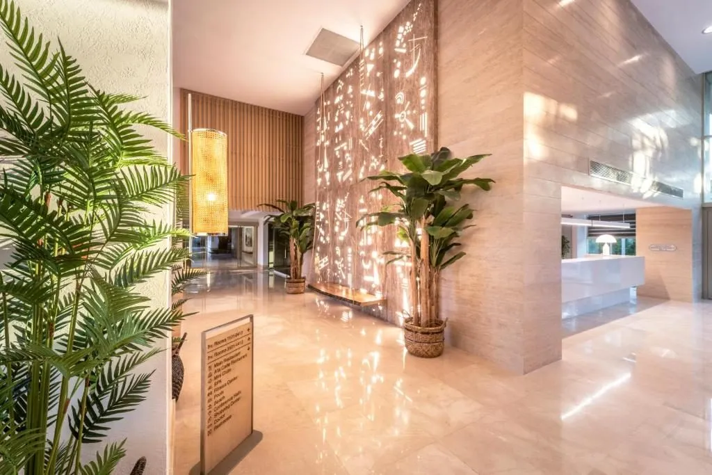 Hotelul detine o plaja privata si 8 piscine astfel: o piscina principala in aer liber cu o suprafata de 1200 mp, o piscina 16+ cu o suprafata de 368 mp, 2 piscine pentru copii, o piscina olimpica, o piscina cu 4 tobogane si 2 piscine indoor pentru adulti si copii. Umbrelutele si sezlongurile sunt gratuite atat la piscina cat si la plaja.