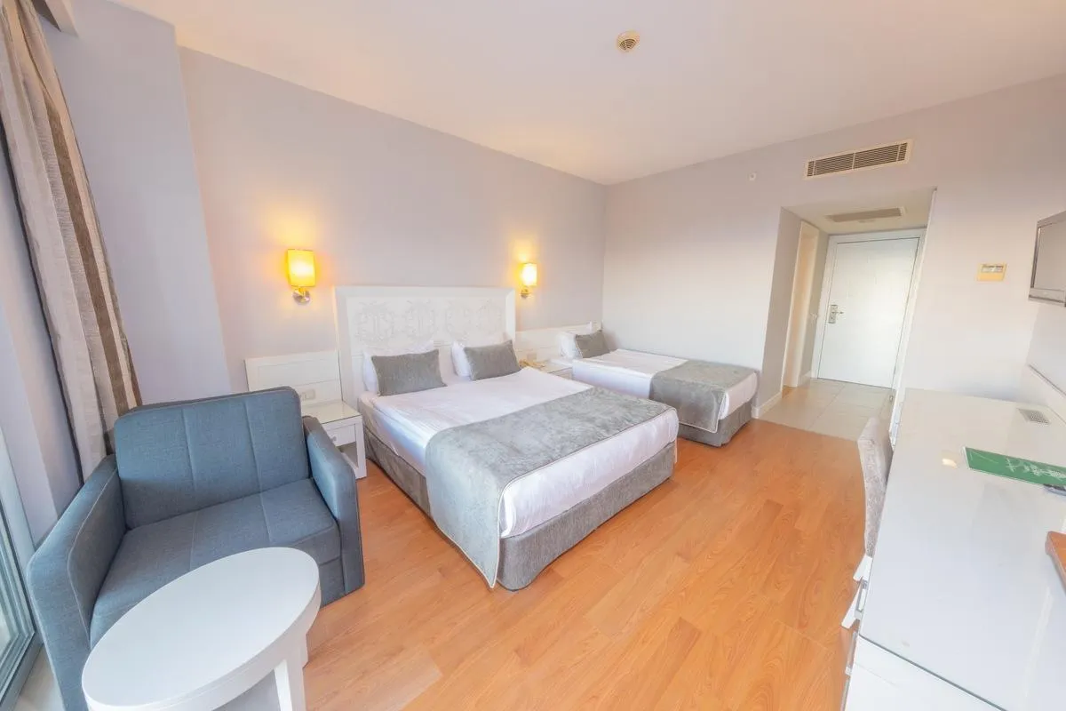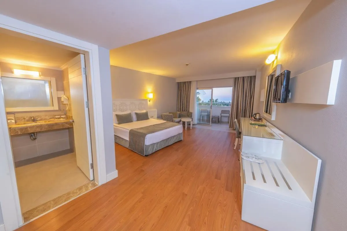 Descriere generală La cca. 100 m de o plajă privată cu nisip/pietriș veți găsi hotelul Amelia Beach Hotel. Pe plajă sunt disponibile gratuit șezlonguri și umbrele de soare. Centrul turistic al stațiunii se află la aprox. 10 km. Orașul Antalya este la aprox. 90 km (Manavgat cca. 20 km). Puteți face cumpărături în diverse magazine și într-un supermarket aflat la cca. 10 km distanță. Cele mai apropiate baruri și restaurante sunt la cca. 30 km distanță. O discotecă aflată la aprox. 30 km vă invită la dans. De asemenea, la cca. 30 km de hotel este un cinematograf. Locul de cazare are la dispoziție mașini de închiriat. De asemenea, aveți în apropiere o stație de autobuz și o stație de taxi (cca. 150 m) cea ce vă oferă mobilitate în timpul vacanței. Pentru îngrijiri medicale în caz de urgență, există un spital la cca. 30 km distanță. Aeroportul (AYT) se află la aprox. 80 km. Un alt aeroport (GZP) este la cca. 87 km. Facilități Resortul dispune de peste 480 camere. Acesta oferă oaspeților săi recepție deschisă 24h (check-in de la 14:00, check out până la 12:00), lobby cu bar, un total de 4 lifturi, aer condiționat, minimarket, alte magazine, discotecă și parcare (gratuită). Camerele au fost renovate în detaliu ultima dată în 2020. Pentru a servi masa aveți la dispoziție un snackbar. Accesul la internet WiFi poate fi utilizat de oaspeții hotelului contra cost. În plus, hotelul oferă o zonă de conferințe cu acces la internet. Pentru oaspeții care depind de un scaun cu rotile, hotelul oferă un lift accesibil pentru scaune cu rotile și băi parțial accesibile pentru scaune cu rotile. Serviciul de menaj este gratuit. Room service, spălătorie, călcat și serviciul medical sunt disponibile la un cost suplimentar. Piscină În grădinile acestui hotelul există 3 piscine cu apă dulce precum și o piscină separată pentru copii și un tobogan de apă. La piscine sunt disponibile gratuit șezlonguri și umbrele de soare. La barul de la piscină sunt disponibile băuturi răcoritoare. Catering Mic dejun (între orele 07:00 - 10:00) bufet suedez. All Inclusive: micul dejun, prânzul și cina. Micul dejun, prânzul și cina pot fi servite numai în anumite restaurante. Sunt disponibile și meniuri pentru copii. Apă. Mic dejun târziu (între orele 10:00 - 11:00), băuturi răcoritoare (10:00 - 00:00), cafea și ceai (10:00 - 00:00), prăjituri și produse de patiserie (16:00 - 17:00), aperitive (12:00 - 16:00), bere (10:00 - 00:00), vin (10:00 - 00:00), băuturi alcoolice naționale (10:00 - 00:00), gustări la miezul nopții (23:00 - 00:00) și minibar gratuit în cameră (limitat). Sport/Leisure Este disponibil: Tenis de masă (gratuit), volei pe plajă, aerobic, fitness, tenis (gratuit, la cca. 25 m distanță), biliard (contra cost), baschet și darts (gratuit). La cca. 100 m de hotel, sunt oferite sporturi nautice (unele de către furnizori locali). Oferte de wellness: Saună, baie turcească și hamam gratuite. Zonă de spa și masaje contra cost. Divertisment pentru adulți: spectacole de seară. Pentru distracția celor mici există un loc de joacă. Îngrijirea copiilor: mini club pentru copii (de la 4 - 12 ani) și babysitting (contra cost). Sală de jocuri. Informații suplimentare Pentru anumite facilități sau activități se pot aplica taxe suplimentare. Unele servicii depind de anotimp și de condițiile climatice locale. Limbi de serviciu: engleză, germană, rusă și turcă. Carduri de credit: Visa, Euro/MasterCard și card EC. 2 Schlafzimmer Standard Familienzimmer (Meerblick): Cameră cu pat dublu sau pat single, pat suplimentar, pat pentru bebeluși (gratuit), parchet laminat, încălzire controlată centralizat, ceainic (contra depozit), minibar (gratuit), balcon sau terasă, acces la internet (contra cost), seif (contra cost) și TV prin satelit precum și aer condiționat controlat central. Baie cu duș. Prosoapele se schimbă de 3 ori pe săptămână. 2 Schlafzimmer Standard Familienzimmer (Meerblick, 2 Badezimmer): Dotate cu pat dublu sau pat single, pat suplimentar, pat pentru bebeluși (gratuit), parchet laminat, încălzire controlată centralizat, ceainic (contra depozit), minibar (gratuit), balcon sau terasă, acces la internet (contra cost), seif (contra cost) și TV prin satelit precum și aer condiționat controlat central. Baie cu duș. Prosoapele se schimbă de 3 ori pe săptămână. Doppel Standard Zimmer: Cameră cu pat suplimentar, parchet laminat, încălzire controlată centralizat, ceainic (contra depozit), minibar (gratuit), balcon sau terasă, acces la internet (contra cost), seif (contra cost) și TV prin satelit precum și aer condiționat controlat central. Prosoapele se schimbă de 3 ori pe săptămână. Doppel Standard Zimmer (Economy): Cameră cu pat dublu sau pat single, pat suplimentar, pat pentru bebeluși (gratuit), parchet laminat, încălzire controlată centralizat, ceainic (contra depozit), minibar (gratuit), balcon sau terasă, acces la internet (contra cost), seif (contra cost) și TV prin satelit precum și aer condiționat controlat central. Baie cu duș. Prosoapele se schimbă de 3 ori pe săptămână. Dimensiune: 36 m². Doppel Standard Zimmer (Seitlicher Meerblick): Dotate cu pat dublu sau pat single, pat suplimentar, pat pentru bebeluși (gratuit), parchet laminat, încălzire controlată centralizat, ceainic (contra depozit), minibar (gratuit), balcon sau terasă, acces la internet (contra cost), seif (contra cost) și TV prin satelit precum și aer condiționat controlat central. Baie cu duș. Prosoapele se schimbă de 3 ori pe săptămână. Doppel Standard Zimmer (Meerblick): Dotate cu pat dublu sau pat single, pat suplimentar, pat pentru bebeluși (gratuit), parchet laminat, încălzire controlată centralizat, ceainic (contra depozit), minibar (gratuit), balcon sau terasă, acces la internet (contra cost), seif (contra cost) și TV prin satelit precum ș