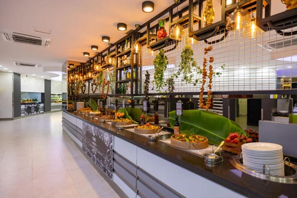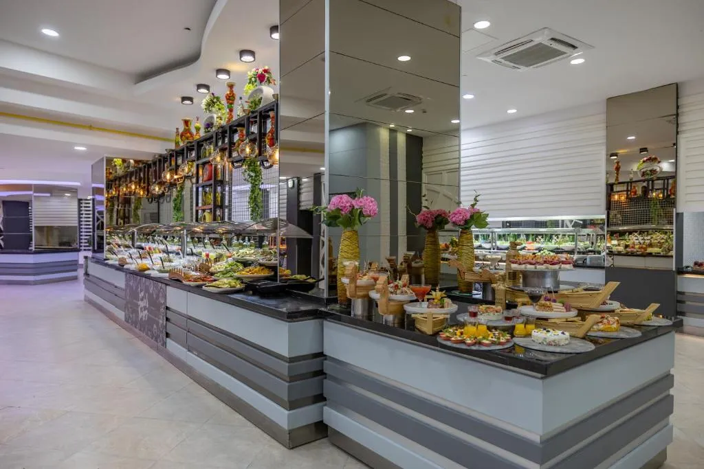 Restaurant principal - tip bufet; 6 restaurante a la carte cu specific: italian – ”Vogatore”, 2 turcești – ”Kekik” și ”Kaftan”, mediteranean – ”Radika”, steak – ”Longhorn Steak House” și asiatic – ”Kaiseki Far East”, Bistro, Taurids Lobby Bar, Fragaria Patisserie, Jasper Disco, Aquarids Pool Bar, Tamarix Beach Bar, Aquapark Bar, Aquapark Snack, Irish Pub.